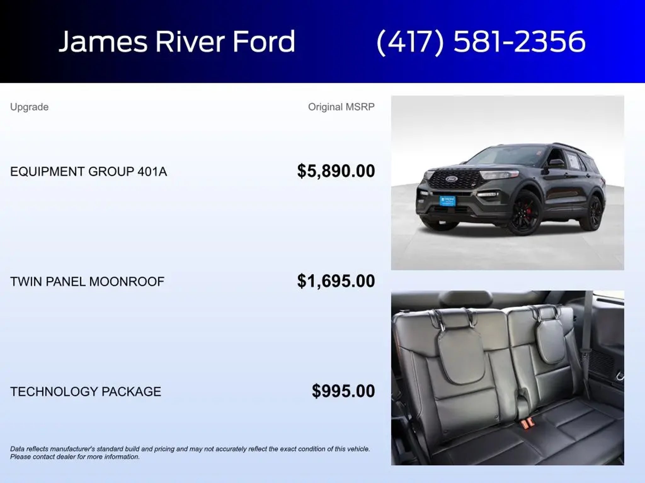 @JamesRiverFORD our local, family-owned dealership is focused on making your online experience the best yet! Located in Majestic Ozark Missouri just off HWY 65 and HWY 14, this 2024 Ford Explorer ST is a CARFAX One-Owner, painted in Forged Green Metallic and is powered by a 4WD 10-Speed Automatic 3.0L EcoBoost V6! This Explorer is built with the following packages: Equipment Group 401A Ford Co-Pilot360 Assist ST High Package ST Street Pack Technology Package In addition, below are upgrades and added options: Twin Panel Moonroof Split folding rear seat Third Row PowerFold (Folds Flat) Ventilated front seats SYNC 3/Apple CarPlay/Android Auto Heated steering wheel Other premium features include 4WD, 10.1 LCD Capacitive Portrait Touchscreen, 110V/150W AC Power Outlet, 2 Additional Speakers, 20 Machined Aluminum w/Painted Pockets Wheels, 360-Degree Camera w/Split View, ABS brakes, Alloy wheels, Auto-Dimming Rearview Mirror (Interior), Compass, Electronic Stability Control, Equipment Group 401A, Evasive Steering Assist, Ford Co-Pilot360 Assist, Front dual zone A/C, Front Parking Sensors, Front Rain-Sensing Wipers, Heated door mirrors, Heated front seats, Illuminated entry, Intelligent Adaptive Cruise Control, Low tire pressure warning, Memory Driver's Seat, Performance Front & Rear Brakes, Power Liftgate, Power Tilt/Telescoping Steering Column, Radio: B&O Sound System by Bang & Olufsen, Remote keyless entry, Reverse Brake Assist, Second Row Heated Seats, Sideview Mirrors w/Gloss Black Caps, Speed Sign Recognition, ST High Package, ST Street Pack, Technology Package, Third Row PowerFold (Folds Flat), Traction control, Universal Garage Door Opener (UGDO), Voice-Activated Touchscreen Navigation System, Wheels: 21 Aluminum, Wireless Charging Pad. At James River Ford, we believe buying a car should be as fun and exciting as driving one! No stress, no boring sales talk"”just great vehicles, great deals, and a team that actually cares. Whether you're looking for a rugged F-150, a head-turning Mustang, or an SUV with room for the whole crew, we've got a huge selection of quality new and pre-owned vehicles"”all priced to move faster than a Mustang on the open road. We proudly serve Ozark, Springfield, Nixa, Branson, Republic, Rogersville, Battlefield, Marshfield, Willard, Strafford, Bolivar, Aurora, Hollister, Clever, Highlandville, Forsyth, and beyond"”bringing big-city deals with small-town service to Southwest Missouri. Why Shop with Us? Huge Inventory "“ From F-150s to Mustangs to the adventure-ready Bronco, we have the Ford you want"”or we'll track it down like a hound on a scent! ðŸ�¶ðŸš— Competitive Pricing "“ No gimmicks, no games"”just real deals on real cars. 💰💨 Top Trade-In Values "“ We'll give you top dollar for your trade"”because your ride deserves some respect! 🚗💵 Flexible Financing "“ Good credit, bad credit, no credit? No problem. Our finance team can work some serious magic. 🎩 Customer-First Service "“ We treat you like family"”the kind you actually like spending time with. ðŸ�¡ðŸš˜ Videos Available on Request! "“ Want a closer look? We'll send a personalized video of any vehicle right to your phone"”like a car commercial made just for you! 🎥📱 No pressure, no hassle"”just great cars, great deals, and a team that's here to make your car-buying experience actually enjoyable. Check out our inventory today and see why people from all over Southwest Missouri trust James River Ford! 🚗💨.