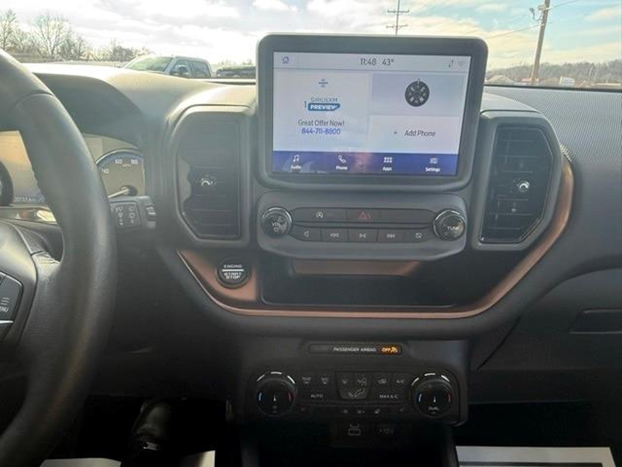 Recent Arrival! 2023 Ford Bronco Sport Outer Banks 1.5L EcoBoost 4WD 25/28 City/Highway MPG Equipment Group 300A, Tech Package (HD Radio, Universal Garage Door Opener (UGDO), and Wireless Charging Pad), 3.80 Axle Ratio, 4-Wheel Disc Brakes, 4G LTE Wi-Fi Hotspot Credit, 6 Speakers, ABS brakes, Air Conditioning, Alloy wheels, AM/FM radio: SiriusXM, AM/FM Stereo, Auto High-beam Headlights, Auto-dimming Rear-View mirror, Automatic temperature control, Brake assist, Compass, Delay-off headlights, Driver door bin, Driver vanity mirror, Dual front impact airbags, Dual front side impact airbags, Electronic Stability Control, Emergency communication system: SYNC 3 911 Assist, Engine Block Heater, Four wheel independent suspension, Front anti-roll bar, Front Bucket Seats, Front Center Armrest, Front dual zone A/C, Front fog lights, Front License Plate Bracket, Front reading lights, Fully automatic headlights, Heated door mirrors, Heated front seats, Heated steering wheel, Illuminated entry, Knee airbag, Leather Trimmed Heated Sport Contour Bucket Seats, Low tire pressure warning, Memory seat, Occupant sensing airbag, Outside temperature display, Overhead airbag, Overhead console, Panic alarm, Passenger door bin, Passenger vanity mirror, Power door mirrors, Power driver seat, Power Moonroof, Power passenger seat, Power steering, Power windows, Radio data system, Rain sensing wipers, Rear anti-roll bar, Rear Parking Sensors, Rear reading lights, Rear seat center armrest, Rear window defroster, Rear window wiper, Remote keyless entry, Security system, SiriusXM, Speed control, Speed-sensing steering, Speed-Sensitive Wipers, Split folding rear seat, Steering wheel mounted audio controls, SYNC 3 Communications & Entertainment System, SYNC 3/Apple CarPlay/Android Auto, Tachometer, Telescoping steering wheel, Tilt steering wheel, Traction control, Trip computer, Variably intermittent wipers, and Wheels: 18 Ebony Black-Painted Aluminum. IF WE DON'T SERVE YOU, WE DON'T DESERVE YOU! Seminole Ford proudly serving the following communities Seminole, Shawnee, Prague, Tecumseh, Wewoka, Holdenville, Wetumka, Ada, Norman, Stroud, Okemah & Meeker.