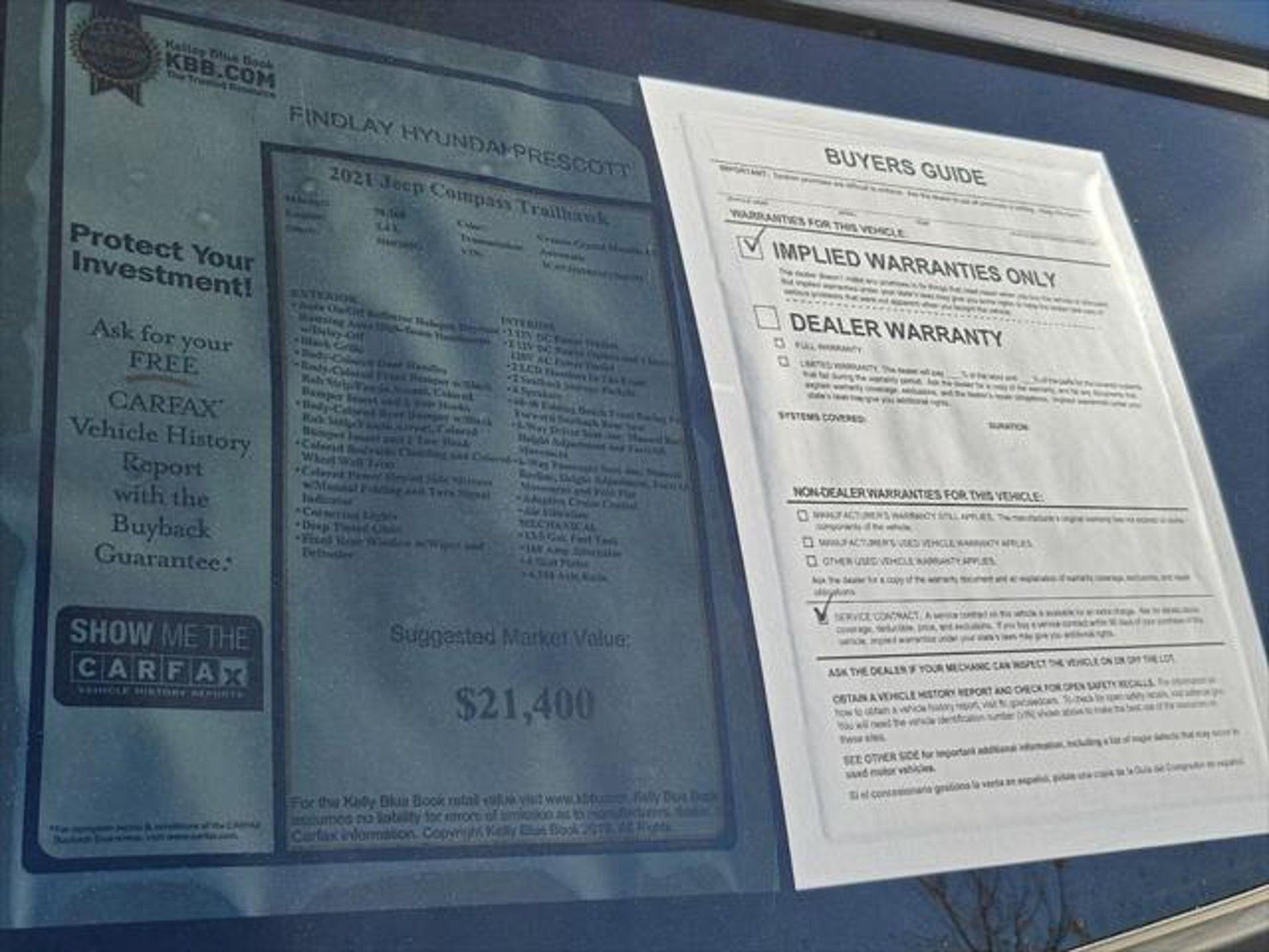 Take on any adventure with confidence in this 2021 Jeep Compass Trailhawk 4WD. Built for those who crave off-road excitement without sacrificing everyday practicality, the Trailhawk delivers legendary Jeep capability and premium features. Key Features: Engine: 2.4L Tigershark MultiAir 4-cylinder for reliable performance Transmission: 9-speed automatic for smooth shifting Drive: Advanced 4WD system with Jeep Active Drive Low for superior traction Trail Rated: Designed for off-road durability with skid plates, tow hooks, and raised suspension Interior: Leather-trimmed seats, heated front seats, and dual-zone climate control Technology: Uconnect touchscreen, Apple CarPlay & Android Auto, Bluetooth, and navigation Safety: Blind-Spot Monitoring, Rear Cross-Path Detection, Adaptive Cruise Control Mileage: 70,268 Exterior: Aggressive Trailhawk styling with red tow hooks, black roof, and rugged alloy wheels Whether youre tackling trails or cruising city streets, this Compass Trailhawk offers versatility, comfort, and capability in one stylish package.