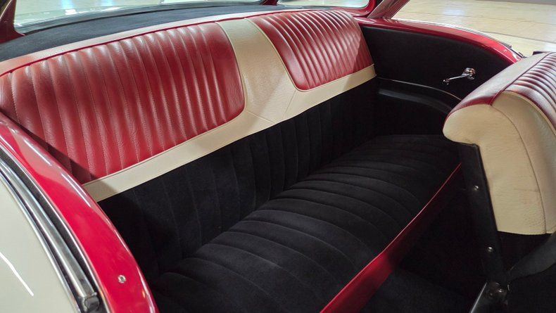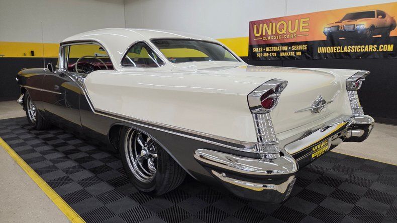 1957 Oldsmobile Super 88 Holiday Coupe. Powered by a 371 cubic inch V8 boasting 400 lb-ft of torque. Restored roughly 20 years ago. Equipped with power steering, power brakes with a front disc brake conversion, and an added vintage-style air conditioning system. The iconic chrome grille and brightwork look great, complemented by American Racing five-spoke wheels and radial tires. The interior combines vinyl and cloth upholstery in a tasteful tri-color scheme (brick, white, and black), featuring custom elements like a center console with cup holders, and an aftermarket stereo. The dash includes aftermarket gauges below for voltmeter, temperature, and oil pressure, integrated seamlessly. The car runs smoothly, sounds great with dual exhaust and a smooth automatic transmission shifted on the column, making it easy to drive. On the road the car's handling, braking performance, and feel are great.
