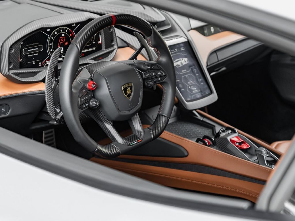 Options: - Classica Trim Ad - Lamborghini Rear Logo - Wheel Cap in Matt Carbon - Aerodynamic Door Fin In - Smartphone Interface - Bocca Nera Body Color - Nero Lucido CCB Brake - Passenger Display - Rim Bolts in Titanium - Rims Altanero Shiny - Door panel inserts - Rear View Mirrors in Matt - Stitching Tone on Tone - Exhaust Tailpipes in Matt - Embroidered - e.1 Carpets and Floor Mats - Lamborghini Connect - High Assistant - Grigio Acheso - Engine Grid Colored In - Steering Wheel Column - Center Tunnel Box In - Windscreen Frame of Front - Front Spoiler in Matt - Gearshift Paddles in Carbon - Steering Wheel in Carbon - Engine Frame Inserts - Front Bumper Vertical - Rocker Cover, Skirt - Door Handles, Fixed Air - Rear Diffuser in Carbon - Floor Mats with Leather - Leather Pack - Parking Pack - Surround Assistance Pack - Q-Citura on Roof/Door