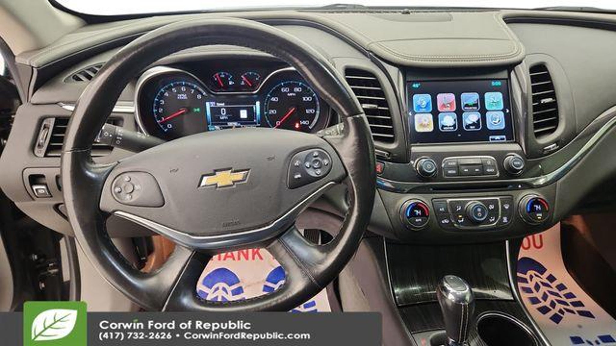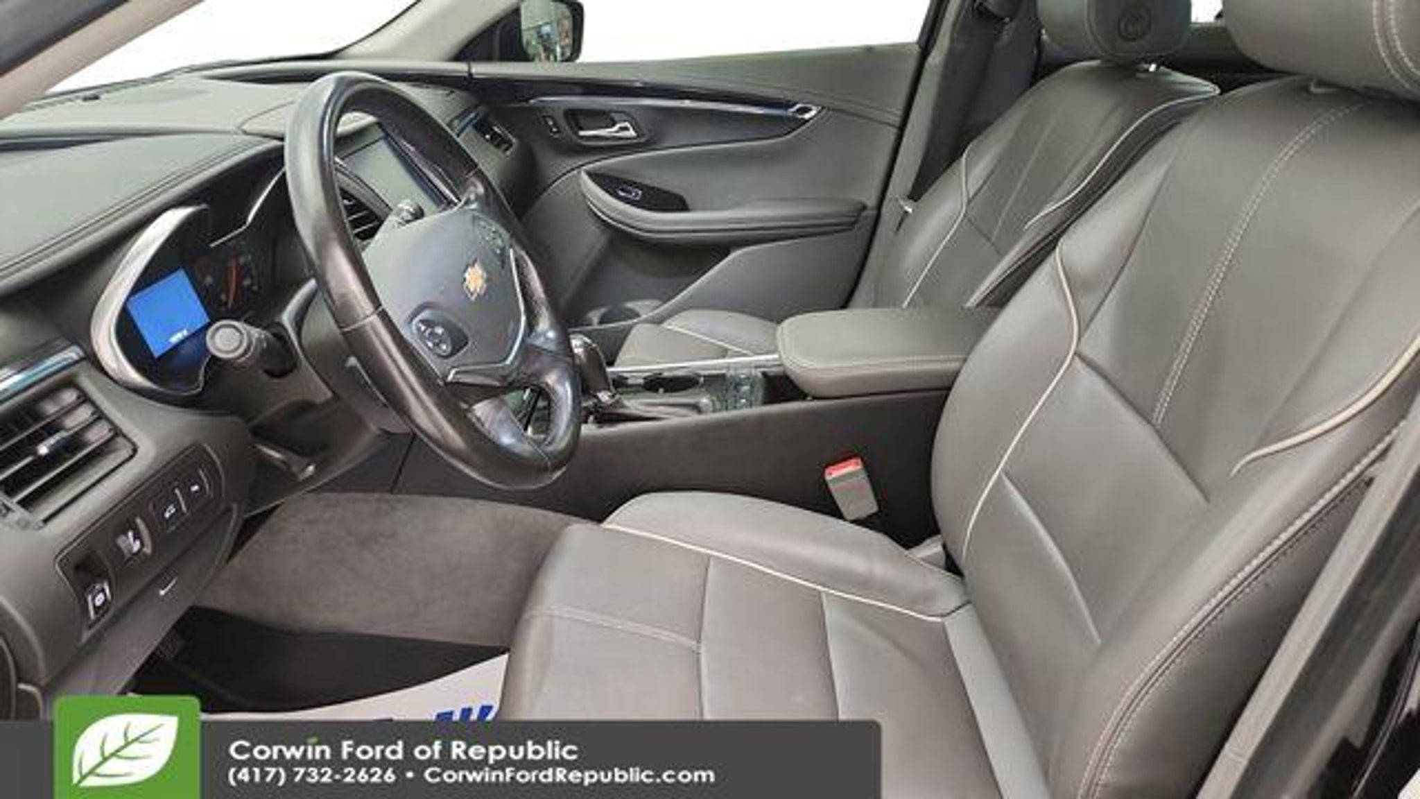Recent Arrival! This Chevrolet Impala is well equipped and includes these key features and benefits, *Heated Seats, Navigation System, Backup Camera, Automatic Headlights, Apple CarPlay, Android Auto, Bluetooth Hands-Free, LOCAL TRADE, 8-Way Power Driver Seat Adjuster, 8-Way Power Front Passenger Seat Adjuster, Rear window defroster, Remote keyless entry, Steering wheel mounted audio controls. Clean CARFAX. 2019 Chevrolet Impala Premier FWD 6-Speed Automatic Electronic with Overdrive 3.6L V6 DI DOHC Mosaic Black Metallic 19/28 City/Highway MPG Awards: * JD Power Dependability Study * 2019 KBB.com 5-Year Cost to Own Awards * 2019 KBB.com 10 Most Comfortable Cars Under $30,000 The BIG QUESTION is why buy from Corwin Ford Lincoln Republic. Corwin is a family owned and operated business. We have been in business for over 100 years. Our select Certified inventory takes the risk out of buying a car at the same live market price. All our preowned vehicles get 172 point inspection by certified technicians. You get a Vehicle History Report. Now that's a deal! What is Live Market Pricing? We utilize a 3rd party company, Kelly Blue Book, to help us price preowned vehicles. To not be just the best price, but the best value price. Which in turn takes the haggle out of buying a car. Saving you TIME and MONEY. Remember if it does not say Corwin on the back of the car, you've probably paid to much. We proudly serve Republic, Ozark, Nixa, Fair Grove, Pleasant Hope, Billings, Clever, Springfield, Aurora, Branson, Marshfield, and the greater Springfield Missouri area. Corwin Price does not include Admin fee of $604.00 or optional Data Dots $299.*