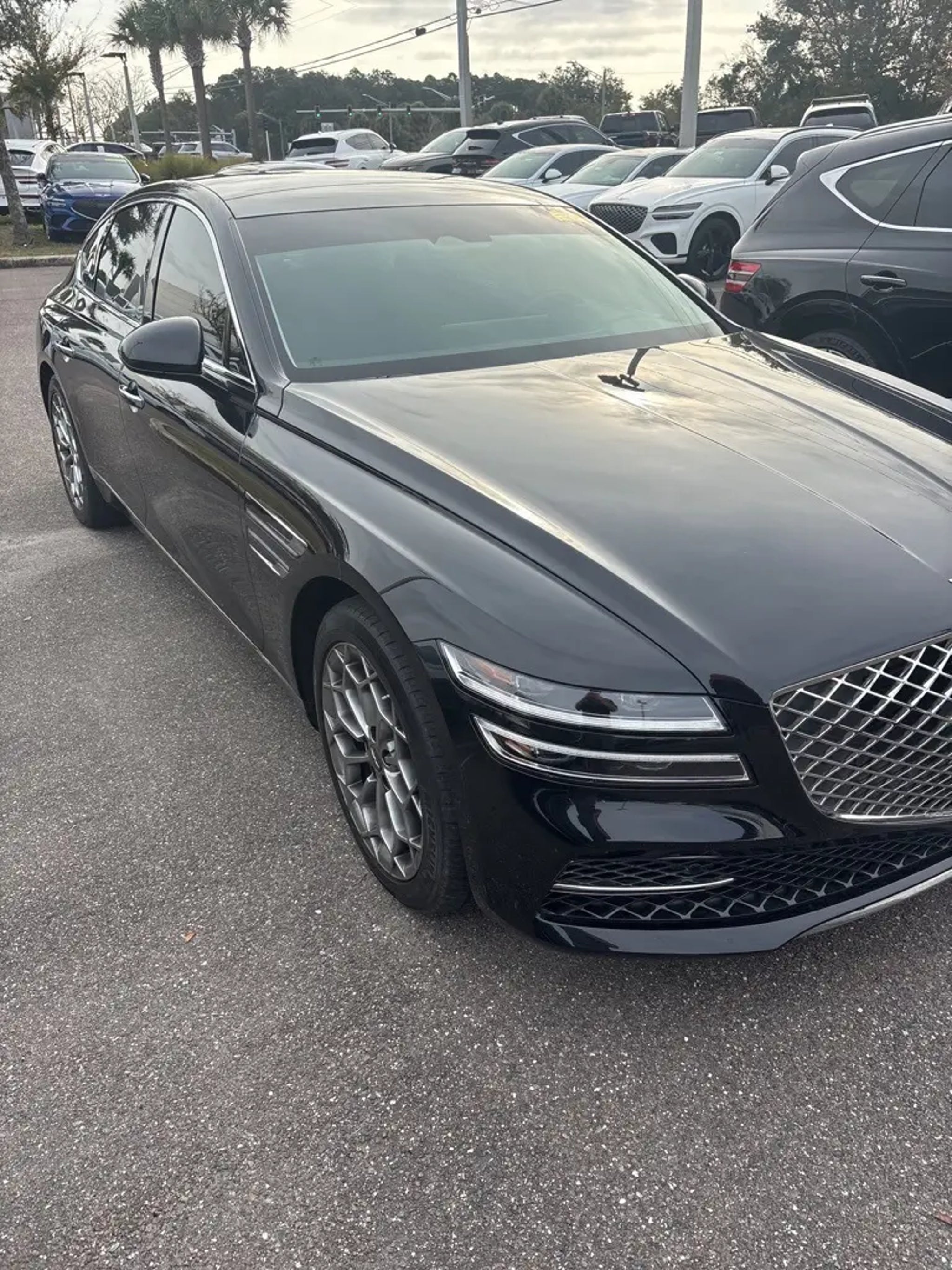 The price does not include tax, tag, license, an electronic filing fee of $449.00**, a private tag agency fee of $199.00**, and a predelivery service charge of $1199.00** **This charge represents costs and profit to the dealer for items such as inspecting, cleaning, and adjusting vehicles, as well as preparing documents related to the sale. * EPA-estimate metric: these are contingent on ideal conditions within a lab. Real-world situations such as carrying passengers or cargo, using climate control, driving style, and ambient temperatures can affect actual metrics. 22/32 City/Highway MPG Certified. Vik Black 2023 Genesis G80 2.5T RWD 8-Speed Automatic I4 This vehicle comes equipped with Advanced Package, Genesis Certified Certified, 12 Speakers, 4-Wheel Disc Brakes, ABS brakes, Air Conditioning, Alloy wheels, AM/FM radio: SiriusXM, Android Auto & Apple CarPlay, Anti-whiplash front head restraints, Auto High-beam Headlights, Auto tilt-away steering wheel, Auto-dimming door mirrors, Auto-dimming Rear-View mirror, Automatic temperature control, Bumpers: body-color, Compass, Delay-off headlights, Driver door bin, Driver vanity mirror, Dual front impact airbags, Dual front side impact airbags, Electronic Stability Control, Emergency communication system: Genesis Connected Services, Exterior Parking Camera Rear, First Aid Kit, Four wheel independent suspension, Front anti-roll bar, Front Bucket Seats, Front Center Armrest, Front dual zone A/C, Front reading lights, Fully automatic headlights, Garage door transmitter: HomeLink, Heated door mirrors, Heated Front Bucket Seats, Heated front seats, Illuminated entry, Knee airbag, Leather steering wheel, Leatherette Seating Surfaces, Low tire pressure warning, Memory seat, Navigation System, Occupant sensing airbag, Outside temperature display, Overhead airbag, Overhead console, Panic alarm, Passenger door bin, Passenger vanity mirror, Power door mirrors, Power driver seat, Power passenger seat, Power steering, Power windows, Radio data system, Radio: AM/FM/HD/SiriusXM Audio System, Rain sensing wipers, Rear anti-roll bar, Rear reading lights, Rear seat center armrest, Rear side impact airbag, Rear window defroster, Remote keyless entry, Security system, Speed control, Speed-sensing steering, Speed-Sensitive Wipers, Steering wheel memory, Steering wheel mounted audio controls, Tachometer, Telescoping steering wheel, Tilt steering wheel, Traction control, Trip computer, Turn signal indicator mirrors, Variably intermittent wipers, Wheel Locks, and Wheels: 18x8.0J Alloy . Odometer is 17324 miles below market average! 22/32 City/Highway MPG Genesis Certified Details: * Limited Warranty: 72 Month/75,000 Mile From original in-service date & zero (0) miles * Roadside Assistance * Includes 10-year/Unlimited mileage Roadside Assistance with Rental Car & Trip interruption reimbursement, see dealers for specific vehicle eligibility. 3 yrs complimentary Genesis Connected Services. * 191 Point Inspection * Transferable Warranty * Vehicle History * Powertrain Limited Warranty: 120 Month/100,000 Mile From original in-service date & zero (0) miles * Warranty Deductible: $50