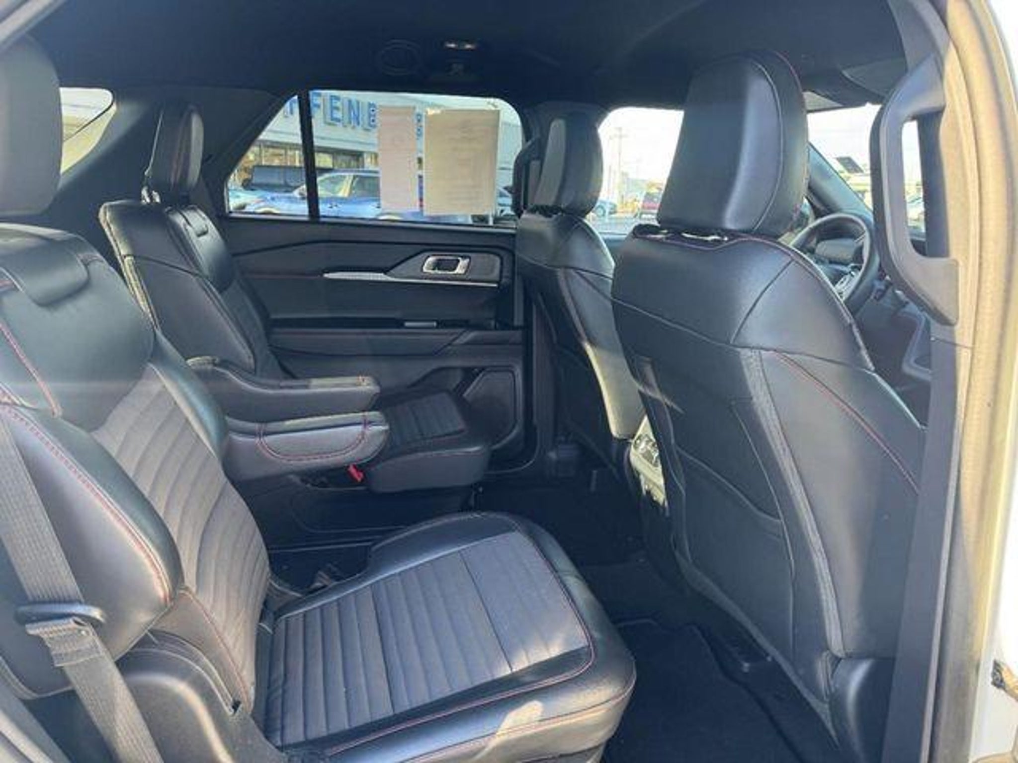 CARFAX One-Owner. Star White Metallic Tri-Coat 2025 Ford Explorer ST-Line 4WD 4WD 10-Speed Automatic 2.3L EcoBoost I-4 ONE OWNER!!, CLEAN CARFAX!!, 4WD, 10 Speakers, 2nd Row Captain's Chairs w/E-Z Entry & Armrest, 3rd row seats: bench, 4-Wheel Disc Brakes, ABS brakes, Air Conditioning, Alloy wheels, AM/FM radio: SiriusXM with 360L, Apple CarPlay/Android Auto, Auto High-beam Headlights, Automatic temperature control, Brake assist, Bumpers: body-color, Compass, Delay-off headlights, Driver door bin, Driver vanity mirror, Dual front impact airbags, Dual front side impact airbags, Electronic Stability Control, Emergency communication system: 911 Assist, Equipment Group 300A Standard Package, Exterior Parking Camera Rear, Four wheel independent suspension, Front anti-roll bar, Front Bucket Seats, Front Center Armrest, Front dual zone A/C, Front fog lights, Front License Plate Bracket, Front reading lights, Fully automatic headlights, Garage door transmitter, Heated door mirrors, Heated front seats, Heated steering wheel, Heated Unique Cloth Captain's Chairs, Illuminated entry, Knee airbag, Leather steering wheel, Low tire pressure warning, Navigation System, Occupant sensing airbag, Outside temperature display, Overhead airbag, Overhead console, Panic alarm, Passenger door bin, Passenger vanity mirror, Power door mirrors, Power driver seat, Power Liftgate, Power passenger seat, Power steering, Power windows, Radio: B&O Sound System by Bang & Olufsen, Rear air conditioning, Rear anti-roll bar, Rear reading lights, Rear window defroster, Rear window wiper, Remote keyless entry, Security system, Speed control, Speed-sensing steering, Split folding rear seat, Spoiler, Steering wheel mounted audio controls, Tachometer, Telescoping steering wheel, Tilt steering wheel, Traction control, Trip computer, Variably intermittent wipers, Wheels: 20 Ebony-Painted Machined Aluminum. It's our 34th anniversary, please come see us. 20/27 City/Highway MPG