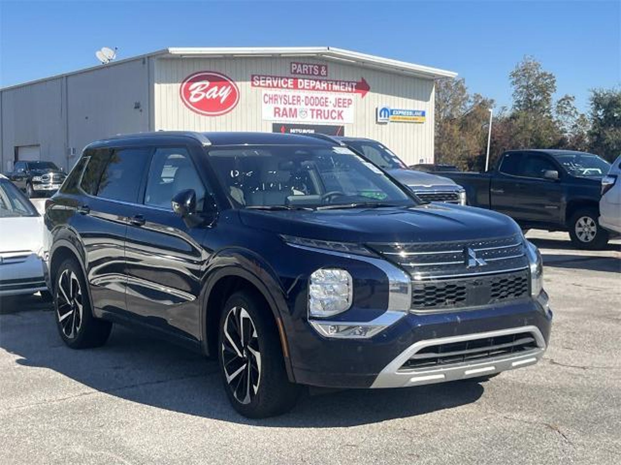 Priced below KBB Fair Purchase Price! 3rd row seats: split-bench, Alloy wheels, Exterior Parking Camera Rear, Heated Front Bucket Seats, Heated front seats, Heated rear seats, Memory seat, Navigation System, Power Liftgate, Power passenger seat, Rear air conditioning, Reclining 3rd row seat, Remote keyless entry, 4-Wheel Disc Brakes, 5.694 Axle Ratio, 6 Speakers, ABS brakes, Air Conditioning, AM/FM radio: SiriusXM, Android Auto & Apple CarPlay, Auto High-beam Headlights, Auto-dimming Rear-View mirror, Automatic temperature control, Brake assist, Bumpers: body-color, Driver door bin, Driver vanity mirror, Dual front impact airbags, Dual front side impact airbags, Electronic Stability Control, Emergency communication system: Mitsubishi Connect w/ 24-month trial, Four wheel independent suspension, Front anti-roll bar, Front Bucket Seats, Front Center Armrest w/Storage, Front dual zone A/C, Front fog lights, Front reading lights, Fully automatic headlights, Heated door mirrors, Illuminated entry, Knee airbag, Leather Shift Knob, Leather steering wheel, Low tire pressure warning, Occupant sensing airbag, Outside temperature display, Overhead airbag, Overhead console, Panic alarm, Passenger door bin, Passenger vanity mirror, Power door mirrors, Power driver seat, Power steering, Power windows, Radio data system, Radio: AM/FM 9.0 Navigation w/Smartphone Link, Rain sensing wipers, Rear anti-roll bar, Rear seat center armrest, Rear side impact airbag, Rear window defroster, Rear window wiper, Security system, Semi-Aniline Leather Seat Trim, Speed control, Speed-Sensitive Wipers, Split folding rear seat, Spoiler, Steering wheel mounted audio controls, Tachometer, Telescoping steering wheel, Tilt steering wheel, Traction control, Trip computer, Turn signal indicator mirrors, Variably intermittent wipers, 3rd row seats: split-bench, Alloy wheels, Exterior Parking Camera Rear, Heated Front Bucket Seats, Heated front seats, Heated rear seats, Memory seat, Navigation System, Power Liftgate, Power passenger seat, Rear air conditioning, Reclining 3rd row seat, Remote keyless entry. Blue 2024 Mitsubishi Outlander SEL FWD CVT 2.5L 4-Cylinder DOHC
