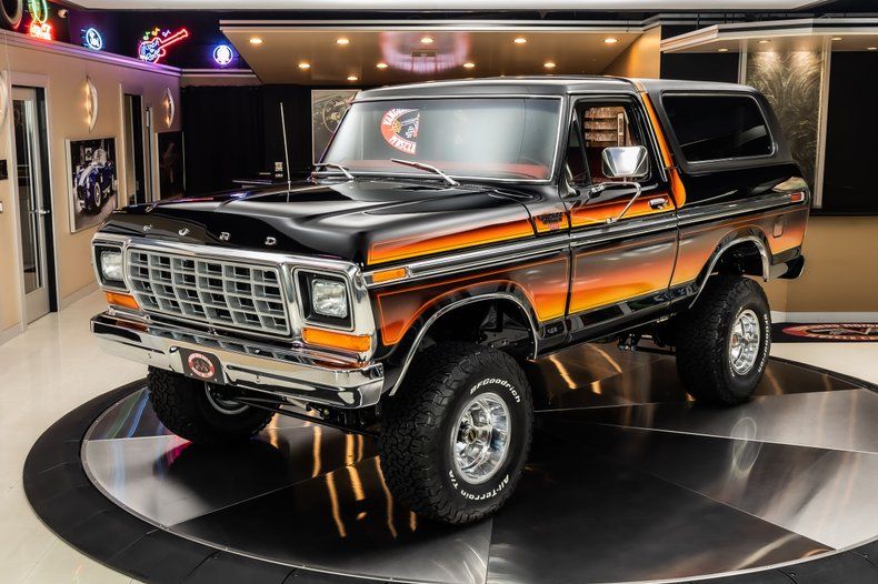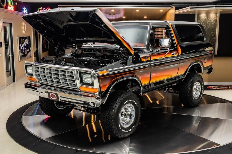 Check out this amazing 1979 Ford Bronco Restomod 4X4! This custom Bronco has undergone a complete, frame-off build with no expense spared! This Bronco is finished in gloss black with Free Wheeling graphics and Ranger XLT trim with a black removable hardtop! Under the hood sits a Supercharged 5.0L Coyote V8 with a 5th Generation 3.0L Whipple Supercharger and Ford Racing control pack making 700hp! Power is sent to the pavement through a 10R80 10 Speed Automatic Transmission, NP205 Transfer Case, Dana 44 and Ford 9" Axles with 3.23:1 gears! Additionally, this Bronco has been fitted with a 4in Lift, Fox Shocks and Steering Stabilizer, Aluminum Slotted Mag Wheels, Tig Welded and Polished Exhaust System, & BFGoodrich KO2 Tires! Other nice options include, Power Steering, Power 4-Wheel Wilwood Disc Brakes, Restomod Air A/C and Heat System.
