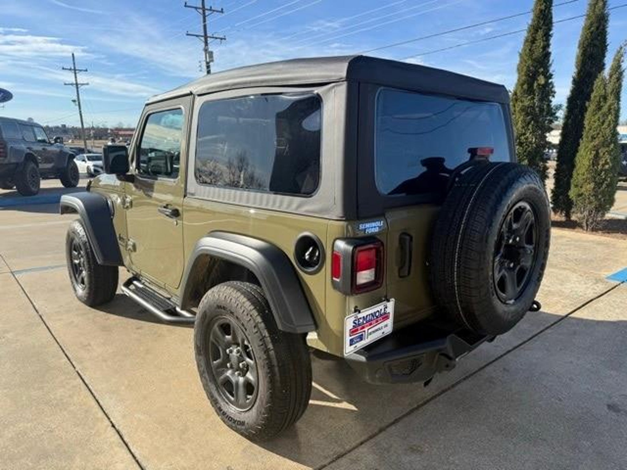 2025 Jeep Wrangler Sport ONE OWNER, CLEAN CARFAX, LOCAL TRADE, 4WD, BLUETOOTH, MANUAL TRANSMISSION. 3.6L V6 24V VVT 4WD 17/23 City/Highway MPG Quick Order Package 23B Sport, 110 MPH Vehicle Max Speed Calibration, 3.45 Overall Top Gear Ratio, 4-Wheel Disc Brakes, 8 Speakers, ABS brakes, Air Conditioning, AM/FM radio: SiriusXM, Apple CarPlay/Android Auto, Aux Battery, Brake assist, Cloth Low-Back Bucket Seats, Compass, Deep Tint Sunscreen Windows, Delay-off headlights, Driver door bin, Driver vanity mirror, Dual front impact airbags, Dual front side impact airbags, Electronic Stability Control, Front anti-roll bar, Front Bucket Seats, Front Center Armrest w/Storage, Front fog lights, Front reading lights, Illuminated entry, Integrated roll-over protection, Low tire pressure warning, Non-Lock Fuel Cap w/o Discriminator, Normal Duty Suspension, Occupant sensing airbag, Outside temperature display, Overhead airbag, Panic alarm, ParkView Rear Back-Up Camera, Passenger door bin, Passenger vanity mirror, Power steering, Power windows, Radio data system, Radio: Uconnect 5 w/12.3 Display, Rear anti-roll bar, Rear reading lights, Remote keyless entry, Speed control, Steering wheel mounted audio controls, Stop-Start Dual Battery System, Tachometer, Telescoping steering wheel, Tilt steering wheel, Traction control, Trip computer, Variably intermittent wipers, and Wheels: 17 x 7.5 Black Steel Styled. IF WE DON'T SERVE YOU, WE DON'T DESERVE YOU! Seminole Ford proudly serving the following communities Seminole, Shawnee, Prague, Tecumseh, Wewoka, Holdenville, Wetumka, Ada, Norman, Stroud, Okemah & Meeker.