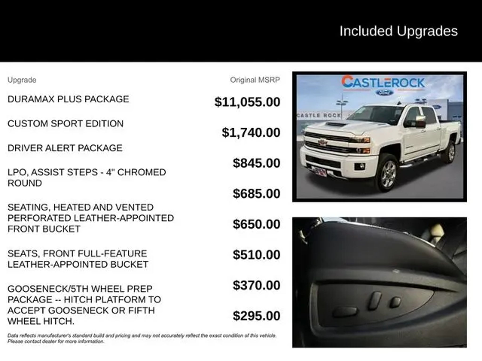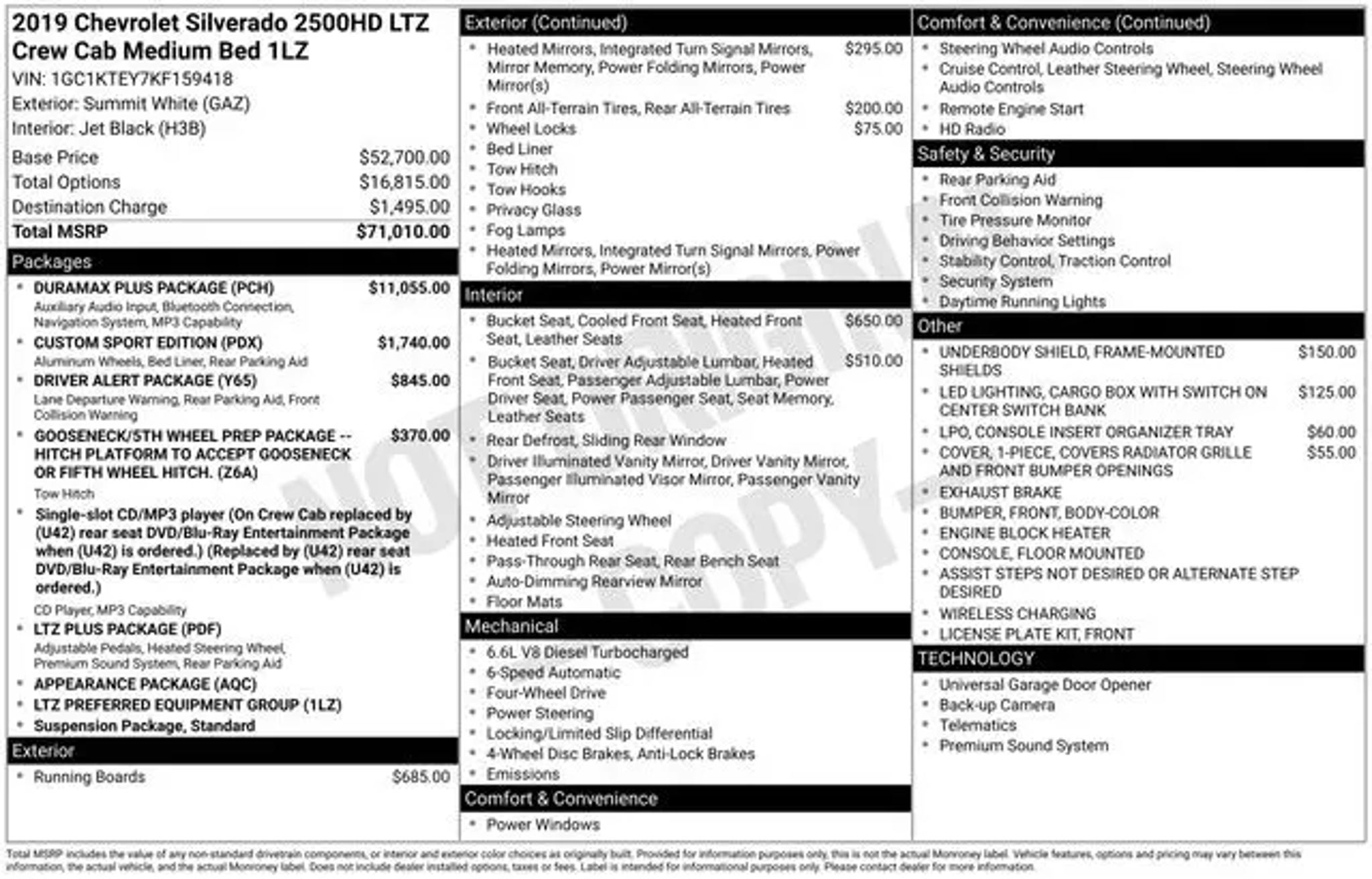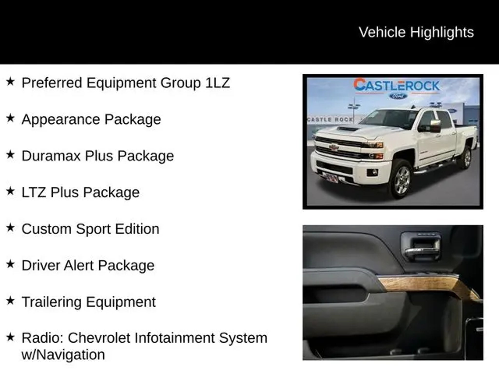 Experience the ultimate in power, capability, and comfort with this stunning 2019 Chevrolet Silverado 2500HD LTZ. This impressive heavy-duty truck is more than just a workhorse - it's a true masterpiece of engineering, designed to tackle any challenge with unparalleled strength and refinement. Boasting an impressive array of premium features, this Silverado stands out from the crowd. Key highlights include: "¢ Duramax 6.6L V8 Turbodiesel engine and Allison 1000 6-speed automatic transmission for unrivaled towing and hauling capabilities "¢ Custom Sport Edition with body-color grille, bumpers, and 20 polished aluminum wheels for a bold, distinctive look "¢ Driver Alert Package with Lane Departure Warning, Forward Collision Alert, and Front and Rear Park Assist for enhanced safety and peace of mind "¢ Heated and vented perforated leather-appointed front bucket seats for unmatched comfort and luxury "¢ Gooseneck/5th Wheel Prep Package to accommodate a wide range of towing needs This Silverado 2500HD is more than just a truck - it's a statement of power, capability, and refined sophistication. With its impressive performance, advanced technology, and premium amenities, it's the perfect choice for those who demand the very best. Whether you're tackling tough jobs on the job site, hauling heavy loads, or simply enjoying the open road, this Silverado 2500HD LTZ is up for the challenge. Its rugged construction, advanced safety features, and luxurious interior make it the ultimate companion for any adventure. Don't miss your chance to experience the unparalleled capabilities and refined comfort of this exceptional 2019 Chevrolet Silverado 2500HD LTZ. Visit our showroom today and let us demonstrate how this remarkable truck can transform the way you work, play, and explore.