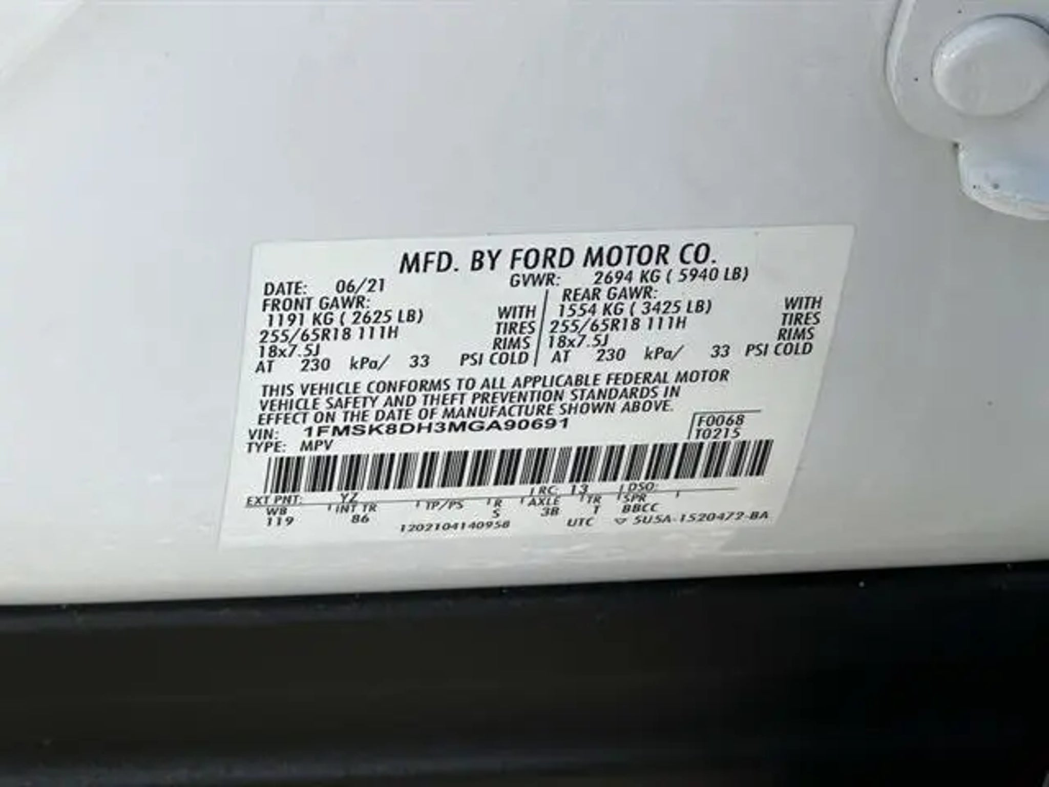VIN 1FMSK8DH3MGA90691