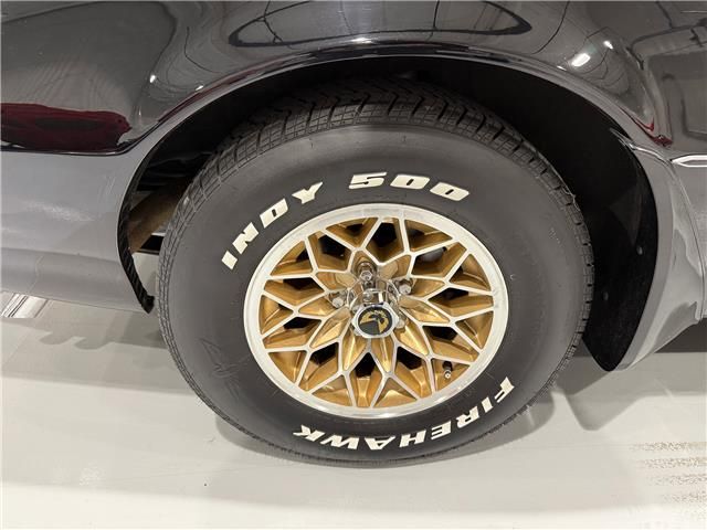 This Trans Am still rides on its original factory honeycomb gold wheels, which perfectly complement the black and gold color scheme and complete the classic appearance that made these cars so famous.