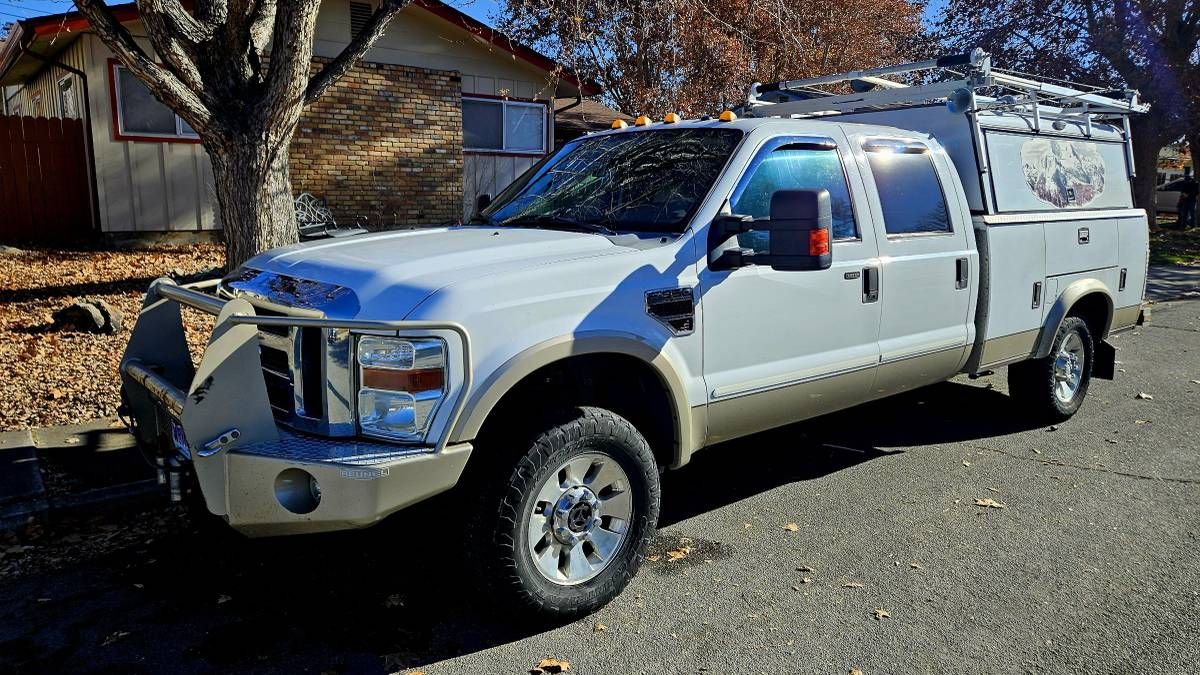 This 2008 Ford F350 Diesel Utility Truck is a loaded 4WD crew cab Lariat with extensive utility upgrades. It includes a tool box bed, goose neck hitch, onboard air compressor, 60-gallon auxiliary fuel tank, full steel brush guard bumper with winch, subwoofer and amp, automatic step rails, camper shell, and airbag rear suspension. Recent maintenance includes new alternator, new brakes and rotors, new shocks, and a complete front-end rebuild. Note: the truck has EGR and DPF deletes; if registering in Washoe County, a DPF reinstall will be required for emissions compliance. Located in Sparks, NV 89431 For more information, please call 833-265-6113 and mention ID 90732