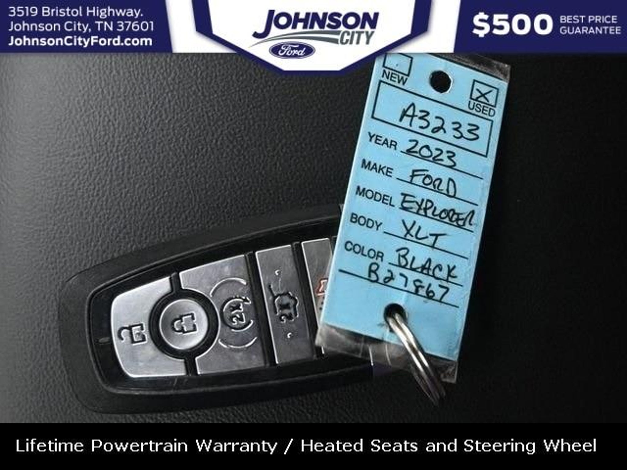 *** BACKUP CAMERA ***, *** BLUETOOTH ***, USB Charging Port, Cruise Control, !! LIFETIME WARRANTY !!, 3rd Row Seats, Vehicle Detailed, Recent Oil Change, Passed Dealer Inspection, Keyless Entry, Multi-zone Climate Control, Power Locks, Power Windows, Steering Wheel Controls, Heated Seats, Touch Screen, 3rd Row! Co-Pilot360! Daytime Running Lamps!, Acoustic-Laminated Front Side Windows, Air Conditioning, Equipment Group 202A, Heated ActiveX Captain's Chairs, Heated front seats, Heated Steering Wheel, LED Fog Lamps, Power driver seat, Remote Start System, SecuriCode Keyless Entry Keypad. CARFAX One-Owner. Clean CARFAX. 20/27 City/Highway MPG 2023 Agate Black Metallic Ford 4D Sport Utility Explorer XLT Remote Start 3rd Row 4WD 10-Speed Automatic 2.3L EcoBoost I-4 At Johnson City Ford we believe in MARKET VALUE PRICING all vehicles in our inventory. We use real-time Internet price comparisons to constantly adjust prices to provide ALL BUYERS The BEST PRICE possible. We do not mark them up, to mark them down! We utilize state-of-the-art technology to constantly monitor pricing trends in order to offer our shoppers the best competitive pricing and value. Our entire team is committed to helping you buy a car the way we would want to buy a car! Proudly serving these areas Tennessee, Virginia, North Carolina & surrounding communities, Kingsport, Bristol, Johnson City, Knoxville, Greeneville, Elizabethton, Asheville. Please call with any and all questions @ 423-282-3000 ask for the Internet Department or email 24/7 mackenziecornett@johnsoncityford.com.