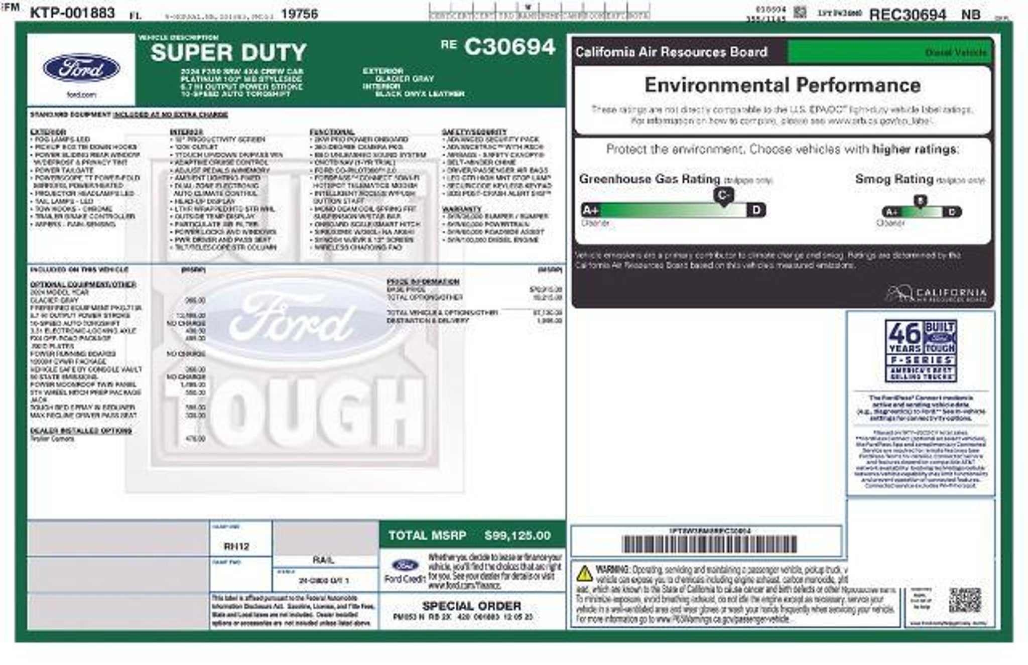 Experience the pinnacle of power and capability in the 2024 Ford F-350SD Platinum. This exceptional truck is a true workhorse, designed to conquer any challenge with unparalleled performance and refined luxury. ? One-Owner Perfect No Accident CarFax Garage Kept! ? RARE Glacier Gray Metallic ? HIGH OUTPUT 6.7 POWERSTROKE! ? 6.7L V8 Diesel Turbocharged (Power Stroke) ? Twin Panel Power Moonroof ? Tough Bed Spray-In Bedliner ? 5th Wheel/Gooseneck Hitch Prep Package ? FX4 Off-Road Package ? Electronic-Locking w/3.31 Axle Ratio ? Max Recline Seats Under the hood, the F-350SD Platinum boasts a powerful 6.7L High Output Power Stroke V8 Diesel engine, delivering exceptional towing and hauling capabilities. Paired with a smooth-shifting 10-speed automatic transmission and robust 4WD system, this truck is ready to tackle any terrain or task with confidence. Step inside and experience the epitome of luxury. The Platinum trim level surrounds you in premium materials, including leather-wrapped steering wheel and shift knob, heated and ventilated front seats, and a state-of-the-art B&O Unleashed Sound System by Bang & Olufsen. The twin-panel power moonroof fills the cabin with natural light, creating an open and airy atmosphere. Designed to handle the most demanding jobs, the F-350SD Platinum is equipped with the FX4 Off-Road Package, featuring hill descent control, off-road-tuned shock absorbers, and skid plates to protect vital components. The 5th Wheel/Gooseneck Hitch Prep Package allows you to seamlessly integrate a fifth-wheel or gooseneck trailer, expanding your towing capabilities. Technological advancements abound, with the SYNC 4 infotainment system, Connected Navigation, and SiriusXM with 360L keeping you connected and entertained on the go. The Electronic-Locking Rear Differential with 3.31 Axle Ratio provides enhanced traction and control, ensuring you can conquer any terrain. This 2024 Ford F-350SD Platinum is a true masterpiece of engineering and design, blending uncompromising power, unparalleled capability, and unmatched luxury. Experience the ultimate in truck ownership and schedule a test drive today. The listed online price reflects a $1,000 finance incentive and a $1,000 qualifying retail trade-in incentive; absence of either or both incentives will result in an increase of up to $2,000 to the final sale price.