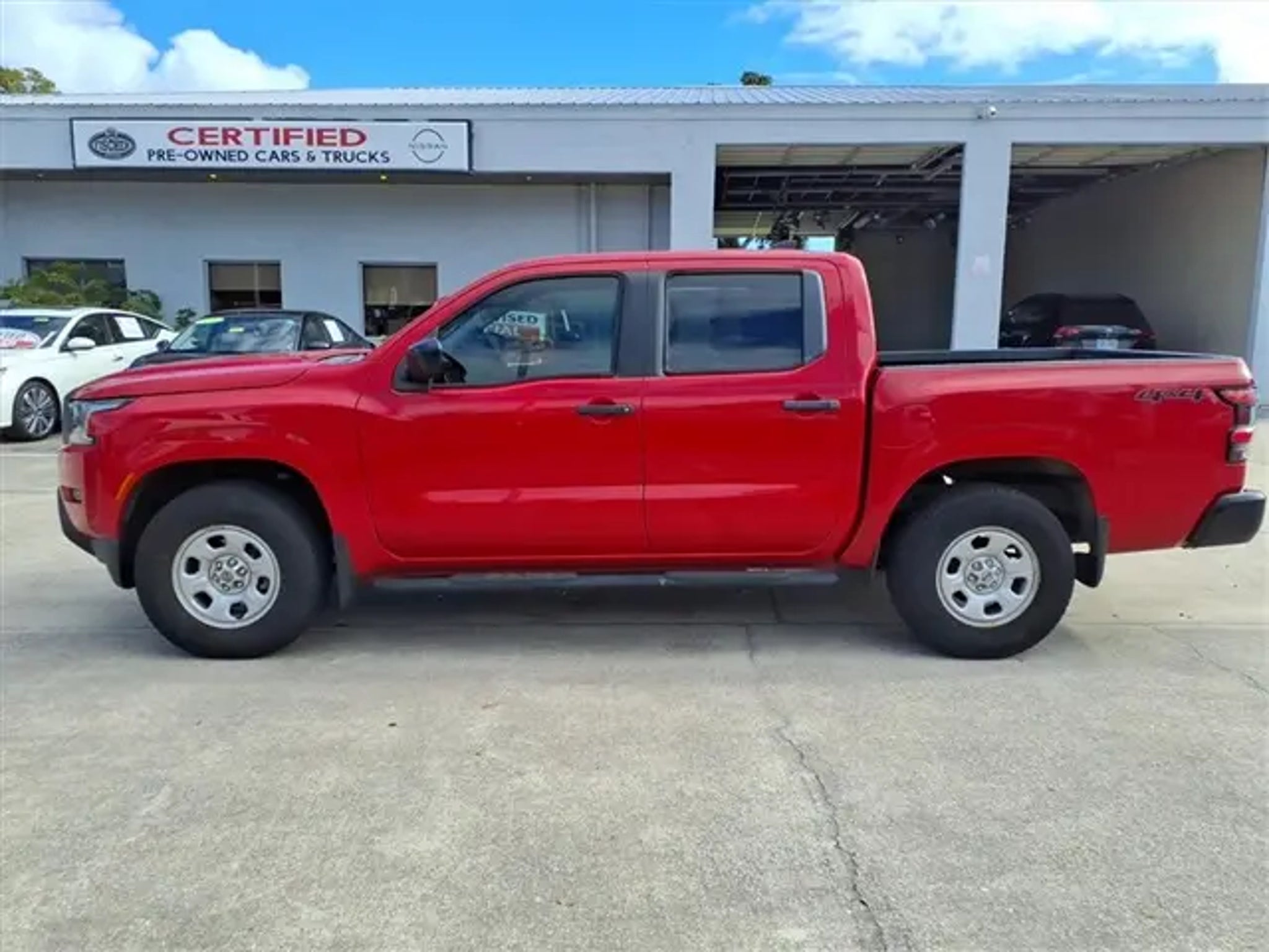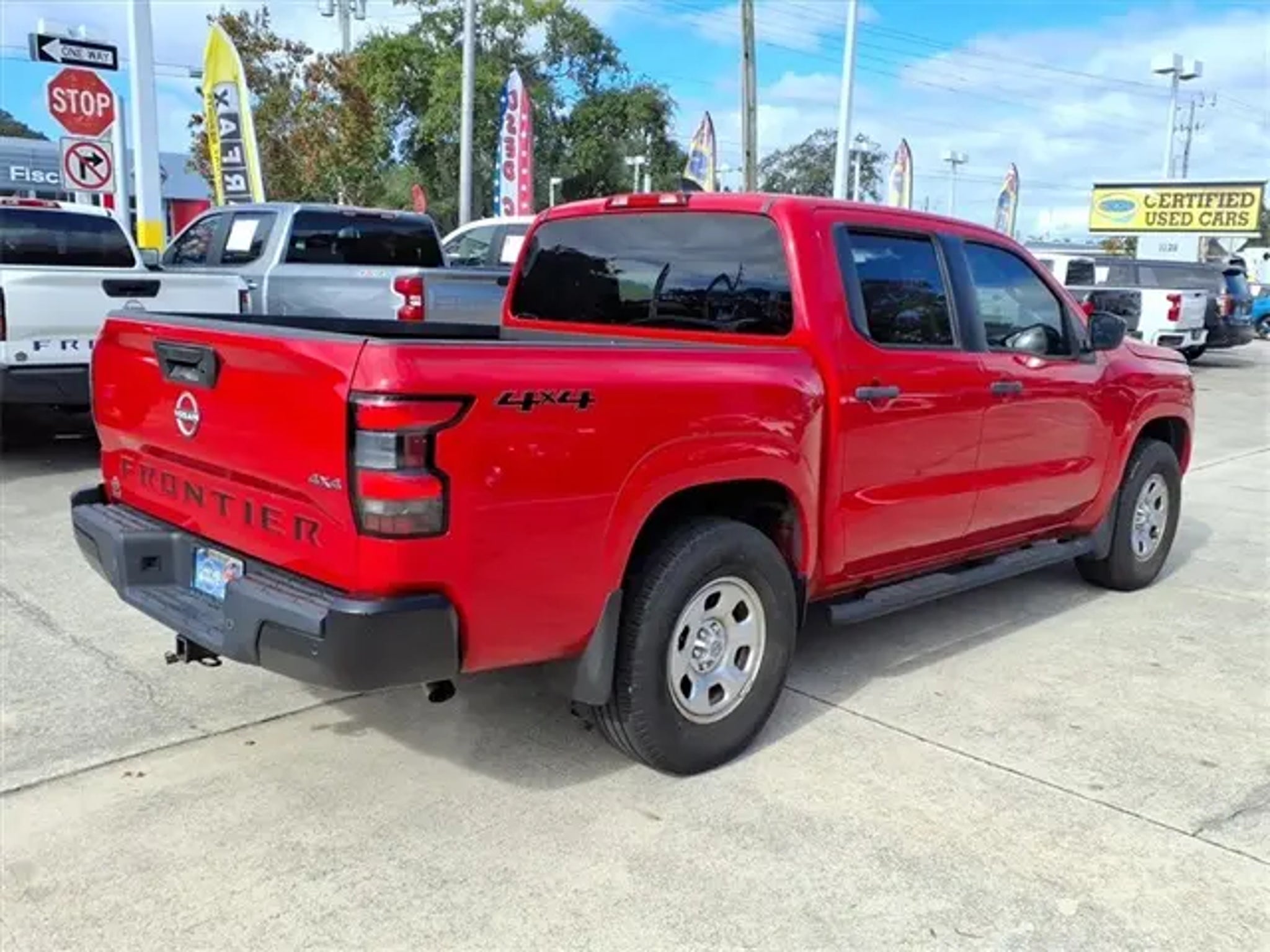 2022 Nissan Frontier S 4WD***Red Alert**Super low mileage 4 wheel drive crew cab- 6500lb tow capacity** Ready for all the tasks of the day- bedliner, tow hitch, backup camera and step bars***1 owner Carfax clean with no accident/ non smoker** 3.8L /V6 9-Speed Automatic 4WD** 17/22 City/Highway MPG Nissan Certified Details: * Roadside Assistance * Vehicle History * Transferable Warranty * Limited Warranty: 84 Month/100,000 Mile (whichever occurs first) * Warranty Deductible: $100 * 7 Year/100,000 Mile Limited Warranty, 24/7 Hour Roadside Assistance, Carfax Vehicle History Report, Plus 1 Year Pre-Paid Maintenance Included. Gas Powered Nissan Models Only. * 167 Point Inspection Our Nissan, factory trained, Master technician perform a 167 point inspection and completed routine maintenance. Serving the central Florida area since 1971 and continuing a wonderful history with our new and long time customers, today. We are conveniently located in Titusville, FL just 35 minutes from Orlando Int'l airport, off I-95 exit 220. East 2.7M to US1, turn right on US1- to 1128 S Hopkins Ave Titusville, FL 32780. ** Price does not reflect reconditioning fee $1195 Technology Package (Intelligent Cruise Control, Lane Departure Warning System, Rear Automatic Braking (RAB), Rear Cross Traffic Alert (RCTA), and Rear Sonar System), Nissan Certified Certified, 4WD, 16 Styled Steel Wheels, 3.692 Axle Ratio, 4-Wheel Disc Brakes, 6 Speakers, ABS brakes, Air Conditioning, AM/FM radio: SiriusXM, Anti-whiplash front head restraints, Apple CarPlay/Android Auto, Auto High-beam Headlights, Brake assist, Bumpers: body-color, Cloth Seat Trim, Delay-off headlights, Driver door bin, Driver vanity mirror, Dual front impact airbags, Dual front side impact airbags, Electronic Stability Control, Floor Mats, Front anti-roll bar, Front Bucket Seats, Front Center Armrest, Front reading lights, Front wheel independent suspension, Fully automatic headlights, Illuminated entry, Knee airbag, Low tire pressure warning, Occupant sensing airbag, Overhead airbag, Panic alarm, Passenger door bin, Passenger vanity mirror, Power steering, Power windows, Radio data system, Radio: SXM/AM/FM/AUX/USB Audio System w/6 Speakers, Rear anti-roll bar, Rear step bumper, Remote keyless entry, Speed control, Speed-sensing steering, Splash Guards, Split folding rear seat, Steering wheel mounted audio controls, Tachometer, Tilt steering wheel, Traction control, Trip computer, and Variably intermittent wipers.