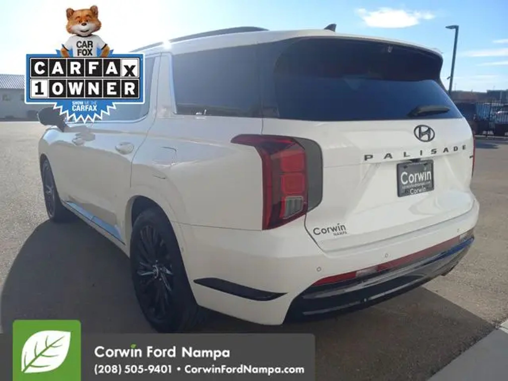 In the top tier of SUVs, our Accident Free, One Owner 2024 Hyundai Palisade Calligraphy AWD takes on your days with a striking Hyper White design! Powered by a 3.8 Liter V6 offering 291hp to a paddle-shifted 8 Speed Automatic transmission to help conquer the daily grind. This All Wheel Drive SUV also cuts through the crowd with upscale ride and handling, and it scores nearly 24mpg on the highway. Our Palisade's proud exterior provides LED lighting, a dual-pane sunroof, exclusive 20-inch alloy wheels, a hands-free liftgate, silver roof rails, and a sophisticated satin chrome grille. Our Calligraphy cabin is critically acclaimed for its heated/ventilated Nappa leather front seats and second-row captain's chairs, an Ergo-Motion driver's seat, a heated power-folding third row, a heated leather steering wheel, dual-zone automatic climate control, and quilted-leather door panels. Double down on connectivity with a 12.3-inch driver display and a 12.3-inch touchscreen, Onboard Navigation, WiFi compatibility, voice control, Android Auto®/Apple CarPlay®, Bluetooth®, wireless charging, and Harman Kardon audio. Hyundai helps reduce hassles behind the wheel with Highway Driving Assist II, remote automatic parking, surround vision, a digital rearview mirror, automatic braking, a head-up display, and more. Large and in charge, our Palisade Calligraphy is ready for your next fantastic journey! Save this Page and Call for Availability. We Know You Will Enjoy Your Test Drive Towards Ownership! Corwin Ford Nampa! Friendly service and aggressive pricing is why we are your new and pre-owned vehicle dealer serving, Nampa, Boise, Meridian, Caldwell, Kuna, Eagle, Emmett, Idaho City, Wilder, New Plymouth, Star, Middleton, Weiser, Payette, Horseshoe Bend, Mountain Home, Idaho, and surrounding states.