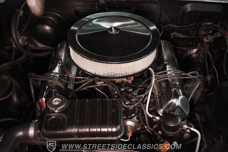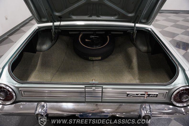 Under the hood, the heart of this Galaxie is a robust 390 V8 engine, paired with a smooth-shifting 4-speed manual transmission and a 3.00 gear ratio rear axle. The engine bay is clean and well-maintained, showcasing chrome valve covers and possibly the original Ford cast iron shorty headers that were offered for high-performance models of the era. Though it lacks power steering and air conditioning, this setup offers a raw, engaging driving experience that true muscle car enthusiasts will appreciate. The suspension and brakes are factory style, ensuring a classic feel on the road.