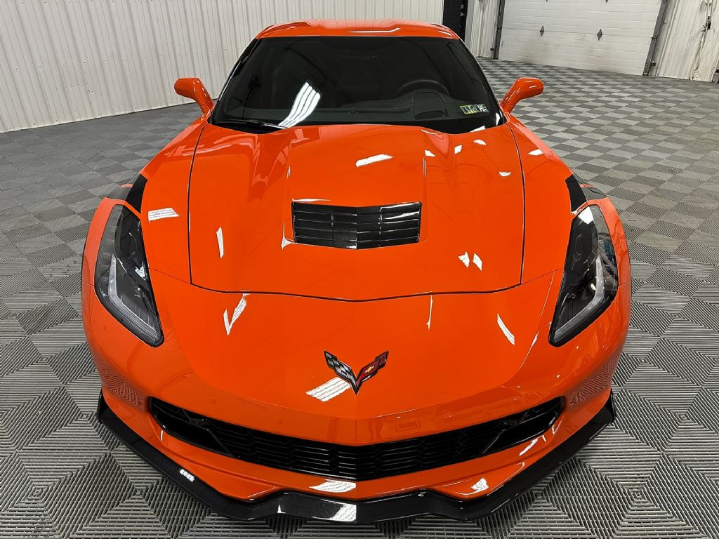 This Grand Sport also wears the machined-face lightweight aluminum wheels and is finished in the limited-production Sebring Orange Tintcoat, a standout color for 2018. It is further distinguished by the Grand Sport Heritage Package, which adds carbon-flash fender hash marks, interior aluminum hash marks, Grand Sport logo floor mats, a carbon-flash rear license plate holder, and the carbon-flash badge package.