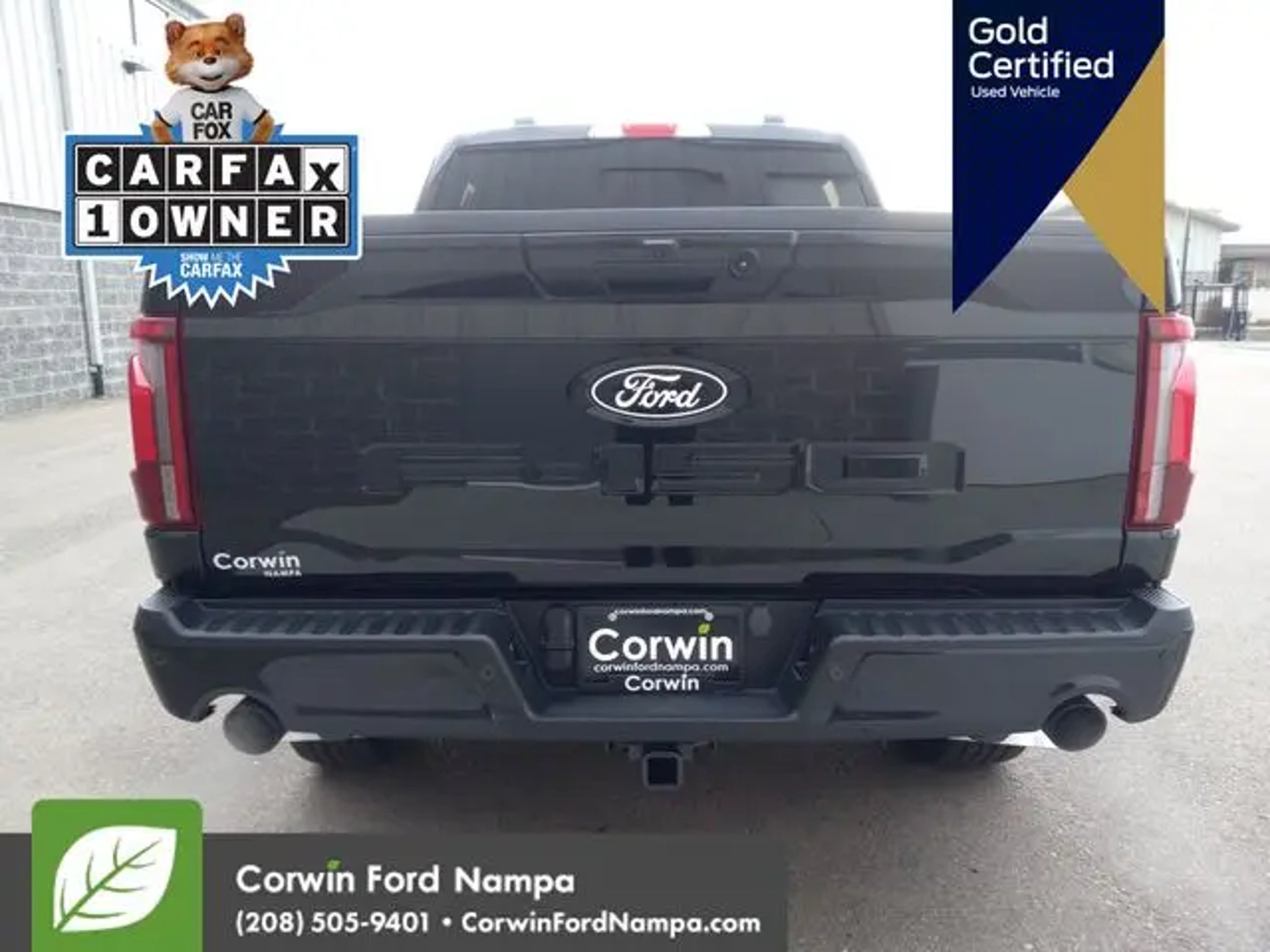 Our Certified, Accident Free, One Owner 2024 Ford F-150 Lariat SuperCrew 4X4 with the FX4 Pack is designed to get things done in Agate Black Metallic! Motivated by a Twin-TurboCharged 3.5 Liter PowerBoost Hybrid V6 generating 430hp to a 10 Speed Automatic transmission for tackling trails, trailers, and tough jobs alike. A Pro Power Onboard generator is another benefit of this Four Wheel Drive truck, which returns nearly 24mpg on the highway with our FX4 Pack. It adds off-road shocks, hill descent control, Rock Crawl mode, an electronic locking rear axle, skid plates, and an exclusive box decal to LED lighting, 20-inch chrome-like PVD wheels, chrome running boards, a SecuriCode keypad, and a Class IV trailer hitch. Impressive attention to detail greets you in our Lariat cabin with Recaro leather/Alcantara power front seats, a heated leather steering wheel, air conditioning, a 12V power outlet, keyless access, and pushbutton ignition. Access intelligent infotainment with a 12-inch driver display, a 12-inch touchscreen, connected navigation compatibility, voice control, Apple CarPlay®, Android Auto®, WiFi compatibility, Bluetooth®, and a B&O sound system. Drive confidently, knowing Ford provides hands-free BlueCruise compatibility, blind-spot monitoring, Pro Trailer Backup Assist, automatic braking, lane-keeping assistance, a rearview camera, forward collision warning, hill-start assistance, and other advanced features. With all that, the possibilities are practically endless in our F-150 Lariat! Save this Page and Call for Availability. We Know You Will Enjoy Your Test Drive Towards Ownership! Corwin Ford Nampa! Friendly service and aggressive pricing is why we are your new and pre-owned vehicle dealer serving, Nampa, Boise, Meridian, Caldwell, Kuna, Eagle, Emmett, Idaho City, Wilder, New Plymouth, Star, Middleton, Weiser, Payette, Horseshoe Bend, Mountain Home, Idaho, and surrounding states.