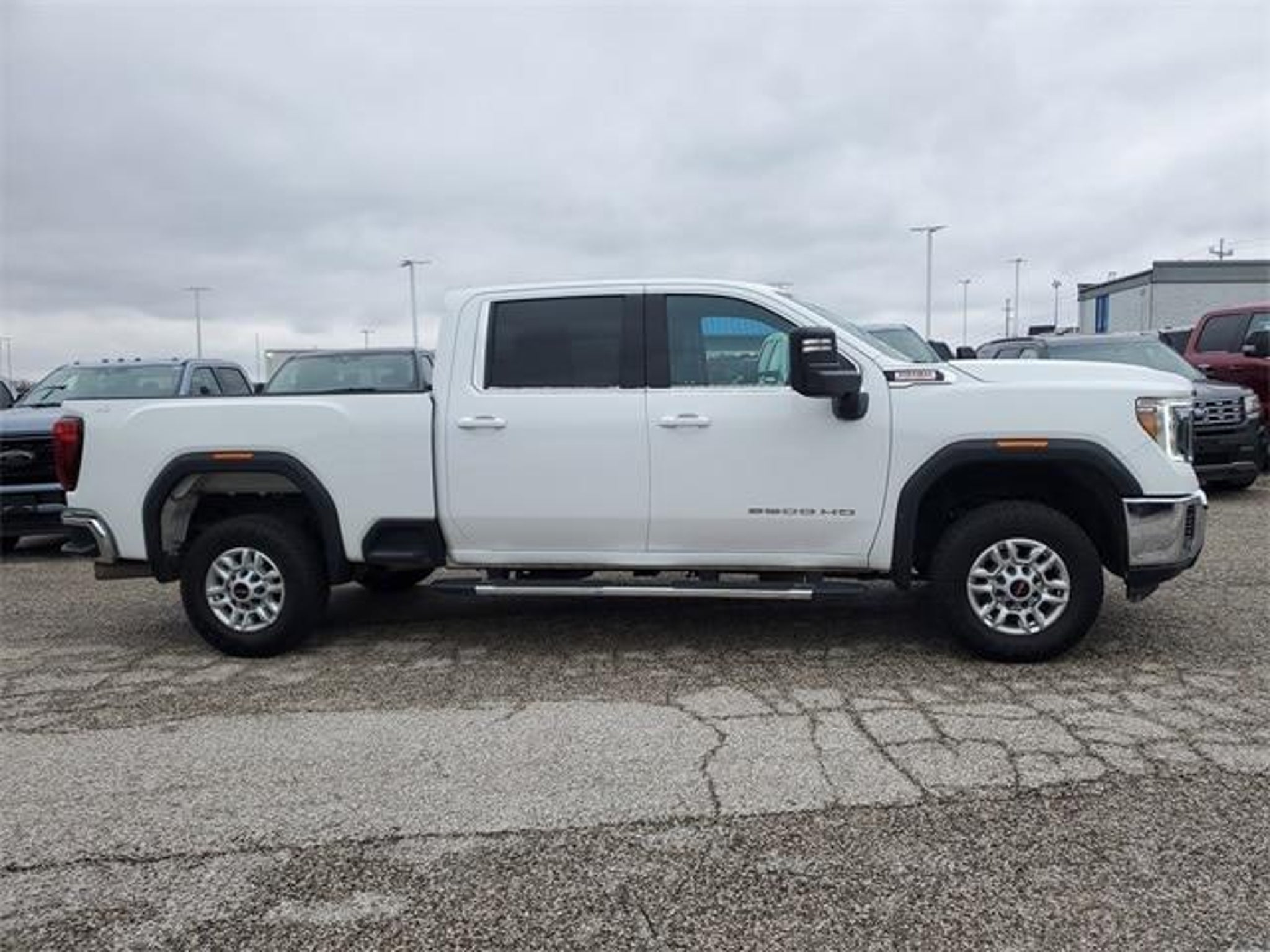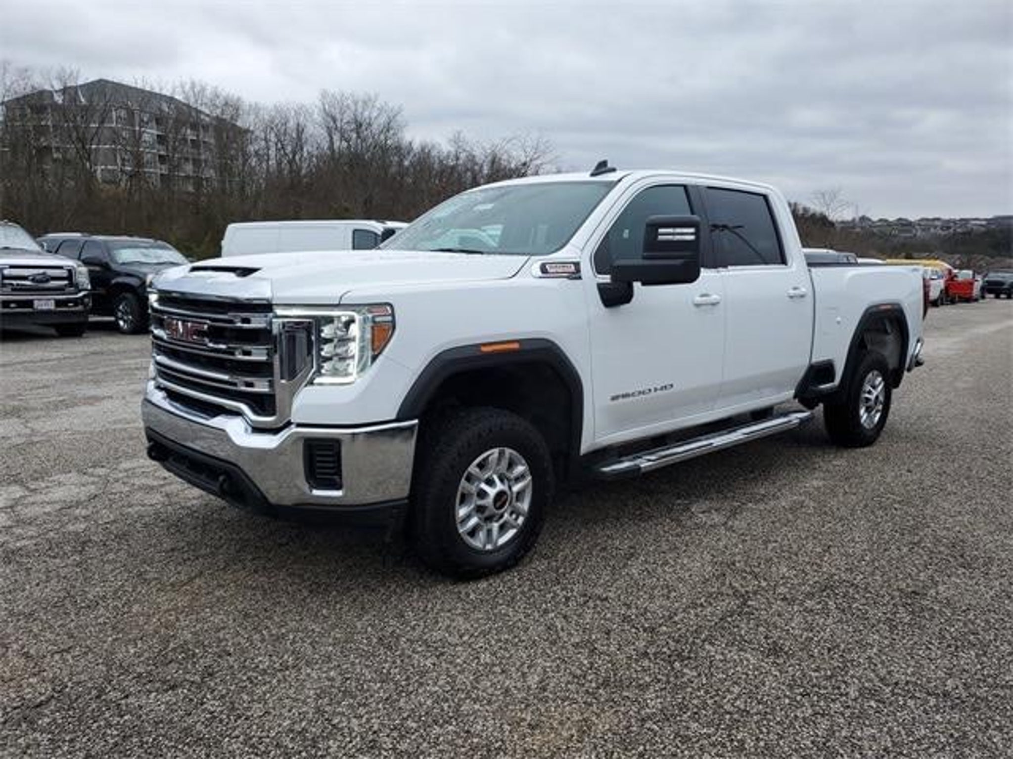 Summit White 2023 GMC Sierra 2500HD SLE 4WD 10-Speed Automatic Duramax 6.6L V8 Turbodiesel 10-Speed Automatic, 4WD, Black Cloth. Recent Arrival! This 2023 GMC Sierra 2500HD SLE comes equipped with Preferred Equipment Group 3SA (2-Speed Electronic Shift Transfer Case, Chrome Surround Grille w/High Gloss Black Mesh, Compass Located In Instrument Cluster, Deep-Tinted Glass, GMC Connected Access Capable, Integrated Trailer Brake Controller, Manual Tilt Wheel Steering Column, OnStar & GMC Connected Services Capable, Power Door Locks, Power Rear Windows w/Express Down, Power Windows w/Driver Express Up/Down, Remote Keyless Entry, SiriusXM Radio, Steering Wheel Audio Controls, and Wi-Fi Hotspot Capable), Suspension Package, 10-Speed Automatic, 4WD, Black Cloth, 17 Machined Aluminum Wheels, 220 Amps Alternator, 4-Way Manual Driver Seat Adjuster, 4-Way Manual Passenger Seat Adjuster, 4-Wheel Disc Brakes, 6 Speakers, 6-Speaker Audio System Feature, 6 Rectangular Chromed Tubular Assist Steps, ABS brakes, Air Conditioning, Alloy wheels, AM/FM radio: SiriusXM, Apple CarPlay/Android Auto, Brake assist, Bumpers: chrome, Cloth Seat Trim, Compass, Delay-off headlights, Driver door bin, Driver vanity mirror, Dual front impact airbags, Dual front side impact airbags, Electronic Stability Control, Emergency communication system: OnStar and GMC connected services capable, Engine Block Heater, Exhaust Brake, Exterior Parking Camera Rear, Front 40/20/40 Split-Bench Seats, Front anti-roll bar, Front Center Armrest w/Storage, Front reading lights, Front wheel independent suspension, Fully automatic headlights, Heated door mirrors, Heavy-Duty 80 Amp Battery, Illuminated entry, Low tire pressure warning, Occupant sensing airbag, Outside temperature display, Overhead airbag, Overhead console, Panic alarm, Passenger door bin, Passenger vanity mirror, Pickup Box, Power door mirrors, Power steering, Power windows, Premium audio system: GMC Infotainment System, Radio: AM/FM w/GMC Infotainment System, Rear reading lights, Rear step bumper, Remote keyless entry, Speed control, Split folding rear seat, Steering wheel mounted audio controls, Tachometer, Tilt steering wheel, Traction control, Trip computer, Turn signal indicator mirrors, Variably intermittent wipers, Voltmeter, and Winter Grille Cover.
