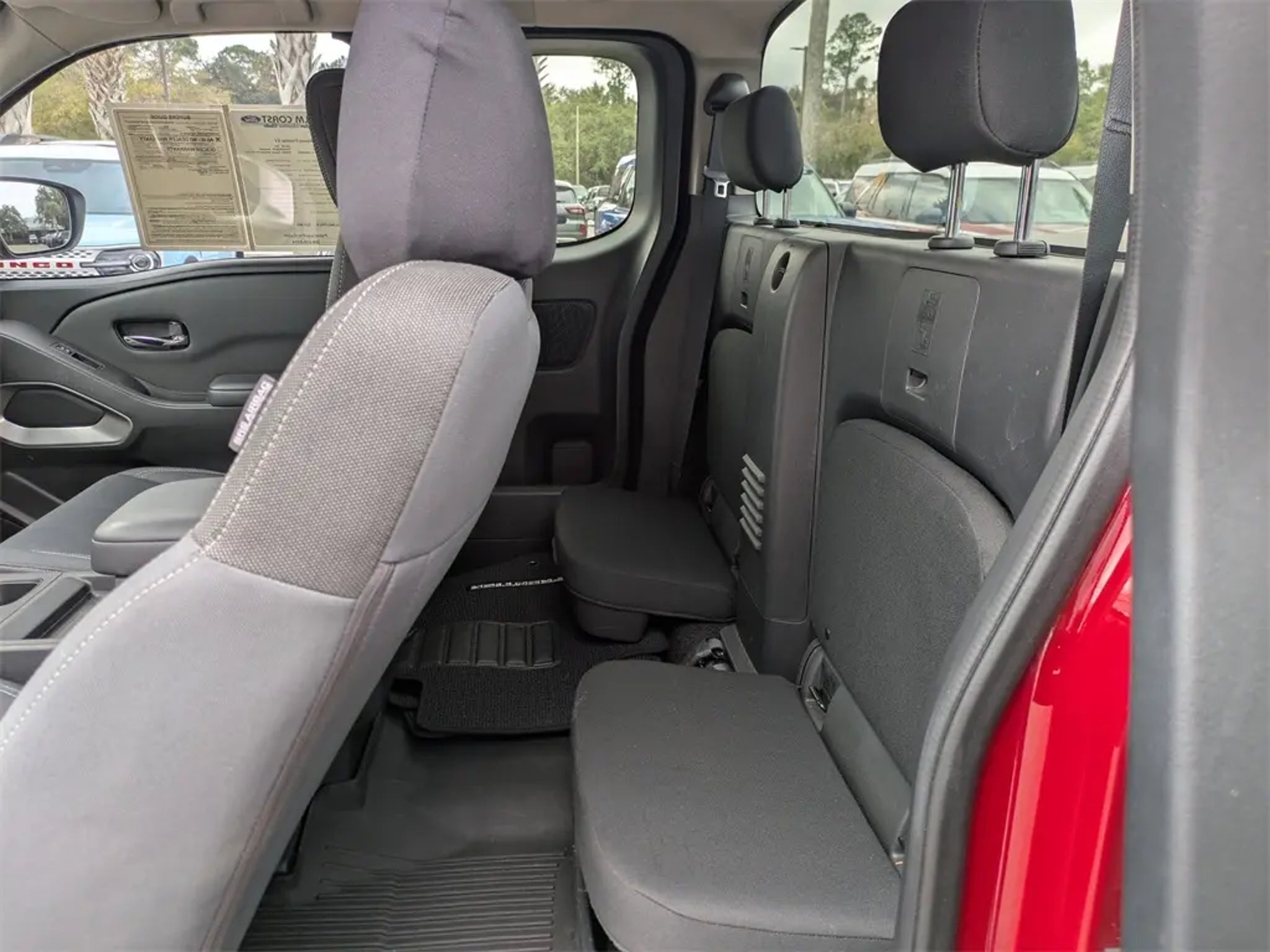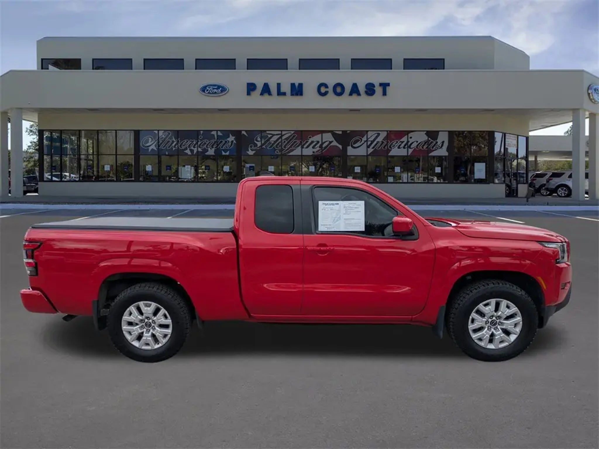 Recent Arrival! 2023 Nissan Frontier SV RWD 3.8L DI DOHC 24V V6 9-Speed Automatic Red Alert Clean CARFAX. Odometer is 16752 miles below market average! Equipped with Technology Package (Blind Spot Warning, High Beam Assist (HBA), Intelligent Cruise Control, Lane Departure Warning System, Rear Automatic Braking (RAB), Rear Cross Traffic Alert (RCTA), and Rear Sonar System), Tow Package, 17 Alloy Wheels, 3.692 Axle Ratio, 4-Wheel Disc Brakes, 6 Speakers, ABS brakes, Air Conditioning, Alloy wheels, AM/FM radio: SiriusXM, Anti-whiplash front head restraints, Apple CarPlay/Android Auto, Brake assist, Bumpers: body-color, Carpeted Floor Mats, Delay-off headlights, Driver door bin, Driver vanity mirror, Dual front impact airbags, Dual front side impact airbags, Electronic Stability Control, Front anti-roll bar, Front Bucket Seats, Front Center Armrest, Front reading lights, Front wheel independent suspension, Fully automatic headlights, Illuminated entry, Knee airbag, Low tire pressure warning, Occupant sensing airbag, Overhead airbag, Panic alarm, Passenger door bin, Passenger vanity mirror, Power door mirrors, Power driver seat, Power steering, Power windows, Premium Cloth Seat Trim, Radio data system, Radio: SXM/AM/FM/AUX/USB Audio System w/6 Speakers, Rear step bumper, Remote keyless entry, Security system, Speed control, Speed-sensing steering, Splash Guards, Split folding rear seat, Steering wheel mounted audio controls, Tachometer, Tilt steering wheel, Tow/Haul Mode Switch, Traction control, Trip computer, Variably intermittent wipers, and Voltmeter. Palm Coast Ford, We're Not That Far! Free deliveries within 200 miles. Call us today to experience the difference, (386) 447-3380.