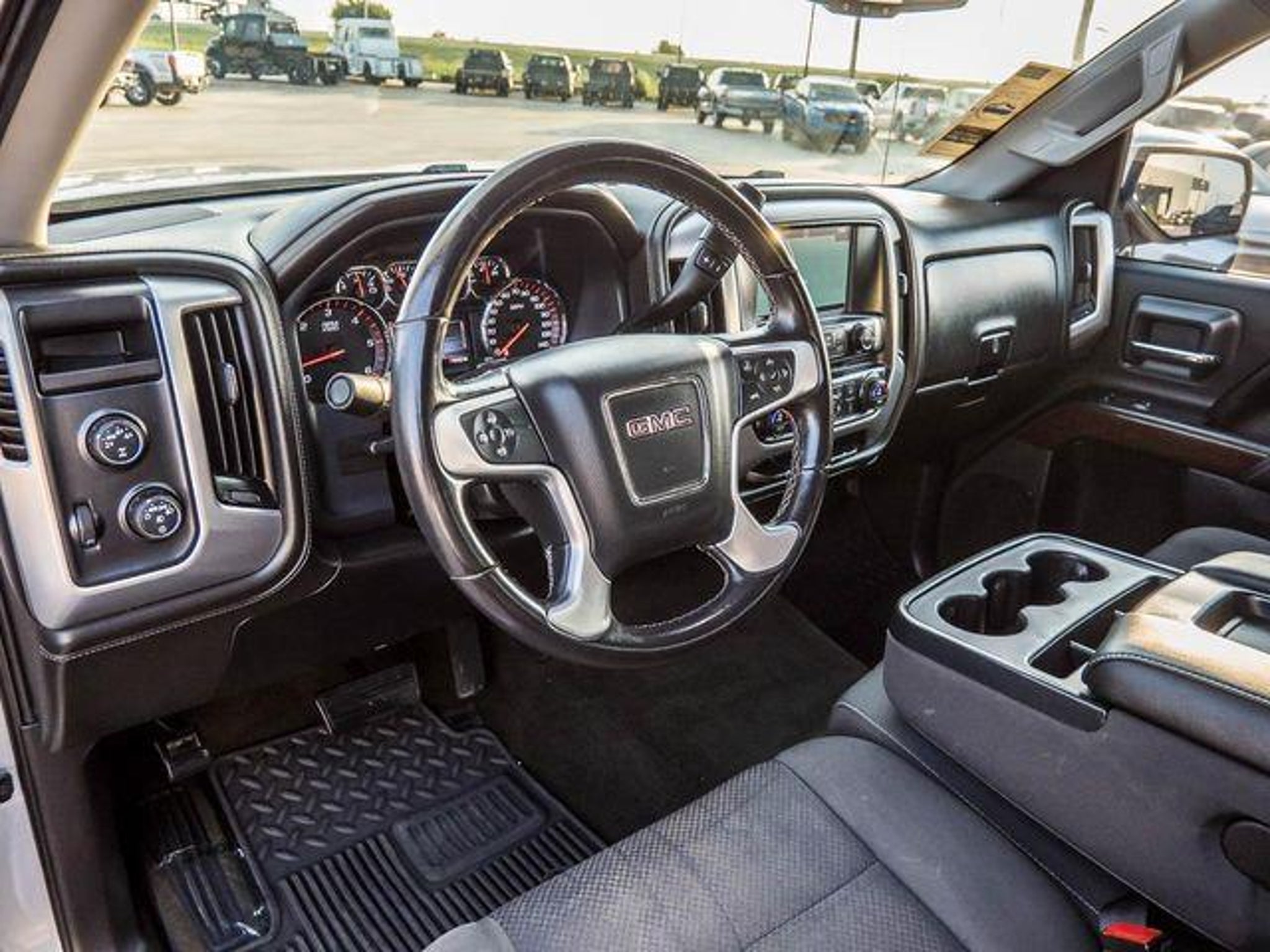 2016 Quicksilver Metallic GMC Sierra 1500 SLE 4D Crew Cab 4WD EcoTec3 5.3L V8 This GMC Sierra 1500 has many features and is well equipped including 405-338-4788, Safety Group, Backup Camera, Active Parking Assist, Navigation Capable, Automatic Headlights, Voice Recognition, Bluetooth Hands-Free, Premium Package, Preferred Equipment Group, Low Miles, Lifetime Window Tint Protection (Available), Ozone & CLO2 Treatment by Premier Auto Care, 6-Speed Automatic Electronic with Overdrive, 4WD, Jet Black w/Cloth Seat Trim. Clean CARFAX. 4WD 5.3L V8 6-Speed Automatic Electronic with Overdrive Oil Changes for Life at no cost to you! 405-338-4788. OKLAHOMAS #1 SELLING F-SERIES DEALER FOR 12 YRS RUNNING, COME EXPERIENCE THE DIFFERENCE!