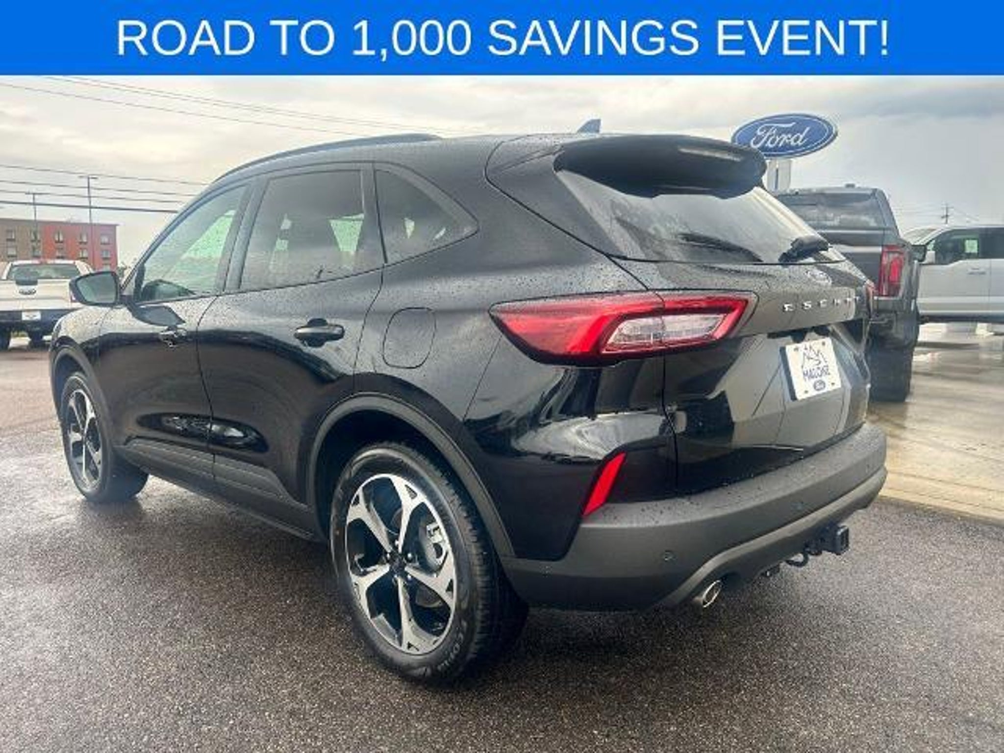 LEATHER, 4X4, BLUETOOTH HANDS FREE PHONE, BACK-UP CAMERA, NAVIGATION, APPLE CAR PLAY/ANDROID AUTO, GREAT LEASE PROGRAM!!!, AWD. CARFAX One-Owner. Clean CARFAX. 2025 Ford Escape ST-Line Select Black Metallic AWD 8-Speed Automatic EcoBoost 2.0L I4 GTDi DOHC Turbocharged VCT This vehicle features Class II Trailer Tow Package, Equipment Group 401A, Tech Pack #1 (Adaptive Cruise Control w/Stop-and-Go, Connected Navigation, Ford Co-Pilot360 Assist, Intersection Assist, Predictive Speed Assist, Rear Parking Sensor, Rear-View Camera, and SYNC 4 w/Enhanced Voice Recognition), AWD, 2.91 Axle Ratio, 4-Wheel Disc Brakes, 6 Speakers, ABS brakes, Air Conditioning, Alloy wheels, AM/FM radio: SiriusXM, AM/FM Stereo, Auto High-beam Headlights, Automatic temperature control, Brake assist, Bumpers: body-color, Compass, Delay-off headlights, Driver door bin, Driver vanity mirror, Dual front impact airbags, Dual front side impact airbags, Electronic Fuel Door Release, Electronic Stability Control, Emergency communication system: SYNC 4 911 Assist, FordPass Connect, Four wheel independent suspension, Front anti-roll bar, Front Bucket Seats, Front Center Armrest, Front dual zone A/C, Front fog lights, Front License Plate Bracket, Front reading lights, Fully automatic headlights, Heated door mirrors, Heated front seats, Heated steering wheel, Heated Vinyl/Cloth Front Sport Contour Bucket Seats, Illuminated entry, Knee airbag, Low tire pressure warning, Neutral Towing Capability, Occupant sensing airbag, Outside temperature display, Overhead airbag, Overhead console, Panic alarm, Passenger door bin, Passenger vanity mirror, Pedestrian Alert Sounder, Power door mirrors, Power driver seat, Power Liftgate, Power steering, Power windows, Radio data system, Rear anti-roll bar, Rear reading lights, Rear seat center armrest, Rear window defroster, Rear window wiper, Remote keyless entry, Speed control, Speed-sensing steering, Speed-Sensitive Wipers, Split folding rear seat, Spoiler, Sport steering wheel, Steering wheel mounted audio controls, SYNC 4, Tachometer, Telescoping steering wheel, Tilt steering wheel, Traction control, Trip computer, Variably intermittent wipers, Wheels: 18 Rock Metallic Painted Aluminum, and Wheels: 19 Machined-Face Ebony-Painted Aluminum. Odometer is 12016 miles below market average! 23/31 City/Highway MPG