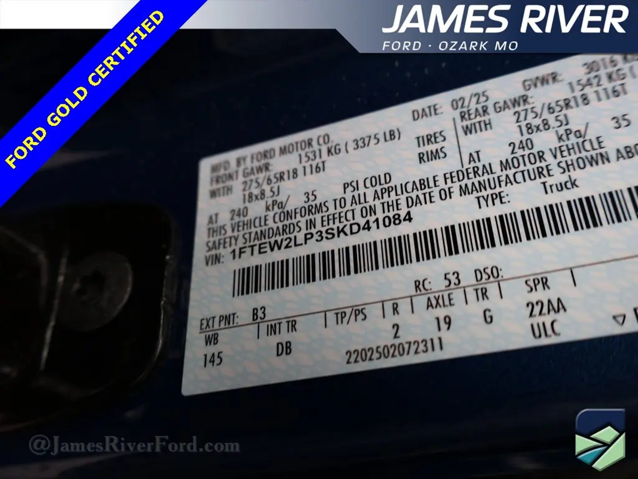 @JamesRiverFORD our local, family-owned dealership is focused on making your online experience the best yet! Located in Majestic Ozark Missouri just off HWY 65 and HWY 14, this 2025 Ford F-150 STX is a Clean CARFAX, painted in Blue Metallic and is powered by a 4WD 10-Speed Automatic 2.7L V6 EcoBoost! This F150 is built with the following packages: Equipment Group 200B Standard GVWR: 6,650 lbs Payload Package In addition, below are upgrades and added options: 3.55 Axle Ratio Extended Range 36-GAL Fuel Tank Front Bucket Seats Front Center Armrest Split folding rear seat Radio: AM/FM Stereo w/SiriusXM 360L Climate Control Air Conditioning Rear window defroster Other premium features include 4WD, ABS brakes, Alloy wheels, Compass, Electronic Stability Control, Equipment Group 200B Standard, GVWR: 6,650 lbs Payload Package, Heated door mirrors, Illuminated entry, Low tire pressure warning, Remote keyless entry, Traction control. At James River Ford, we believe buying a car should be as fun and exciting as driving one! No stress, no boring sales talk"”just great vehicles, great deals, and a team that actually cares. Whether you're looking for a rugged F-150, a head-turning Mustang, or an SUV with room for the whole crew, we've got a huge selection of quality new and pre-owned vehicles"”all priced to move faster than a Mustang on the open road. We proudly serve Ozark, Springfield, Nixa, Branson, Republic, Rogersville, Battlefield, Marshfield, Willard, Strafford, Bolivar, Aurora, Hollister, Clever, Highlandville, Forsyth, and beyond"”bringing big-city deals with small-town service to Southwest Missouri. Why Shop with Us? Huge Inventory "“ From F-150s to Mustangs to the adventure-ready Bronco, we have the Ford you want"”or we'll track it down like a hound on a scent! ðŸ�¶ðŸš— Competitive Pricing "“ No gimmicks, no games"”just real deals on real cars. 💰💨 Top Trade-In Values "“ We'll give you top dollar for your trade"”because your ride deserves some respect! 🚗💵 Flexible Financing "“ Good credit, bad credit, no credit? No problem. Our finance team can work some serious magic. 🎩 Customer-First Service "“ We treat you like family"”the kind you actually like spending time with. ðŸ�¡ðŸš˜ Videos Available on Request! "“ Want a closer look? We'll send a personalized video of any vehicle right to your phone"”like a car commercial made just for you! 🎥📱 No pressure, no hassle"”just great cars, great deals, and a team that's here to make your car-buying experience actually enjoyable. Check out our inventory today and see why people from all over Southwest Missouri trust James River Ford! 🚗💨.
