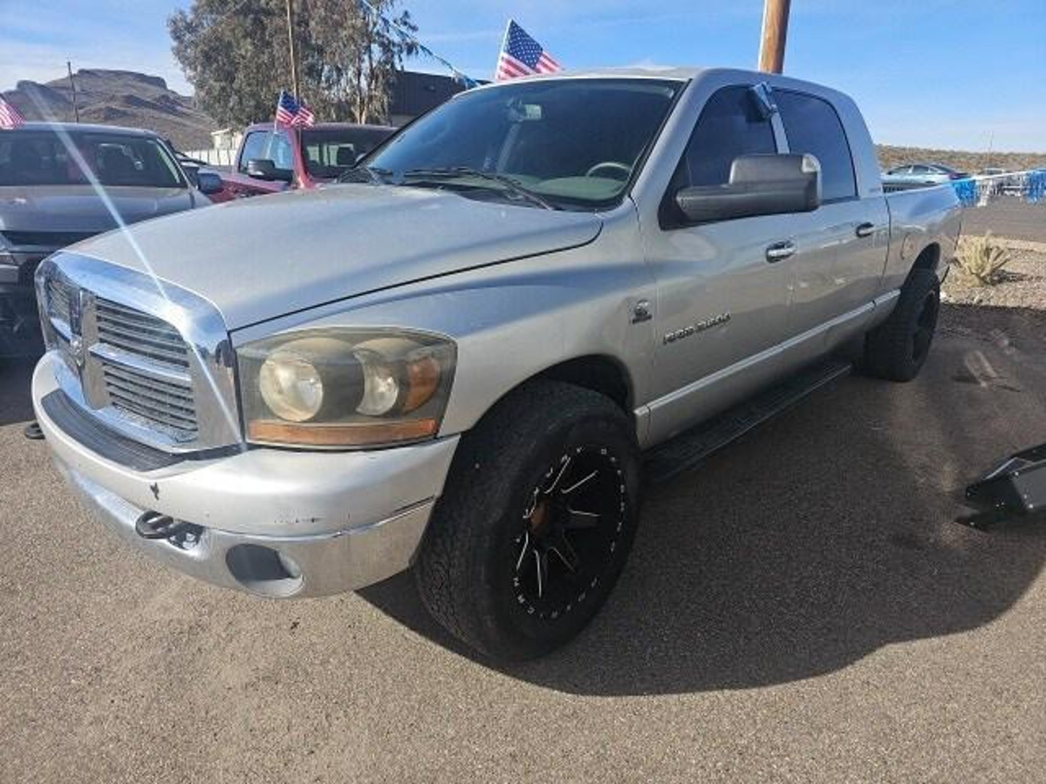 Cummins 600 5.9L I6 DI 24V High-Output Turbodiesel. Cummins 600 5.9L I6 DI 24V High-Output Turbodiesel Priced below KBB Fair Purchase Price! Bright Silver Metallic Clearcoat 2006 Dodge Ram 2500 SLT RWD At High Desert Hyundai, we pride ourselves on offering a stellar automotive experience for drivers in Kingman, Henderson NV, and Prescott AZ. Our dedicated team of sales advisors, service technicians, and financing experts are here to address all your needs with the utmost respect, care, and attention to detail. Whether you're interested in the sleek Hyundai Santa Fe Sport, the stylish Sonata, the efficient Elantra, the versatile Tucson, or the compact Accent, our knowledgeable team will guide you through all the features and benefits of each model. If you're in the market for a reliable used car, our team is ready to help you explore our extensive inventory of pre-owned vehicles. Each car undergoes a thorough inspection to ensure it meets our high standards of quality and reliability. Our auto finance team is here to provide personalized solutions that fit your individual needs. Whether you're looking to lease a new Hyundai or finance a pre-owned vehicle, we offer a range of options to make the process stress-free. Start with our online appraisal form and credit application to get a head start. Our commitment to excellence doesn't end with the sale. Our onsite auto service and repair department is staffed with skilled technicians who use cutting-edge tools and technologies to keep your vehicle running smoothly. For those who prefer to perform their own maintenance, we offer a vast collection of authentic Hyundai parts and accessories. High Desert Hyundai has all your automotive needs covered. Whether you're stopping by for a test drive or need an oil change, our team is ready to assist you. Visit us at 4180 N Stockton Hill Rd, Kingman, Arizona, or contact us today to learn more about our services and inventory. This 2006 Dodge Ram 2500 is equipped with the following options: Light Group (Ash Tray Lamp, Auto-Dimming Rear-View Mirror, Front Dome Lamp w/On/Off Switch, Glove Box Lamp, Sun Visors w/Illuminated Vanity Mirrors, and Underhood Lamp), Quick Order Package 2UG SLT, Cummins 600 5.9L I6 DI 24V High-Output Turbodiesel, 17 x 8 Chrome Clad Steel Wheels, 3.73 Axle Ratio, 4 Speakers, 4-Wheel Disc Brakes, 750 Amp Maintenance Free Battery, ABS brakes, Air Conditioning, AM/FM Compact Disc w/Changer Control, AM/FM radio, Bumpers: chrome, CD player, Cloth 40/20/40 Bench Seat, Compass, Delay-off headlights, Driver door bin, Dual front impact airbags, Electronically Controlled Throttle, Fog Lamps, Front anti-roll bar, Front Center Armrest, Front Center Seat Cushion Storage, Front reading lights, Front wheel independent suspension, Heated door mirrors, Illuminated entry, Leather Wrapped Steering Wheel, Mini Floor Console, Outside temperature display, Overhead console, Panic alarm, Passenger door bin, Passenger vanity mirror, Power Adjustable Pedals, Power door mirrors, Power Fold-Away Trailer Tow Mirrors, Power steering, Power windows, Rear 60/40 Split Folding Seat, Rear Power Sliding Window, Rear reading lights, Rear seat center armrest, Rear step bumper, Remote keyless entry, Security Alarm, SIRIUS Satellite Radio, Speed control, Speed-Sensitive Wipers, Split folding rear seat, Tachometer, Tilt steering wheel, Tow Hooks, Trip computer, Under Rail Box Bedliner, Variably intermittent wipers, and Voltmeter.