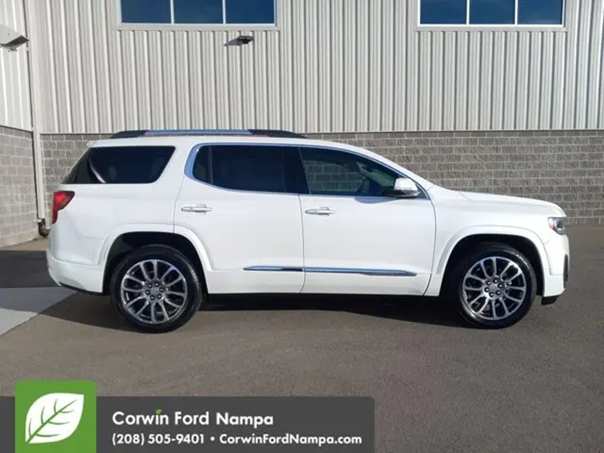 Our luxurious Accident Free 2021 GMC Acadia Denali AWD with the Technology Package is engineered for excellence in White Frost Tricoat! Powered by a 3.6 Liter V6 that offers 310hp connected to a 9 Speed Automatic transmission for strength and capability. Enjoy responsive handling in our fantastic All Wheel Drive SUV that sees nearly 26mpg on the highway with a Professional Grade road presence you can't ignore. Sleek and contemporary, our Acadia exudes sophisticated style with LED lighting, fog lamps, bright roof rails, alloy wheels, a hands-free tailgate, a sunroof, and exclusive details led by a signature Denali grille. Inside our Denali, you're indulged by leather heated/ventilated front and heated second-row seats, a power leather heated steering wheel, plus eight-way power for the driver and upscale amenities like tri-zone automatic climate control. Intuitive technologies are on board as well, starting with an 8-inch touchscreen, a head-up display, full-color navigation, WiFi compatibility, wireless Android Auto®/Apple CarPlay®, Bluetooth®, and a Bose sound system. Drive with confidence knowing GMC's Technology Package helps keep you out of harm's way with adaptive cruise control, enhanced automatic braking, a digital rearview mirror, an HD surround-view camera system, and more. You demand just what our Acadia Denali delivers! Save this Page and Call for Availability. We Know You Will Enjoy Your Test Drive Towards Ownership! Corwin Ford Nampa! Friendly service and aggressive pricing is why we are your new and pre-owned vehicle dealer serving, Nampa, Boise, Meridian, Caldwell, Kuna, Eagle, Emmett, Idaho City, Wilder, New Plymouth, Star, Middleton, Weiser, Payette, Horseshoe Bend, Mountain Home, Idaho, and surrounding states.