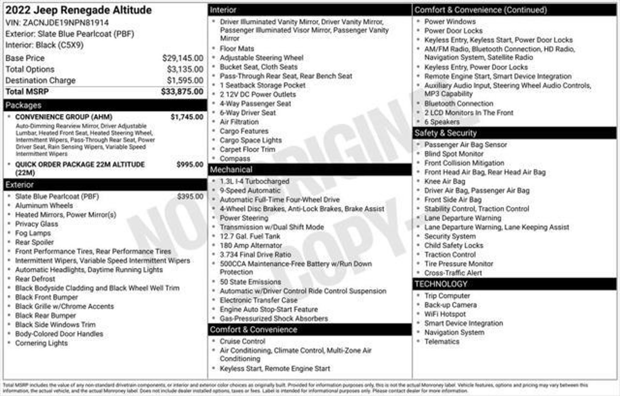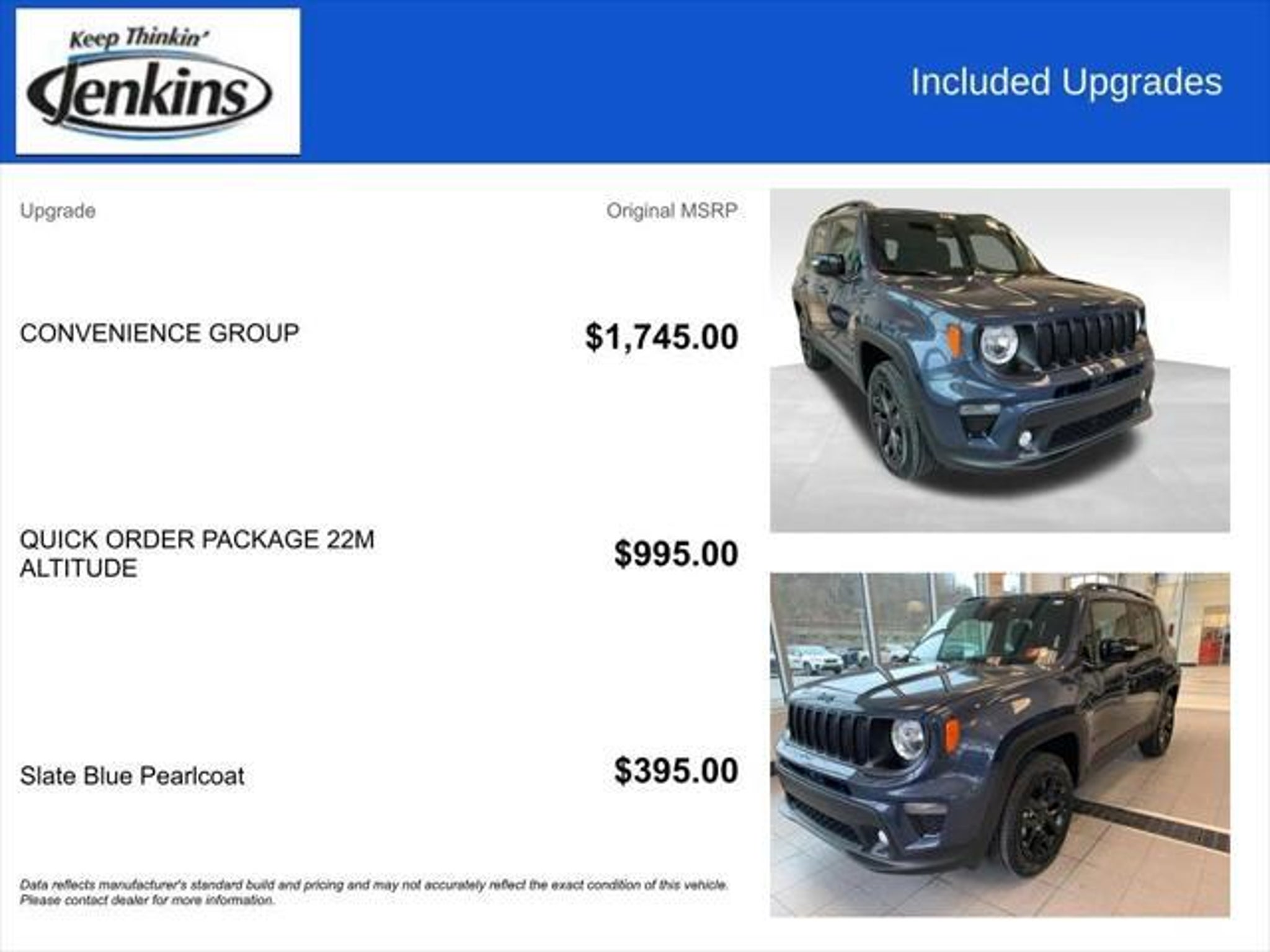 Priced below KBB Fair Purchase Price! ONE OWNER ACCIDENT FREE **4 New Tires** Renegade Altitude Slate Blue Pearlcoat Black w/Cloth Low-Back Bucket Seats 115V Auxiliary Power Outlet 40/20/40 Rear Seat w/Trunk Pass-Thru Altitude Package Apple CarPlay/Android Auto Auto-Dimming Rear-View Mirror Automatic temperature control Black Accent Stitching Black Headliner Convenience Group Deluxe Cloth High-Back Bucket Seats Front dual zone A/C Gloss Black Exterior Accents Gloss Black Steering Wheel Bezel Heated Front Seats Heated Steering Wheel Navigation System ParkView Rear Back-Up Camera Power 2-Way Driver Lumbar Adjust Power Adjust 8-Way Driver Seat Quick Order Package 22M Altitude Radio: Uconnect 4C Nav w/8.4 Display Rain Sensitive Windshield Wipers Wheels: 18 x 8.0 Gloss Black Windshield Wiper De-Icer. 2022 Jeep Renegade Altitude Slate Blue Pearlcoat 4WD 9-Speed 948TE Automatic 1.3L I4 Recent Arrival! Odometer is 17467 miles below market average! 23/29 City/Highway MPG