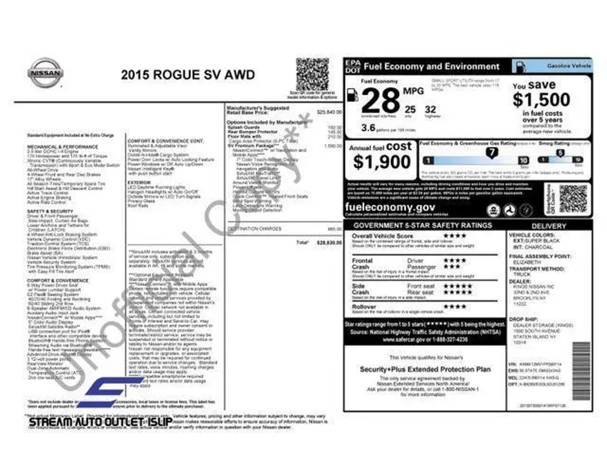 2015 Nissan Rogue Super Black * NYS INSPECTION INCLUDED *, * FULL INTERIOR / EXTERIOR DETAIL *, * BLUETOOTH *, * LIMITED NYS LEMON LAW WARRANTY INCLUDED *, *FRESH OIL CHANGE *, * 150 MULTI POINT INSPECTION *, AWD. Odometer is 4320 miles below market average! 25/32 City/Highway MPG Welcome to Stream Auto Outlet Islip"”where everyone drives. With 400 vehicles available and financing options for all credit types, we make approvals simple for customers with ITINs, new credit, bad credit, or no SSN. Our team is known for getting deals done and helping drivers across Long Island get into reliable, high-quality vehicles every day. No stress. No judgment. Just straightforward car buying. Awards: * 2015 KBB.com 10 Best Used Compact SUVs Under $15,000