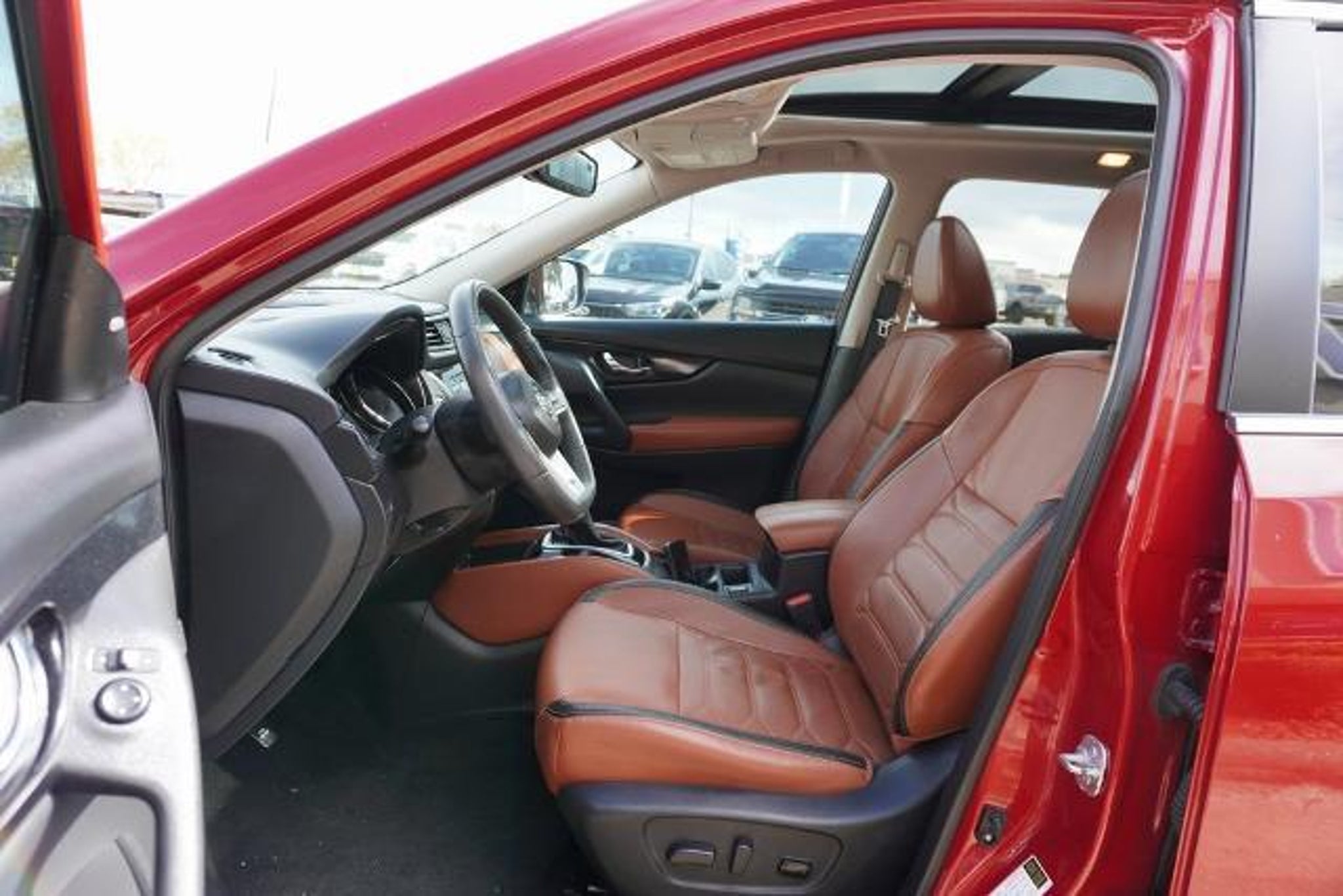 This 2017 Nissan Rogue SL in Palatial Ruby includes the following features: 2.5L I4 DOHC 16V CVT with Xtronic AWD SL Platinum Reserve Interior Package, AWD, 18 Alloy Wheels, 4-Wheel Disc Brakes, 5.694 Axle Ratio, 9 Speakers, ABS brakes, Air Conditioning, Alloy wheels, AM/FM radio: SiriusXM, Anti-whiplash front head restraints, Auto High-beam Headlights, Auto-dimming Rear-View mirror, Automatic temperature control, Black Splash Guards (Set of 4), Blind Spot Warning, Brake assist, Bumpers: body-color, CD player, Chrome Rear Bumper Protector, Delay-off headlights, Driver door bin, Driver vanity mirror, Dual front impact airbags, Dual front side impact airbags, Electronic Stability Control, Emergency communication system: NissanConnect Services, Floor Mats & 2-PC Cargo Area Protector, Four wheel independent suspension, Front anti-roll bar, Front Bucket Seats, Front Center Armrest w/Storage, Front dual zone A/C, Front fog lights, Front reading lights, Fully automatic headlights, Garage door transmitter: HomeLink, Heated door mirrors, Heated front seats, Heated steering wheel, Illuminated entry, Illuminated Kick Plates, Leather Appointed Seat Trim, Leather Shift Knob, Low tire pressure warning, Memory seat, Navigation System, Occupant sensing airbag, Outside temperature display, Overhead airbag, Overhead console, Panic alarm, Passenger door bin, Passenger vanity mirror, Power door mirrors, Power driver seat, Power Liftgate, Power steering, Power windows, Quick Comfort Heated Front Bucket Seats, Radio data system, Rear anti-roll bar, Rear seat center armrest, Rear window defroster, Rear window wiper, Remote keyless entry, Roof rack: rails only, Security system, Speed control, Speed-sensing steering, Split folding rear seat, Spoiler, Steering wheel mounted audio controls, Tachometer, Telescoping steering wheel, Tilt steering wheel, Traction control, Trip computer, Turn signal indicator mirrors, and Variably intermittent wipers. Palatial Ruby 2017 Nissan Rogue SL AWD CVT with Xtronic 2.5L I4 DOHC 16V AWD. Recent Arrival! Odometer is 34511 miles below market average! 25/32 City/Highway MPG Awards: * 2017 KBB.com 10 Best SUVs Under $25,000 At Mac Haik Ford Pasadena, we believe in customer satisfaction and try to make it our mission that each and every shopper is happy with our service. Drivers in Pasadena and all of Houston's surrounding areas have made the drive to Mac Haik Ford Pasadena again and again. Visit us now and experience our top-class customer service yourself!