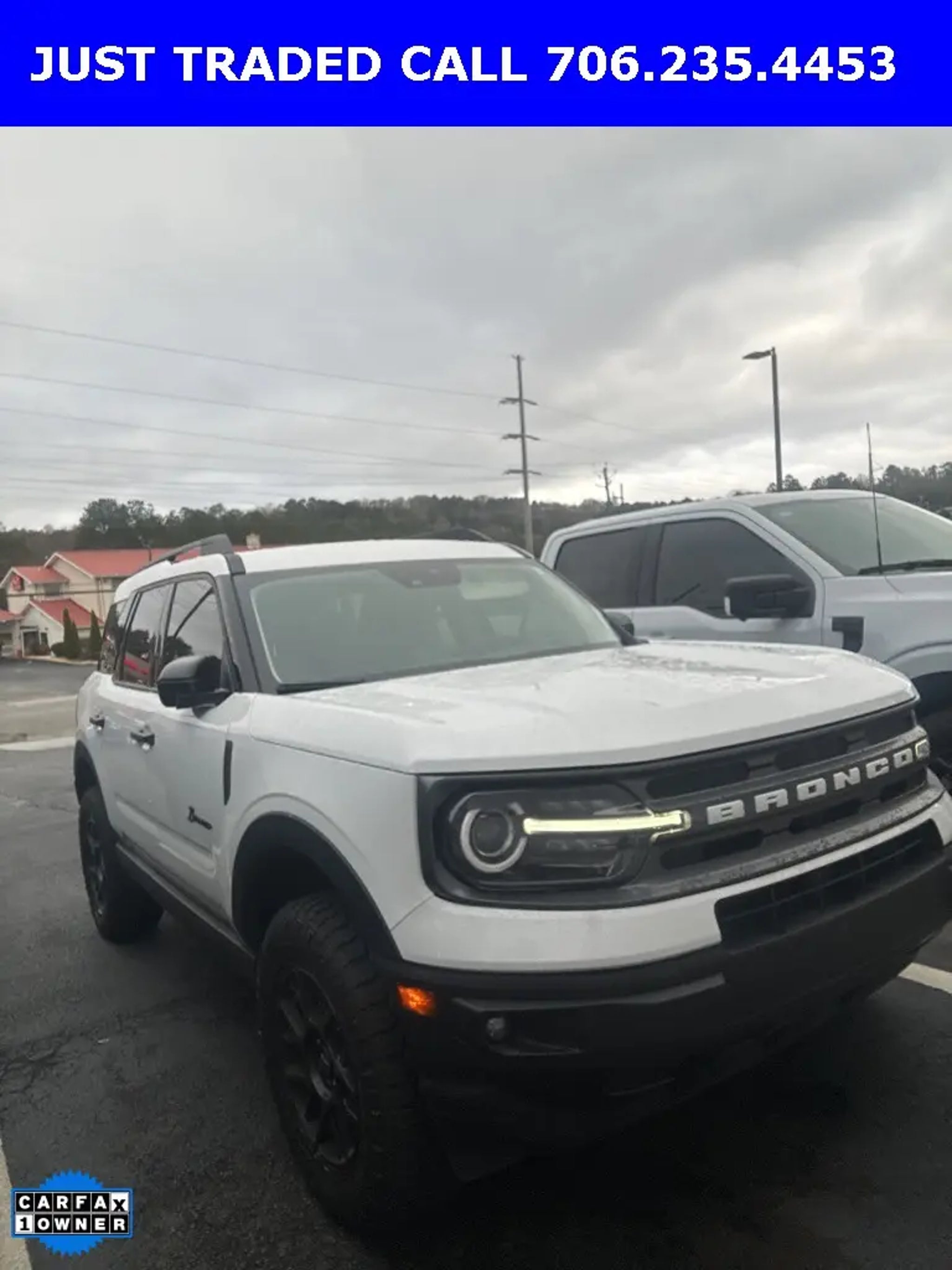Courtesy Ford and Lincoln of Rome 101 Hwy 411 E Rome, Ga 3016 . Recent Arrival! CARFAX One-Owner. 25/29 City/Highway MPG Odometer is 13774 miles below market average! Oxford White 2024 Ford Bronco Sport Big Bend 4WD 4WD Big Bend 4WD **LOCAL TRADE**, 8 Color Touchscreen, Auto LED Headlights, Backup Camera, LED Foglights, Parking Sensors, Power Mirror Package, Power Package, Reverse Brake Assist, Reverse Sensing, Wireless Charging Pad, 4D Sport Utility, 1.5L EcoBoost, 8-Speed Automatic, 4WD, 4-Wheel Disc Brakes, ABS brakes, AM/FM radio: SiriusXM, Auto High-beam Headlights, Automatic temperature control, Brake assist, Compass, Convenience Package, Delay-off headlights, Electronic Stability Control, Emergency communication system: SYNC 3 911 Assist, Equipment Group 200A, Four wheel independent suspension, Front Center Armrest, Front Driver/Passenger Seat Back Map Pockets, Fully automatic headlights, Heated door mirrors, Heated Front Bucket Seats, Illuminated entry, LED Fog Lamps, Low tire pressure warning, Outside temperature display, Overhead console, Panic alarm, Power door mirrors, Power steering, Power windows, Premium Wrapped Steering Wheel, Radio data system, Rear Parking Sensors, Rear seat center armrest, Rear window wiper, Remote keyless entry, Security system, SiriusXM, Speed control, Speed-sensing steering, Speed-Sensitive Wipers, Split folding rear seat, Steering wheel mounted audio controls, SYNC 3 Communications & Entertainment System, Telescoping steering wheel, Tilt steering wheel, Traction control, Trip computer, Universal Garage Door Opener (UGDO), Wheels: 17 Carbonized Gray-Painted Aluminum, Wireless Charging Pad. Certified. Ford Blue Certified Details: * Warranty Deductible: $100 * Transferable Warranty * Vehicle History * Roadside Assistance * Limited Warranty: 3 Month/4,000 Mile (whichever comes first) after new car warranty expires or from certified purchase date * and 11,000 FordPass Rewards Points to use toward first maintenance visit * 139 Point Inspection **NOT ALL PRE-OWNED CAR/TRUCKS COME WITH 2 KEYS**