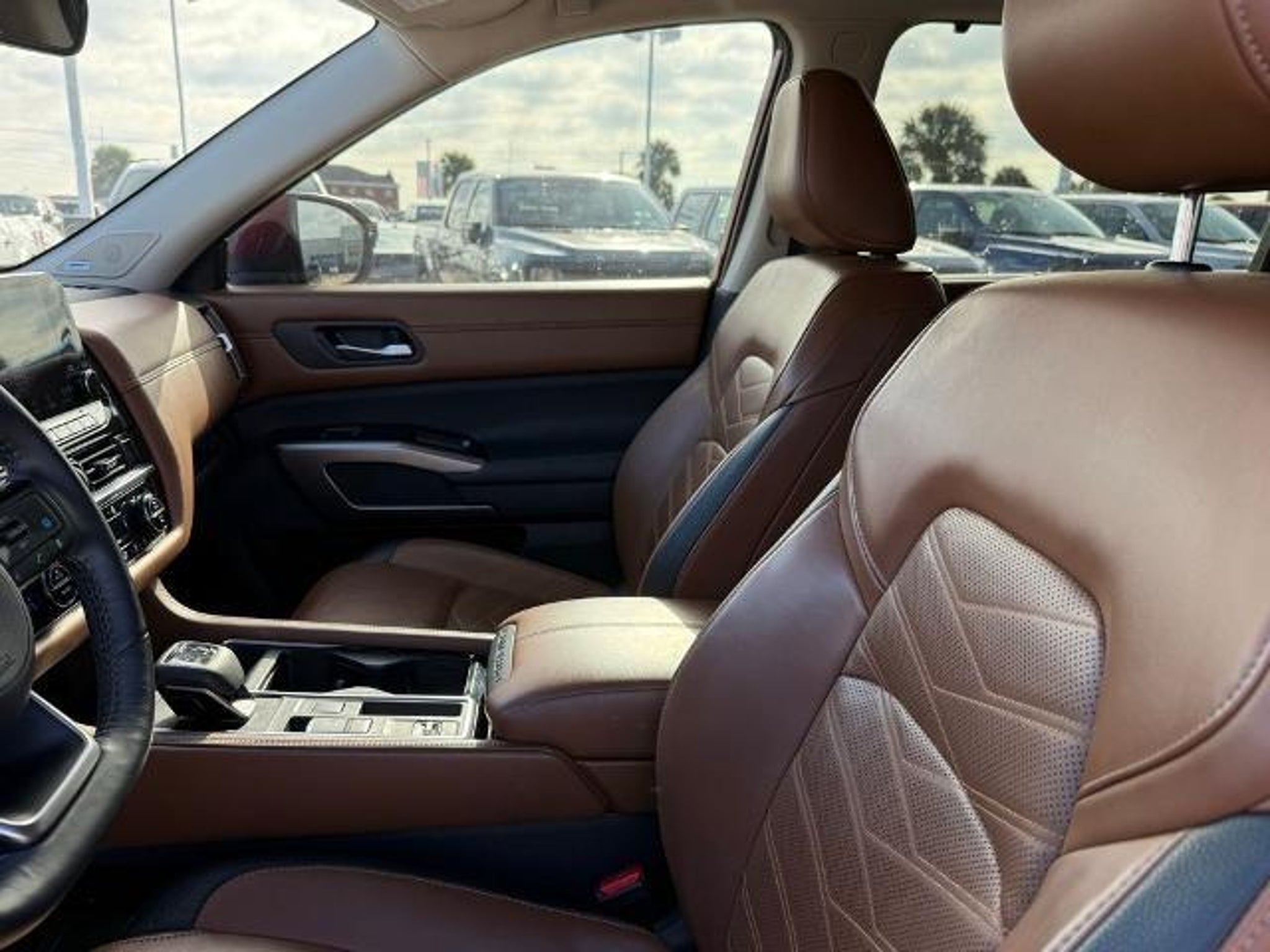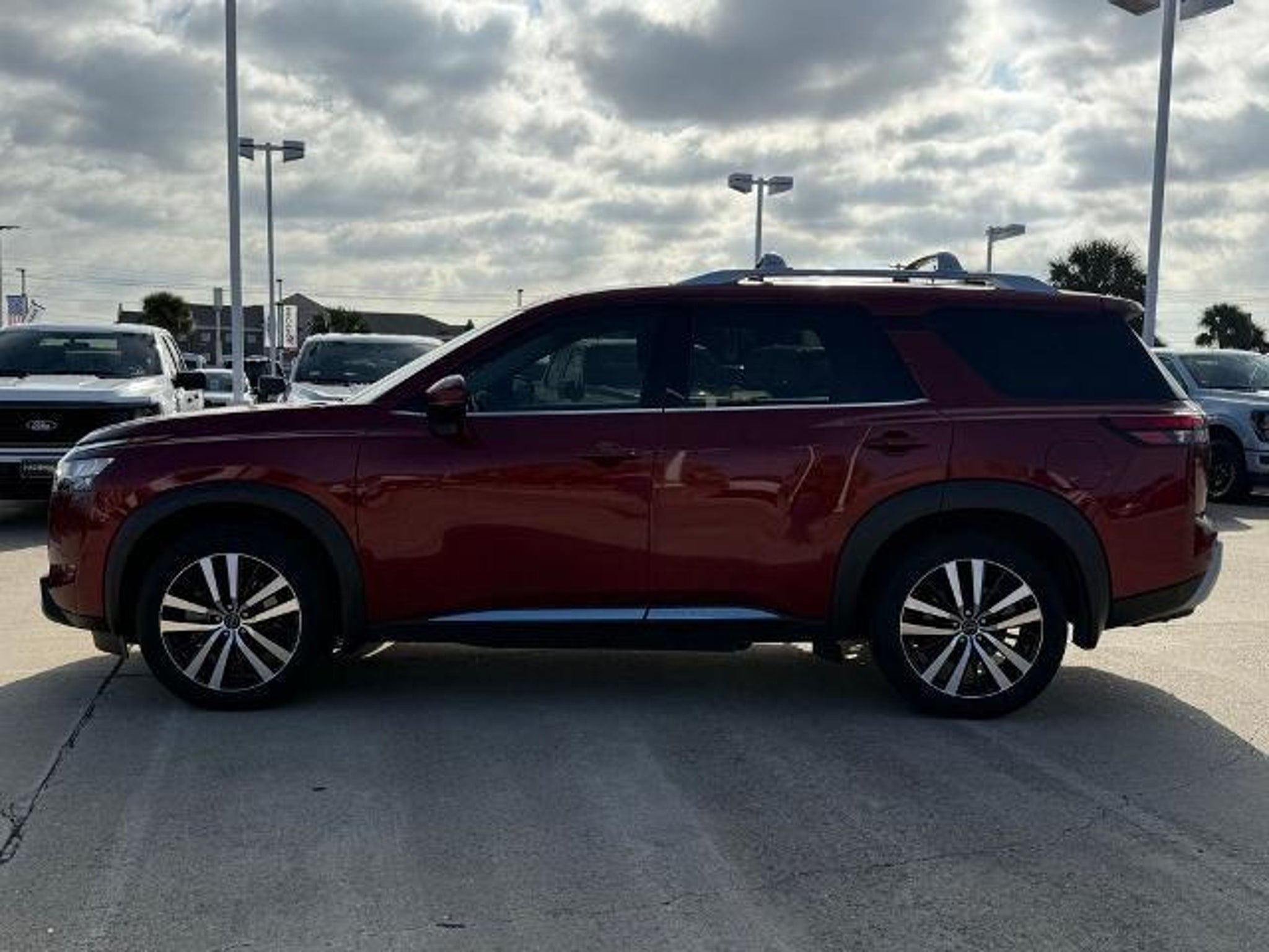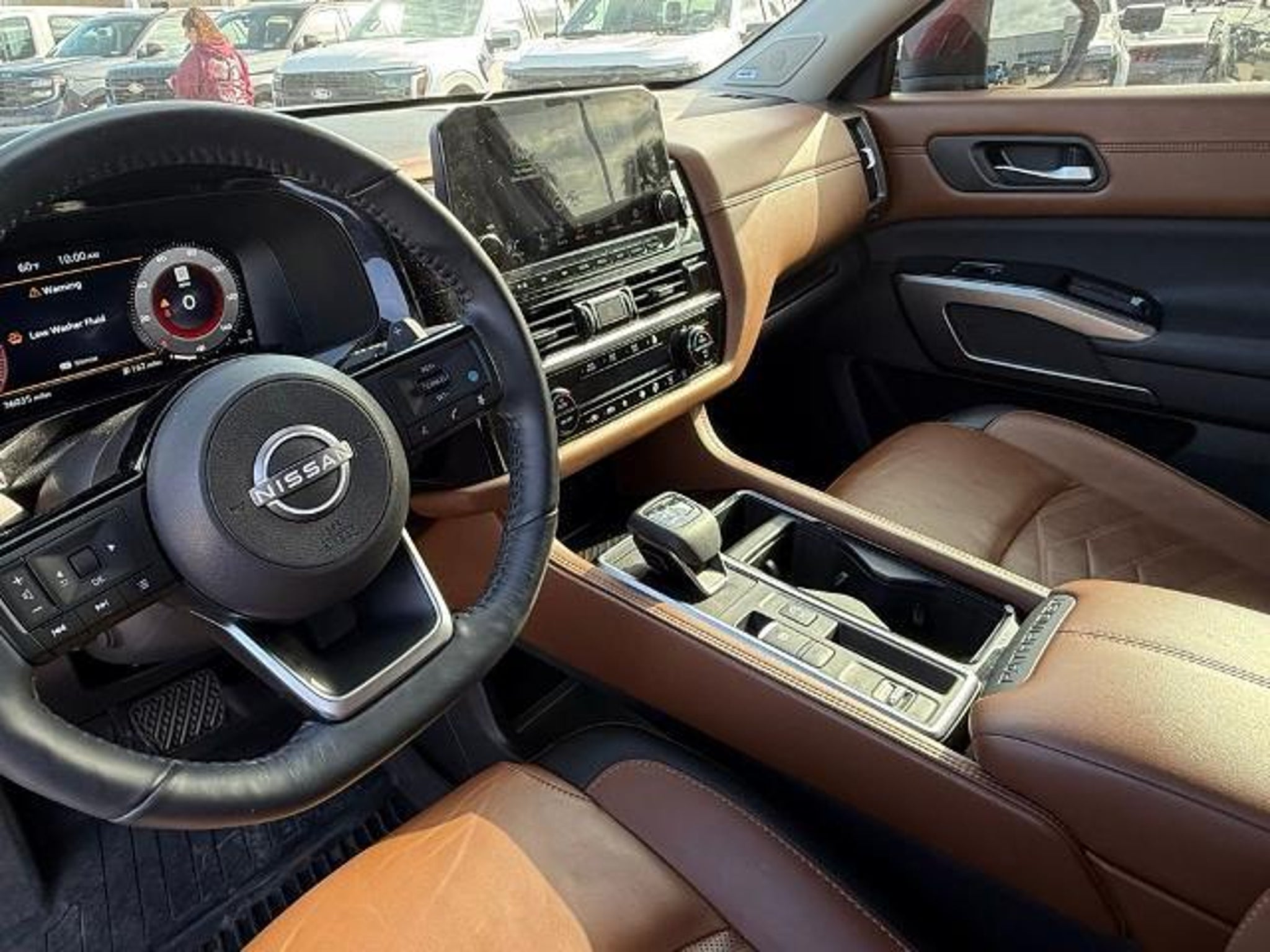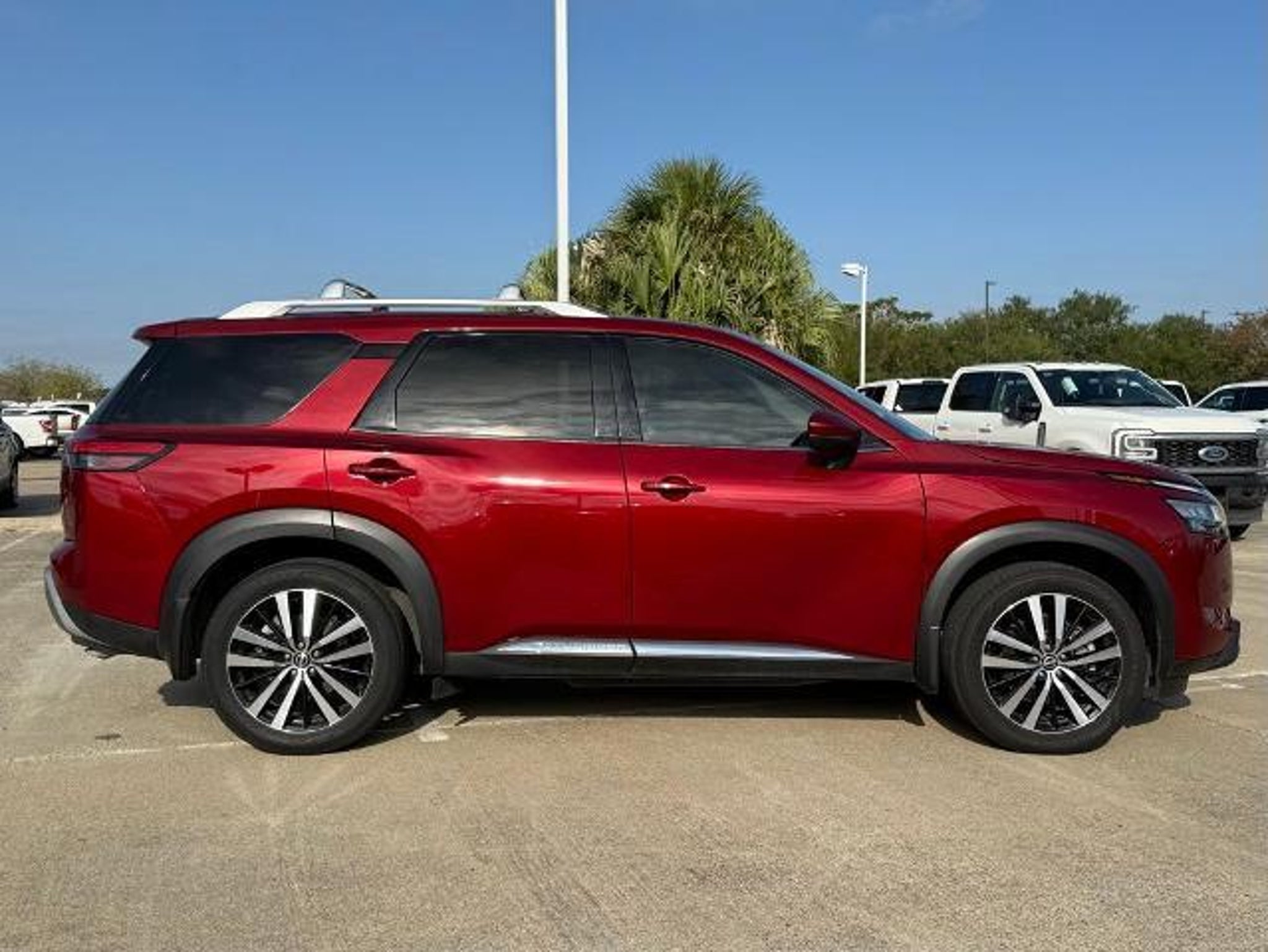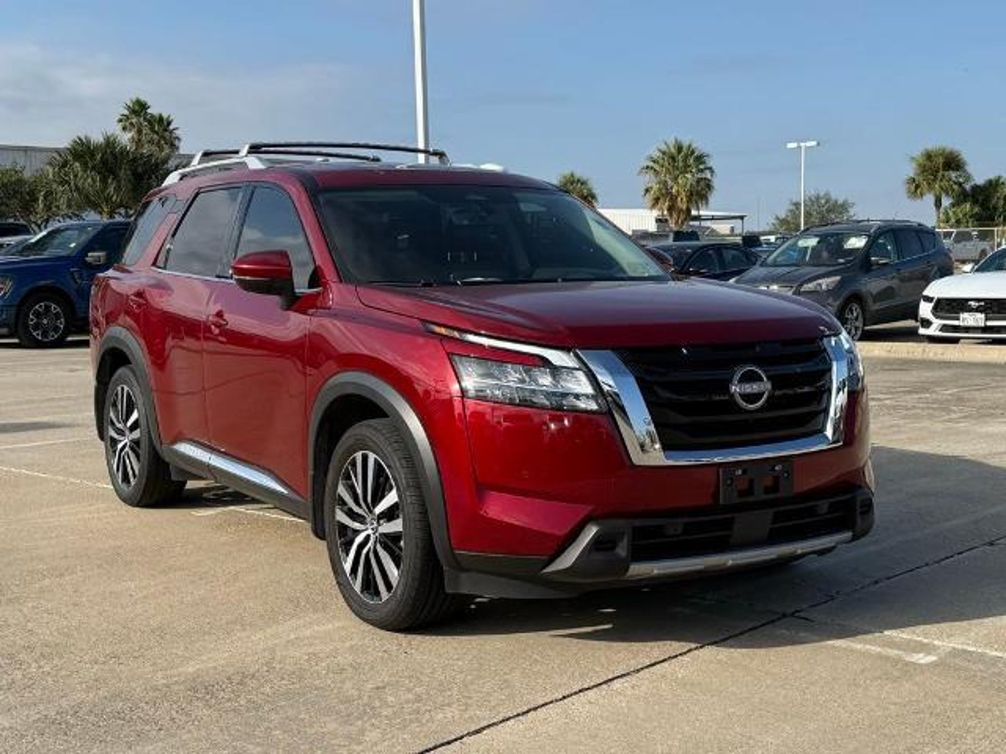 Scarlet Ember 2024 Nissan Pathfinder Platinum FWD 9-Speed Automatic 3.5L V6 DOHC This vehicle comes equipped with the following features and options: Cargo Package (Cargo Area Protector, Cargo Net, and First Aid Kit), Platinum Captain Chairs Package (2nd-Row Captain Chairs and 2nd-Row Rear Headrest), 13 Speakers, 3rd row seats: bench, 4-Wheel Disc Brakes, ABS brakes, Air Conditioning, Alloy wheels, AM/FM radio: SiriusXM, Auto High-beam Headlights, Auto tilt-away steering wheel, Auto-dimming Rear-View mirror, Automatic temperature control, Axle Ratio: 4.334, Black Splash Guards (Set of 4), Bodyside moldings, Bose Premium Audio System, Brake assist, Bumpers: body-color, Captain's Chairs Carpeted Floor Mats (Set of 4), Cross Bars, Delay-off headlights, Driver door bin, Driver vanity mirror, Dual front impact airbags, Dual front side impact airbags, Electronic Stability Control, Emergency communication system, Exterior Parking Camera Rear, Four wheel independent suspension, Front anti-roll bar, Front Bucket Seats, Front Center Armrest, Front dual zone A/C, Front reading lights, Fully automatic headlights, Garage door transmitter: HomeLink, Heads-Up Display, Heated & Cooled Front Bucket Seats, Heated door mirrors, Heated front seats, Heated rear seats, Heated steering wheel, Illuminated entry, Knee airbag, Leather steering wheel, Low tire pressure warning, Memory seat, Navigation system: NissanConnect with Navigation and Services, NissanConnect featuring Apple CarPlay and Android Auto, NissanConnect w/Navigation & Services, Occupant sensing airbag, Outside temperature display, Overhead airbag, Overhead console, Panic alarm, Passenger door bin, Passenger vanity mirror, Power door mirrors, Power driver seat, Power Liftgate, Power moonroof, Power passenger seat, Power steering, Power windows, Radio data system, Radio: AM/FM Audio System, Rain sensing wipers, Rear air conditioning, Rear anti-roll bar, Rear reading lights, Rear seat center armrest, Rear side impact airbag, Rear window defroster, Rear window wiper, Reclining 3rd row seat, Remote keyless entry, Security system, Semi-Aniline Leather-Appointed Seating Surfaces, Speed control, Speed-sensing steering, Speed-Sensitive Wipers, Split folding rear seat, Spoiler, Steering wheel memory, Steering wheel mounted audio controls, Tachometer, Telescoping steering wheel, Tilt steering wheel, Traction control, Trip computer, Turn signal indicator mirrors, Variably intermittent wipers, Ventilated front seats, and Wheels: 20 x 8J Machined Alloy. Recent Arrival! 20/27 C