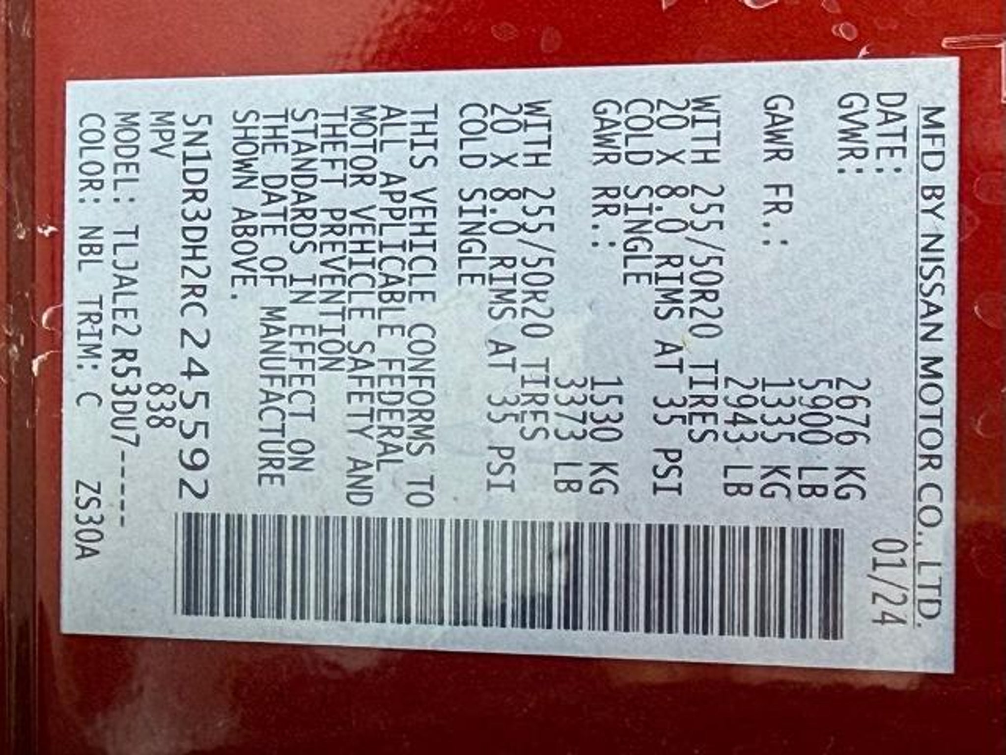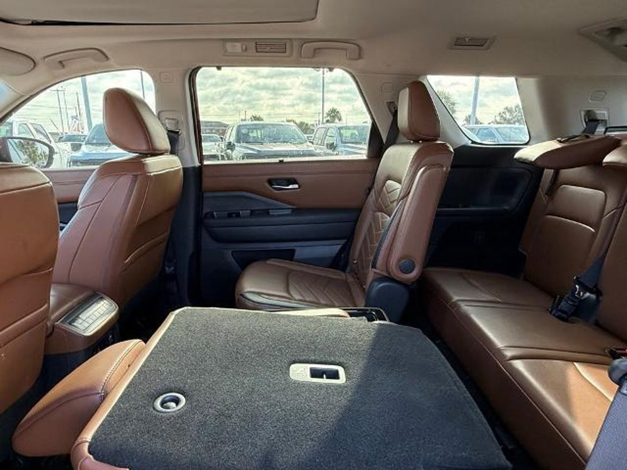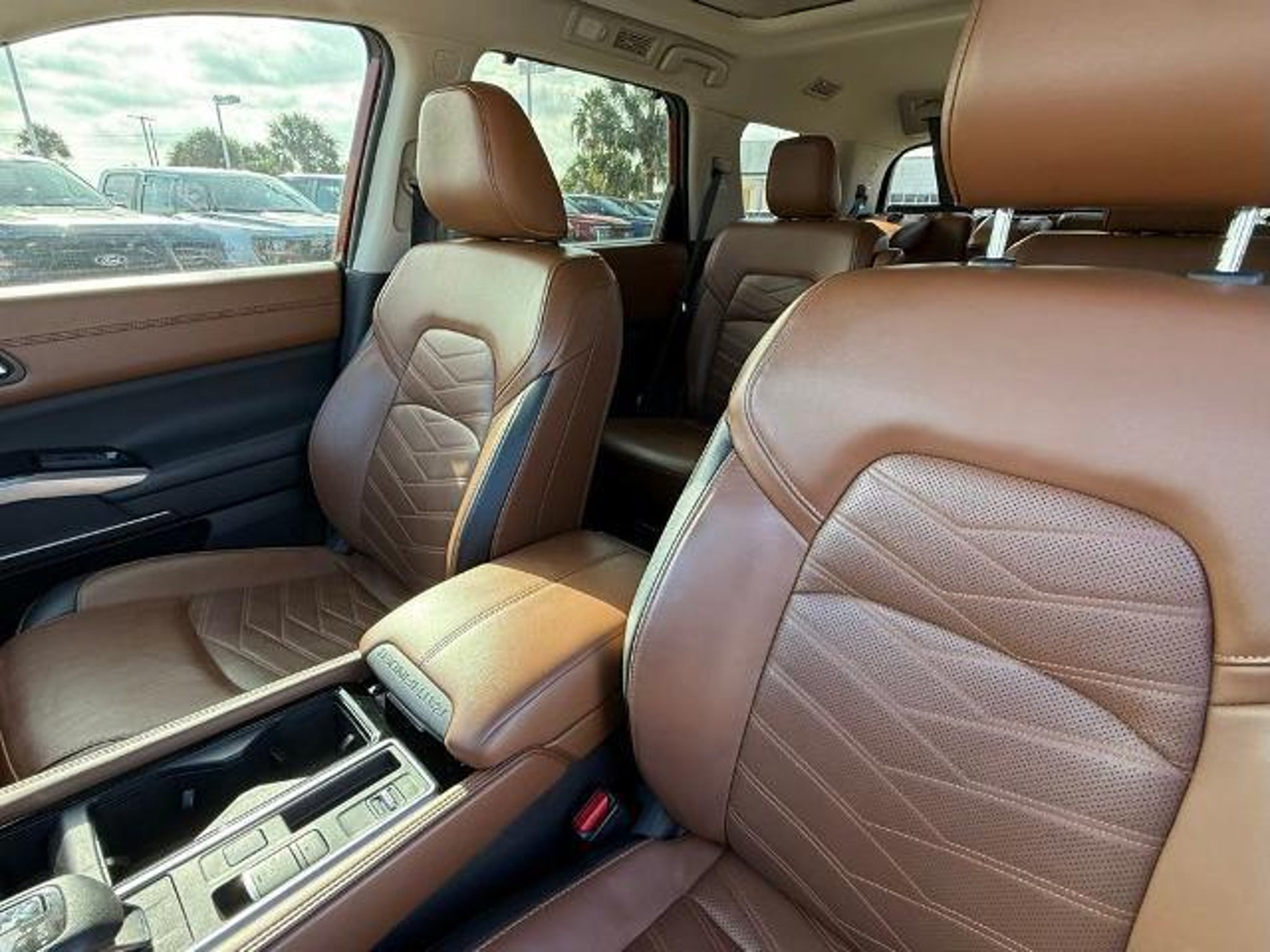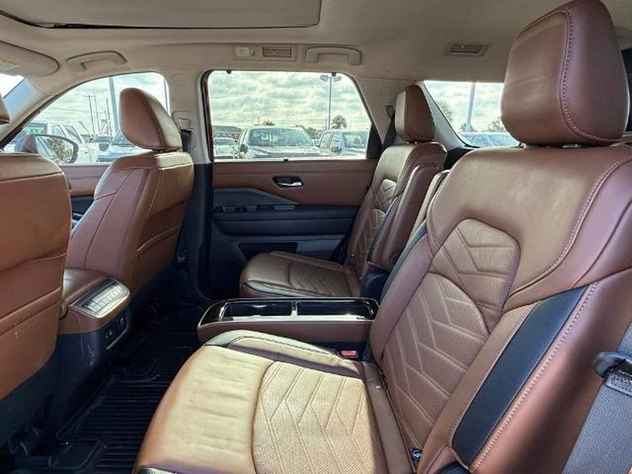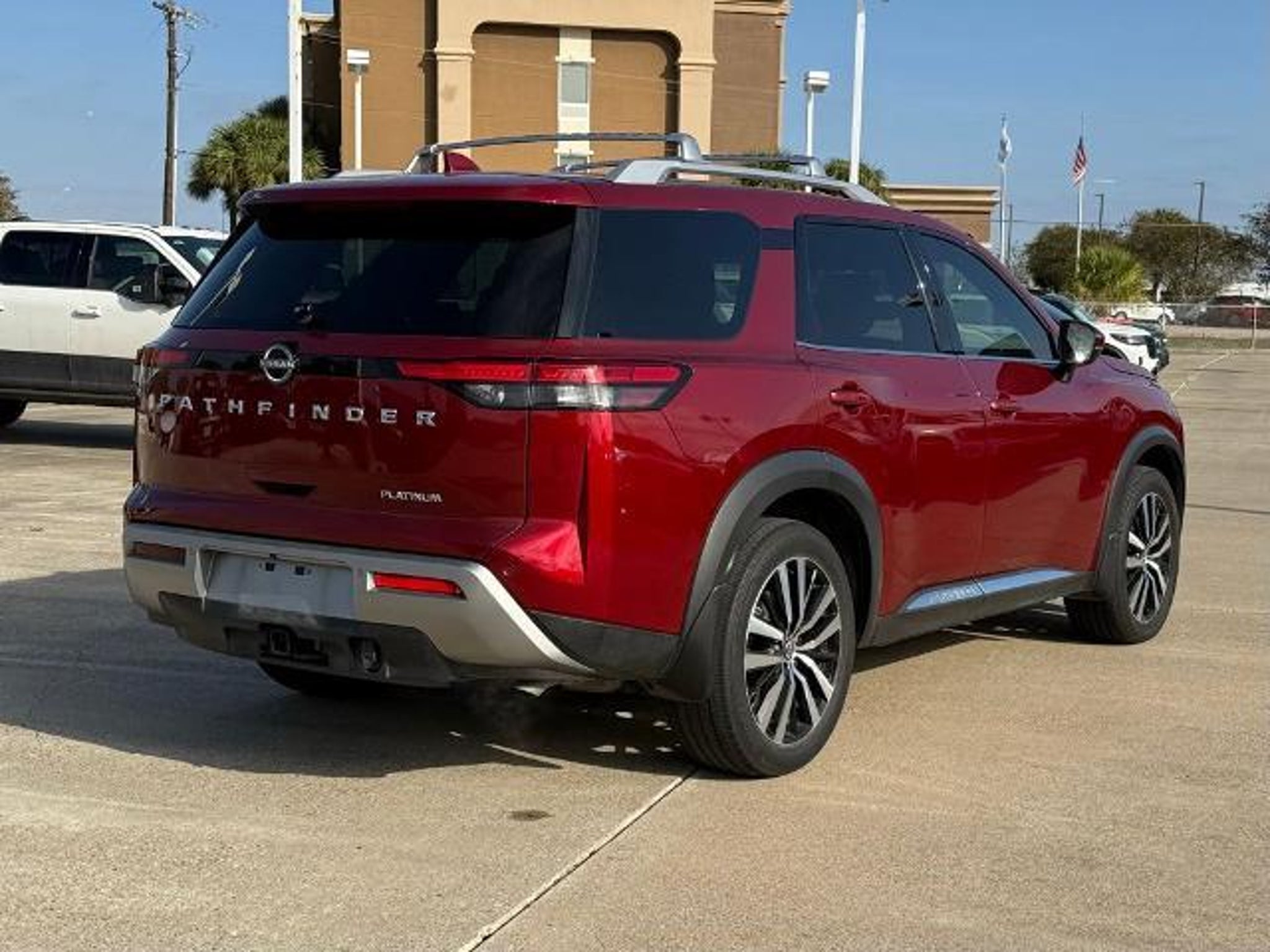 Scarlet Ember 2024 Nissan Pathfinder Platinum FWD 9-Speed Automatic 3.5L V6 DOHC This vehicle comes equipped with the following features and options: Cargo Package (Cargo Area Protector, Cargo Net, and First Aid Kit), Platinum Captain Chairs Package (2nd-Row Captain Chairs and 2nd-Row Rear Headrest), 13 Speakers, 3rd row seats: bench, 4-Wheel Disc Brakes, ABS brakes, Air Conditioning, Alloy wheels, AM/FM radio: SiriusXM, Auto High-beam Headlights, Auto tilt-away steering wheel, Auto-dimming Rear-View mirror, Automatic temperature control, Axle Ratio: 4.334, Black Splash Guards (Set of 4), Bodyside moldings, Bose Premium Audio System, Brake assist, Bumpers: body-color, Captain's Chairs Carpeted Floor Mats (Set of 4), Cross Bars, Delay-off headlights, Driver door bin, Driver vanity mirror, Dual front impact airbags, Dual front side impact airbags, Electronic Stability Control, Emergency communication system, Exterior Parking Camera Rear, Four wheel independent suspension, Front anti-roll bar, Front Bucket Seats, Front Center Armrest, Front dual zone A/C, Front reading lights, Fully automatic headlights, Garage door transmitter: HomeLink, Heads-Up Display, Heated & Cooled Front Bucket Seats, Heated door mirrors, Heated front seats, Heated rear seats, Heated steering wheel, Illuminated entry, Knee airbag, Leather steering wheel, Low tire pressure warning, Memory seat, Navigation system: NissanConnect with Navigation and Services, NissanConnect featuring Apple CarPlay and Android Auto, NissanConnect w/Navigation & Services, Occupant sensing airbag, Outside temperature display, Overhead airbag, Overhead console, Panic alarm, Passenger door bin, Passenger vanity mirror, Power door mirrors, Power driver seat, Power Liftgate, Power moonroof, Power passenger seat, Power steering, Power windows, Radio data system, Radio: AM/FM Audio System, Rain sensing wipers, Rear air conditioning, Rear anti-roll bar, Rear reading lights, Rear seat center armrest, Rear side impact airbag, Rear window defroster, Rear window wiper, Reclining 3rd row seat, Remote keyless entry, Security system, Semi-Aniline Leather-Appointed Seating Surfaces, Speed control, Speed-sensing steering, Speed-Sensitive Wipers, Split folding rear seat, Spoiler, Steering wheel memory, Steering wheel mounted audio controls, Tachometer, Telescoping steering wheel, Tilt steering wheel, Traction control, Trip computer, Turn signal indicator mirrors, Variably intermittent wipers, Ventilated front seats, and Wheels: 20 x 8J Machined Alloy. Recent Arrival! 20/27 C