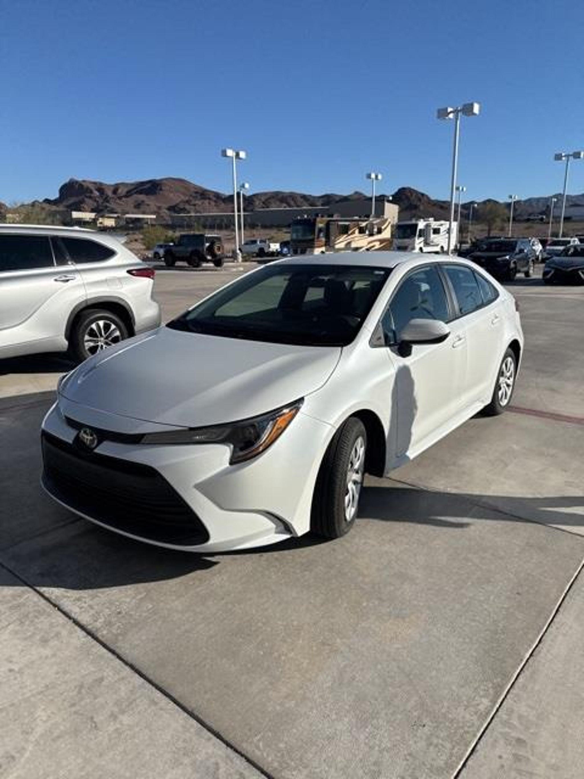 FRESH ARRIVAL!! LOCAL TRADE!! LE!! GREAT MPGs!! WIND CHILL PEARL!! TOYOTA SAFETY SENSE 3.0!! APPLE CARPLAY!! ANDROID AUTO!! DYNAMIC RADAR CRUISE CONTROL!! CLEAN CARFAX!! TOYOTA GOLD CERTIFIED!! This 2023 Toyota Corolla LE in Wind Chill Pearl offers a perfect blend of style, comfort, and efficiency. Its clean, crisp exterior color pairs beautifully with its Light Gray fabric seats inside, creating an inviting and modern cabin environment. This model stands out with its excellent fuel economy, designed to help you save at the pump and reduce trips to the gas station. This Corolla LE is equipped with advanced technology and safety features that provide confidence on every drive. Its thoughtful design, combined with Toyotas reputation for durability, makes this 2023 Corolla LE an ideal choice for anyone seeking a dependable and economical sedan. Visit Anderson Toyota today or give our friendly sales staff a call to schedule your test drive, . Toyota Gold Certified Details:  * Roadside Assistance  * Powertrain Limited Warranty: 84 Month/100,000 Mile (whichever comes first) from TCUV purchase date  * Roadside Assistance for 7 Year / 100,000 Mile. Standard New-Car Financing Rates Available. Warranty honored at over 1,400 Toyota dealers in the continental U.S. & Canada. Trade-ins accepted. Trouble-free handling of your transaction, including DMV paperwork  * Transferable Warranty  * Limited Warranty: 12 Month/12,000 Mile Limited Comprehensive Warranty: 12 Month/12,000 Mile (whichever comes first) from certified purchase date  * Warranty Deductible: $0  * Vehicle History Report  * 160 Point Inspection WHY BUY FROM ANDERSON: All Anderson pre-owned vehicles include a 3-month or 3,000 mile powertrain limited warranty and one-year/15,000 mile (whichever occurs first) vehicle maintenance plan when the vehicle is serviced at an Anderson Auto Group dealership. Out of town customers will be accommodated with free shuttle service from Las Vegas and Phoenix airports and if an overnight stay is needed, discounted nightly rates are available from local hotels. We welcome you to come in and enjoy a positive buying experience and look forward to you joining the Anderson family of customers. DISCLAIMER: Prices, options, specifications and images shown are subject to certain qualifications and availability. Pricing information is not final and may not include taxes, registration, finance and purchase fees. Please confirm vehicle availability and pricing information by calling us at or emailing our internet sales department at . Some exclusions apply, see store for details.