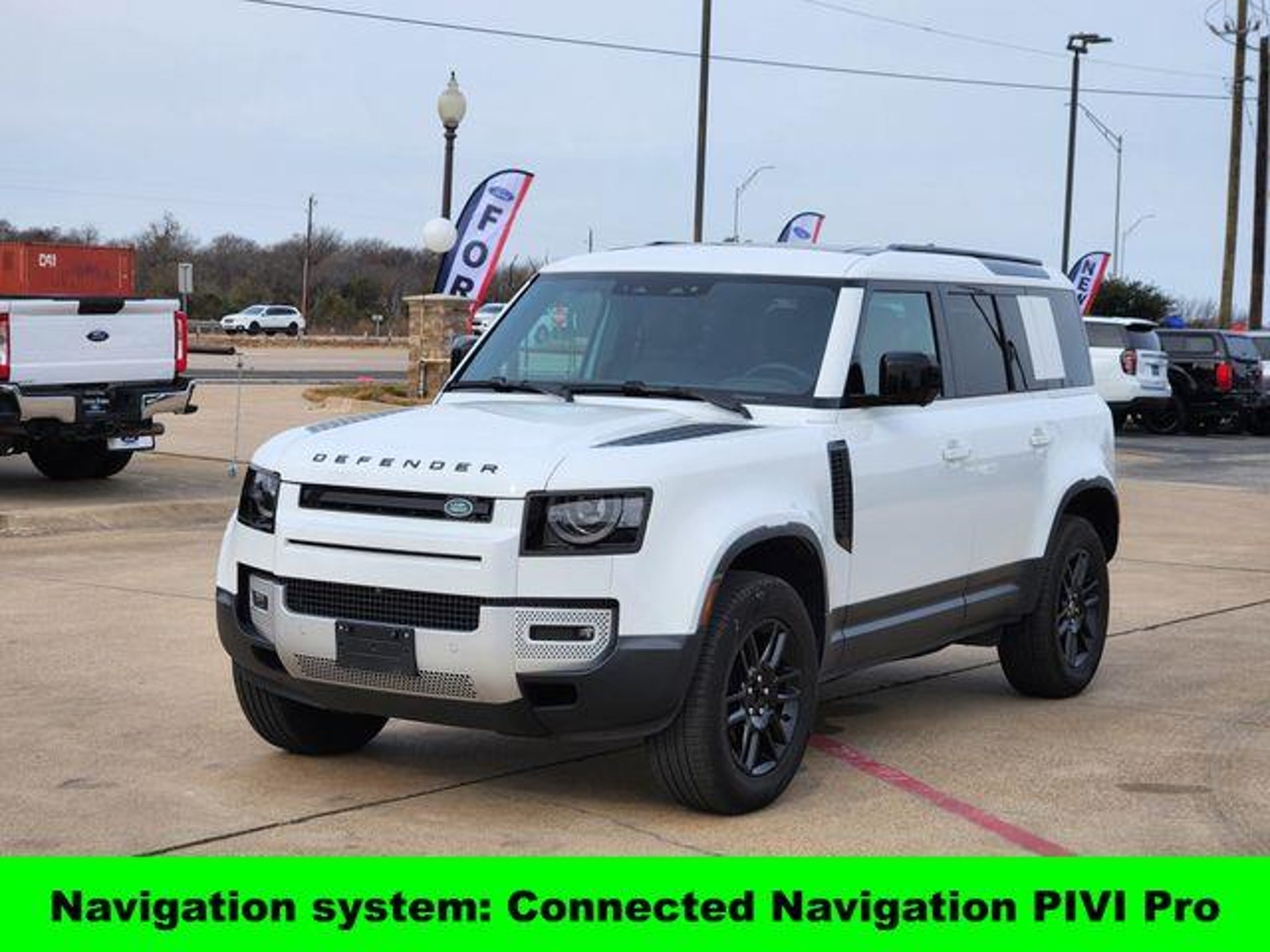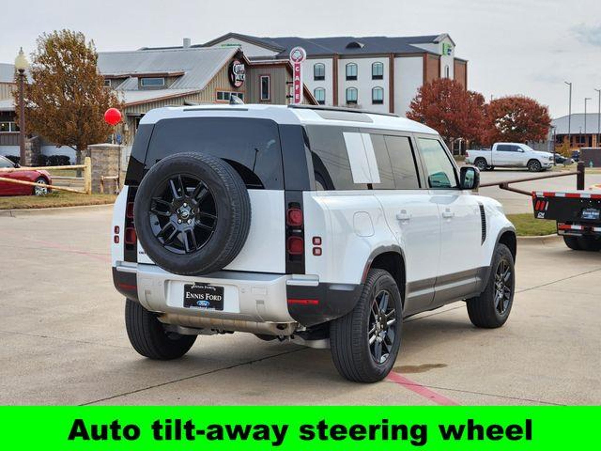 Auto tilt-away steering wheel, Heated steering wheel, Navigation system: Connected Navigation PIVI Pro, Power moonroof. ** Call us Today! 972-875-9067 ** We have a great selection of Pre-Owned vehicles! Ennis Ford is conveniently located just South of the DFW area. Just 30 minutes from Downtown Dallas! Ennis Ford also serves many other wonderful communities nearby such as Waxahachie, Kaufman, Corsicana, Italy, Rice, and Ferris just to name a few. Delivery may be available. Please reach out to our sales team for more information. You Will Like The Way We Trade! Auto tilt-away steering wheel, Heated steering wheel, Navigation system: Connected Navigation PIVI Pro, Power moonroof, 11 Speakers, 12-Way Heated Electric Memory Front Seats, 4-Wheel Disc Brakes, ABS brakes, Air Conditioning, Alloy wheels, AM/FM radio: SiriusXM, Apple CarPlay & Android Auto, Auto High-beam Headlights, Auto-dimming door mirrors, Auto-dimming Rear-View mirror, Automatic temperature control, Brake assist, Bumpers: body-color, Compass, Delay-off headlights, Driver door bin, Driver vanity mirror, Dual front impact airbags, Dual front side impact airbags, Electronic Stability Control, Exterior Parking Camera Rear, Four wheel independent suspension, Front anti-roll bar, Front Bucket Seats, Front Center Armrest, Front dual zone A/C, Front fog lights, Front reading lights, Fully automatic headlights, Garage door transmitter: HomeLink, Heated door mirrors, Heated front seats, Illuminated entry, Low tire pressure warning, Memory seat, Occupant sensing airbag, Outside temperature display, Overhead airbag, Overhead console, Panic alarm, Passenger door bin, Passenger vanity mirror, Power door mirrors, Power driver seat, Power passenger seat, Power steering, Power windows, Radio data system, Radio: Meridian Sound System, Rain sensing wipers, Rear anti-roll bar, Rear fog lights, Rear reading lights, Rear seat center armrest, Rear window defroster, Rear window wiper, Remote keyless entry, Resist and Resolve Seat Trim, Security system, Speed control, Speed-sensing steering, Speed-Sensitive Wipers, Split folding rear seat, Steering wheel memory, Steering wheel mounted audio controls, Tachometer, Telescoping steering wheel, Tilt steering wheel, Traction control, Trip computer, Variably intermittent wipers, Weather band radio, and Wheels: 19 Gloss Sparkle Silver Style 6010. Santorini Black Metallic 2025 Land Rover Defender 110 S AWD 8-Speed Automatic 2.0L I4 DI Turbocharged Recent Arrival! Odometer is 5571 miles below market average! CARFAX One-Ow