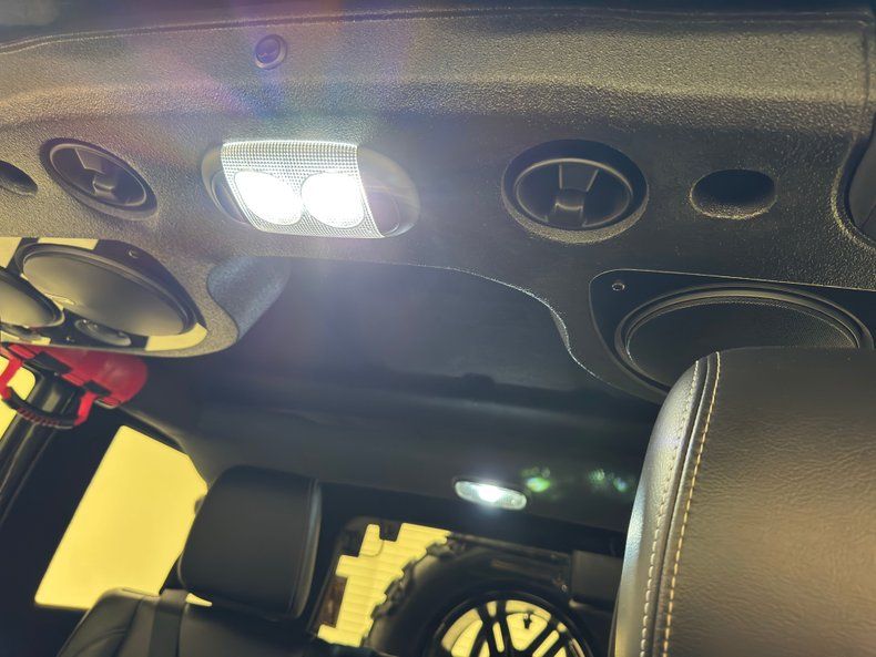With respect to the many flags adorning the Jeep, we briefly remove our hat before entering this show rig, then a side step drop to help you up to the cabin. The V6 cranks to life eagerly and the supercharger provides a sweet whine on its way around the loop, providing a booster bit of power to move this wide load, and does so without fail. There are lots of bells and whistles here in addition to the standard features, and they all operate as intended although the accessory lighting did not illuminate when prompted. While Classic Auto Mall represents that these functions were working at the time of our test drive, we cannot guarantee these functions will be working at the time of your purchase.