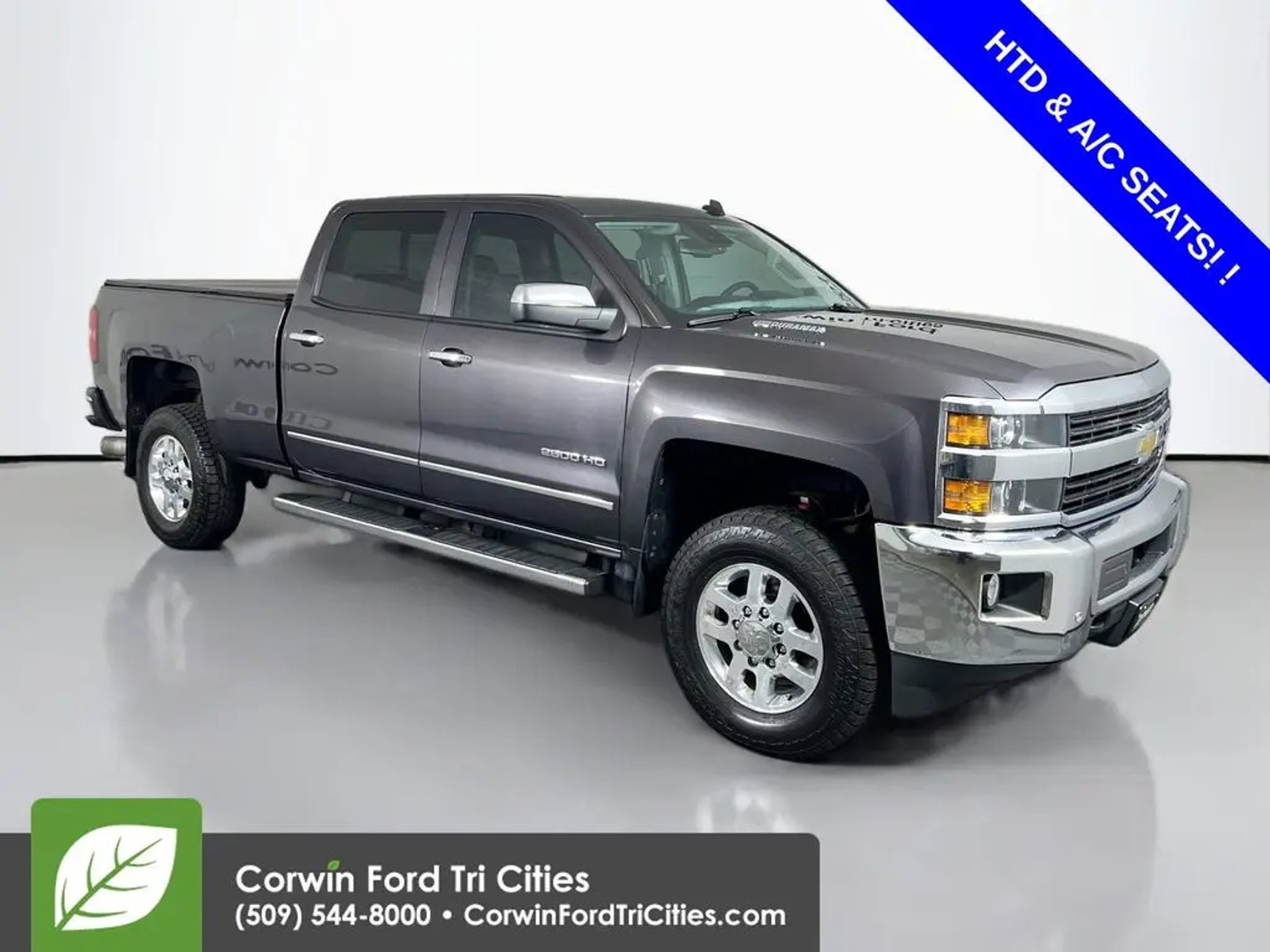 Recent Arrival! HTD & A/C SEATS!. 2015 Chevrolet Silverado 2500HD LTZ 4WD Duramax 6.6L V8 Turbodiesel Slate Gray Metallic See us today at Corwin Ford Tri-Cities. Family owned for over 100 years! Excellent selection of New and Used vehicles, Financing options. Serving Pasco, Kennewick, Richland, Walla Walla, Hermiston, Umatilla, Yakima, Spokane, Sunnyside, Grandview, Dayton, Prescott, Benton County, Franklin County, Yakima County, Spokane County, Adams County, Grant County, and the Greater Columbia Basin. *All Prices plus applicable sales tax and licensing. A negotiable documentary service fee up to $200 may be added to sales price or capitalized cost of the vehicle. One vehicle unless otherwise noted and subject to prior sale without notice. While supplies last. EPA mileage estimates are for newly manufactured vehicles only. Your actual mileage will vary depending on how you drive and maintain your vehicle.