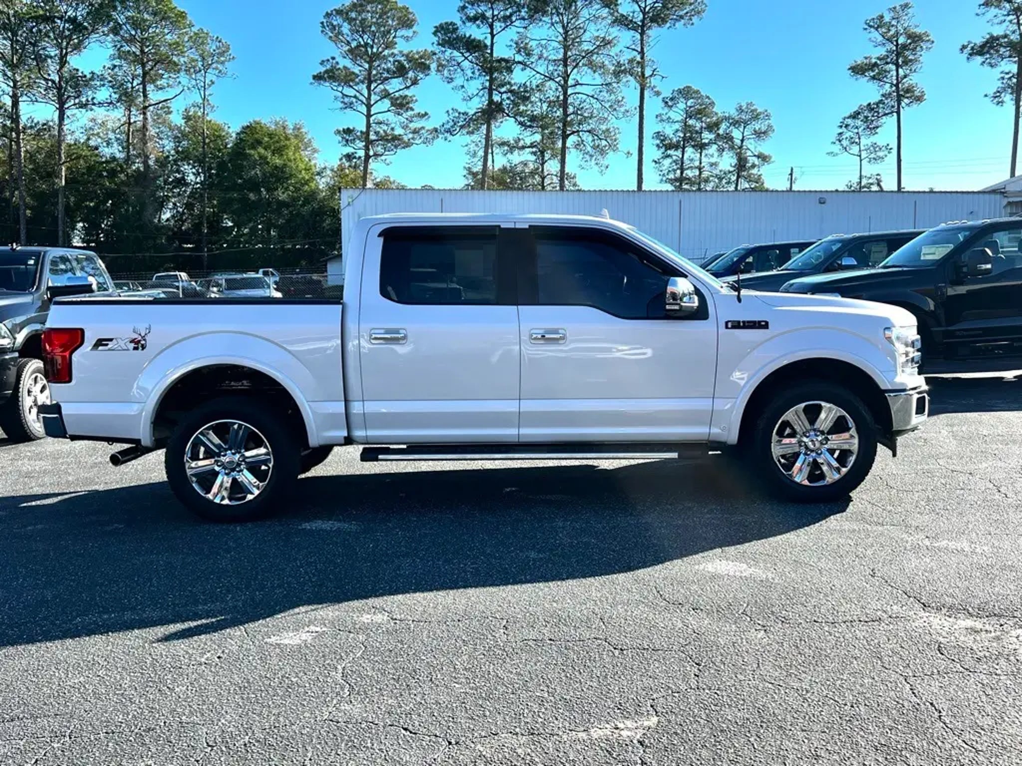 2018 Ford F-150 Lariat 4D SuperCrew, 3.5L V6 EcoBoost, 10-Speed Automatic, 4WD, White Platinum Metallic Tri-Coat, Black w/Leather-Trimmed Bucket Seats, 110V/400W Outlet, 2nd Row Heated Seats, 4x4 FX4 Off-Road Bodyside Decal, Active Park Assist, Adjustable pedals, AM/FM radio: SiriusXM, AppLink/Apple CarPlay and Android Auto, Auto-dimming door mirrors, Auto-dimming Rear-View mirror, Automatic High Beam w/Rain-Sensing Wipers, Automatic temperature control, BLIS Blind Spot Information System, CD player, Class IV Trailer Hitch Receiver, Equipment Group 502A Luxury, Front dual zone A/C, Front fog lights, FX4 Off-Road Package, Heated Steering Wheel, Higher-Capacity Radiator, Higher-Power Cooling Fans, Hill Descent Control, Lane-Keeping System, Lariat Chrome Appearance Package, Leather-Trimmed Bucket Seats, LED Sideview Mirror Spotlights, Memory seat, Navigation System, Off-Road Tuned Front Shock Absorbers, Pedal memory, Power Glass Sideview Mirr w/Chrome Skull Caps, Power passenger seat, Power Tilt/Telescoping Steering Column w/Memory, Pro Trailer Backup Assist, Quad Beam LED Headlamps & LED Taillamps/Fog Lamps, Radio: B&O Play Premium Audio System, Remote keyless entry, Remote Start System w/Remote Tailgate Release, Reverse Sensing System, Speed control, SYNC Connect, Technology Package, Trailer Tow Package, Universal Garage Door Opener, Upgraded Front Stabilizer Bar, Ventilated front seats, Voice-Activated Touchscreen Navigation System, Wheels: 20 Chrome-Like PVD, Windshield Wiper De-Icer. Odometer is 24375 miles below market average! Beautifully equipped with Equipment Group 502A Luxury (110V/400W Outlet, 2nd Row Heated Seats, Automatic High Beam w/Rain-Sensing Wipers, BLIS Blind Spot Information System, Heated Steering Wheel, Leather-Trimmed Bucket Seats, LED Sideview Mirror Spotlights, Power Glass Sideview Mirr w/Chrome Skull Caps, Power Tilt/Telescoping Steering Column w/Memory, Quad Beam LED Headlamps & LED Taillamps/Fog Lamps, Radio: B&O Play Premium Audio System, Remote Start System w/Remote Tailgate Release, Reverse Sensing System, SYNC Connect, Universal Garage Door Opener, Voice-Activated Touchscreen Navigation System, and Windshield Wiper De-Icer), FX4 Off-Road Package (4x4 FX4 Off-Road Bodyside Decal, Hill Descent Control, and Off-Road Tuned Front Shock Absorbers), Lariat Chrome Appearance Package (Chrome 2-Bar Grille w/4 Minor Bars, Chrome Angular Step Bars, Chrome Door & Tailgate Handles w/Body-Color Bezel, Chrome Skull Caps on Exterior Mirrors, and Single-Tip Chrome Exhaust), Technology Package (Active Park Assist and Lane-Keeping System), Trailer Tow Package (Class IV Trailer Hitch Receiver, Higher-Capacity Radiator, Higher-Power Cooling Fans, Pro Trailer Backup Assist, and Upgraded Front Stabilizer Bar), GVWR: 7,050 lbs Payload Package, 4D SuperCrew, 3.5L V6 EcoBoost, 10-Speed Automatic, 4WD, White Platinum Metallic Tri-Coat, Black w/Leather-Trimmed Bucket Seats, Adjustable pedals, AM/FM radio: SiriusXM, AppLink/Apple CarPlay and Android Auto, Auto-dimming door mirrors, Auto-dimming Rear-View mirror, Automatic temperature control, CD player, Front dual zone A/C, Front fog lights, Memory seat, Navigation System, Pedal memory, Power passenger seat, Remote keyless entry, Speed control, Ventilated front seats, Wheels: 20 Chrome-Like PVD, 4-Wheel Disc Brakes, 7 Speakers, ABS brakes, Air Conditioning, Alloy wheels, Brake assist, Bumpers: chrome, Compass, Delay-off headlights, Driver door bin, Driver vanity mirror, Dual front impact airbags, Dual front side impact airbags, Electronic Locking w/3.31 Axle Ratio, Electronic Stability Control, Emergency communication system: SYNC 3 911 Assist, Exterior Parking Camera Rear, Front anti-roll bar, Front Center Armrest w/Storage, Front reading lights, Front wheel independent suspension, Fully automatic headlights, Heated door mirrors, Heated front seats, Illuminated entry, Low tire pressure warning, Occupant sensing airbag, Outside temperature display, Overhead airbag, Overhea