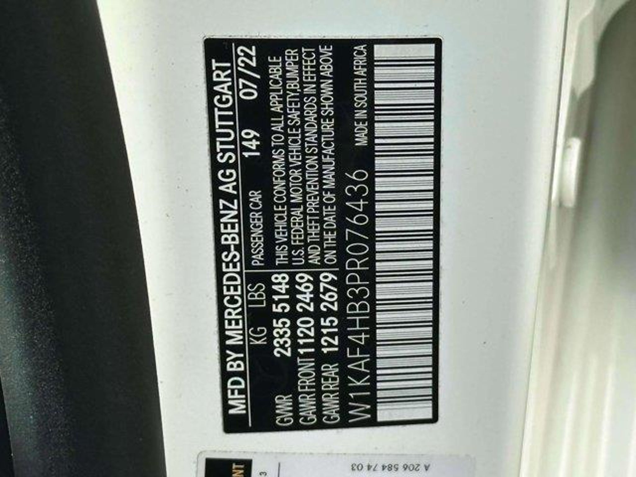 VIN W1KAF4HB3PR076436