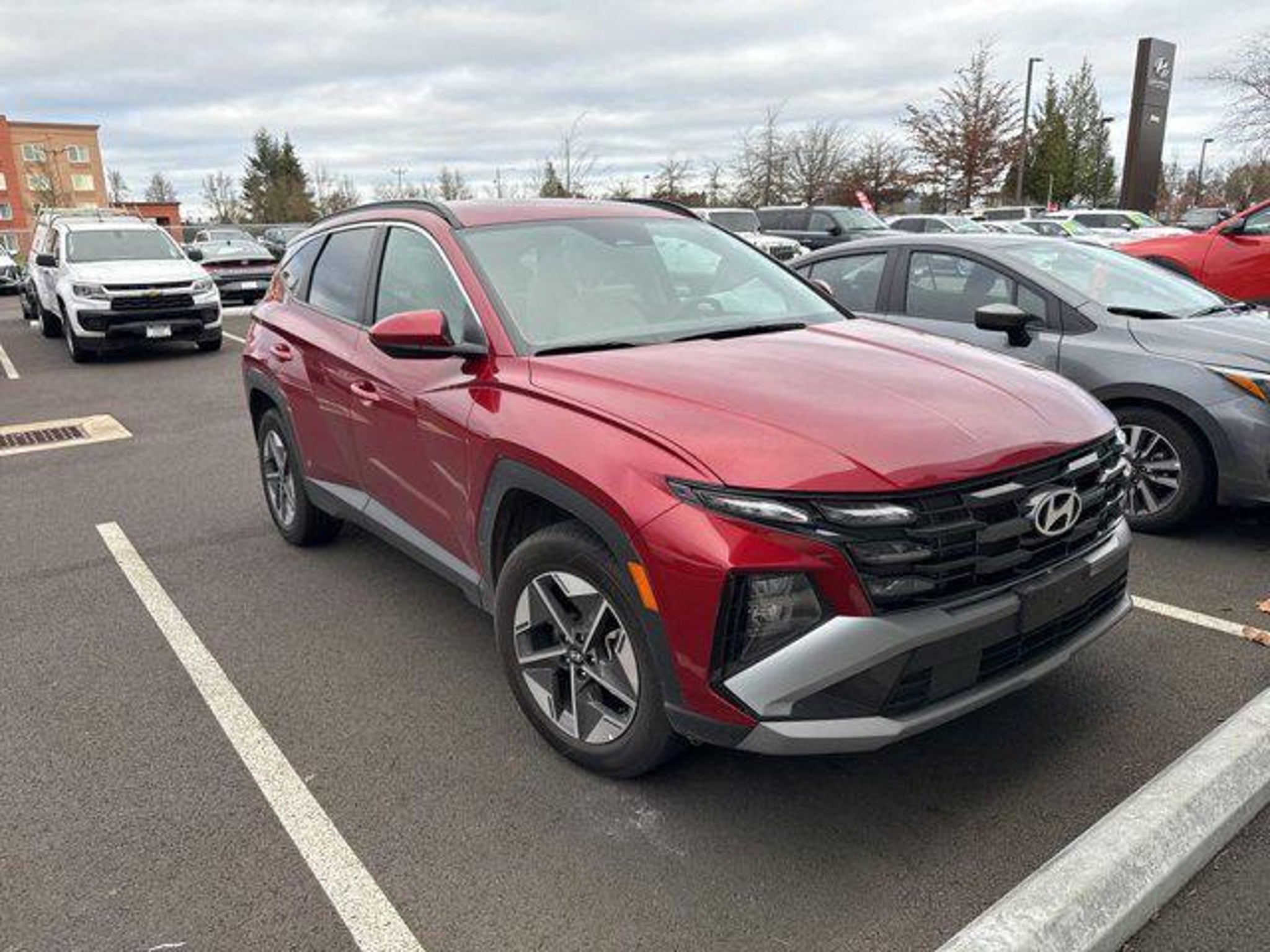 Priced below KBB Fair Purchase Price! CARFAX One-Owner. 2025 Hyundai Tucson Ultimate Red SEL 24/30 City/Highway MPG Certified.AWD8-Speed Automatic with SHIFTRONIC 2.5L I4 DGI DOHC 16V LEV3-SULEV30 187hpBluetooth, Heated seats, Blind Spot Monitors, Rear view camera, Power Windows & Locks, apple carplay, android auto, Tucson SEL, 4D Sport Utility, 2.5L I4 DGI DOHC 16V LEV3-SULEV30 187hp, 8-Speed Automatic with SHIFTRONIC, AWD, Ultimate Red, Gray Cloth, 4-Wheel Disc Brakes, ABS brakes, Air Conditioning, Alloy wheels, Apple CarPlay & Android Auto, Auto High-beam Headlights, Automatic temperature control, Brake assist, Bumpers: body-color, Delay-off headlights, Driver door bin, Driver vanity mirror, Dual front impact airbags, Dual front side impact airbags, Electronic Stability Control, Emergency communication system: Bluelink, Four wheel independent suspension, Front anti-roll bar, Front Bucket Seats, Front Center Armrest, Front dual zone A/C, Front reading lights, Fully automatic headlights, Heated door mirrors, Heated Front Bucket Seats, Heated front seats, Illuminated entry, Low tire pressure warning, Occupant sensing airbag, Option Group 01, Outside temperature display, Overhead airbag, Overhead console, Panic alarm, Passenger door bin, Passenger vanity mirror, Power door mirrors, Power driver seat, Power Liftgate, Power steering, Power windows, Radio: AM/FM/HD Audio System, Rear anti-roll bar, Rear reading lights, Rear seat center armrest, Rear side impact airbag, Rear window defroster, Rear window wiper, Remote keyless entry, Security system, Speed control, Split folding rear seat, Spoiler, Stain & Odor Resistant Cloth Seat Trim, Steering wheel mounted audio controls, Tachometer, Telescoping steering wheel, Tilt steering wheel, Traction control, Trip computer, Variably intermittent wipers. Recent Arrival! 24/30 City/Highway MPG