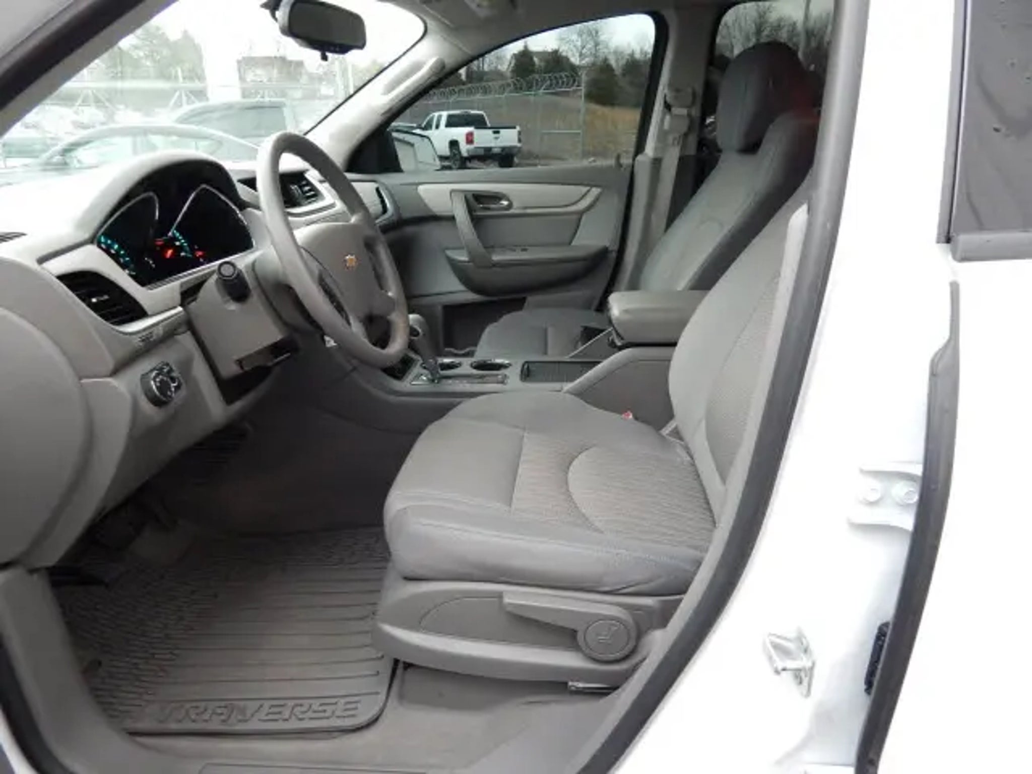The 2017 Chevrolet Traverse comes equipped with the following Cargo Convenience Package (Cargo Area Shade Cover and Cargo Net), Front License Plate Bracket Mounting Package, Interior Protection Package (LPO) (1st & 2nd Row All-Weather Floor Mats, 3rd Row All-Weather Floor Mats, and Rear All-Weather Cargo Mat (LPO)), Preferred Equipment Group 1LS (Airbags, Bluetooth® For Phone, Comfort Grip Urethane Steering Wheel, Enhanced Driver Information Center, and Standard Speaker System), 17 x 7.5 Steel Wheels, 3.16 Axle Ratio, 3rd row seats: split-bench, 4-Wheel Disc Brakes, 6 Speakers, 8-Passenger Seating (2-3-3 Seating Configuration), ABS brakes, Air Conditioning, AM/FM radio: SiriusXM, Bodyside moldings, Brake assist, Bumpers: body-color, CD player, Compass, Delay-off headlights, Driver door bin, Driver vanity mirror, Dual front impact airbags, Dual front side impact airbags, Electronic Stability Control, Emergency communication system, Exterior Parking Camera Rear, Four wheel independent suspension, Front anti-roll bar, Front Bucket Seats, Front Center Armrest w/Storage, Front reading lights, Fully automatic headlights, Illuminated entry, Low tire pressure warning, Occupant sensing airbag, Outside temperature display, Overhead airbag, Panic alarm, Passenger door bin, Passenger vanity mirror, Power door mirrors, Power steering, Power windows, Premium Cloth Seat Trim, Radio data system, Radio: Color Touch AM/FM/SiriusXM/CD Player, Rear air conditioning, Rear anti-roll bar, Rear reading lights, Rear seat center armrest, Rear window defroster, Rear window wiper, Remote keyless entry, Roof rack: rails only, Security system, SiriusXM Satellite Radio, Speed control, Split folding rear seat, Spoiler, Steering wheel mounted audio controls, Tachometer, Telescoping steering wheel, Tilt steering wheel, Traction control, Trip computer, Variably intermittent wipers, and Voltmeter. 2017 Chevrolet Traverse Summit White 2017 Chevrolet Traverse LS FWD 6-Speed Automatic 3.6L V6 SIDI Odometer is 15662 miles below market average! Call us today to schedule your VIP test drive!