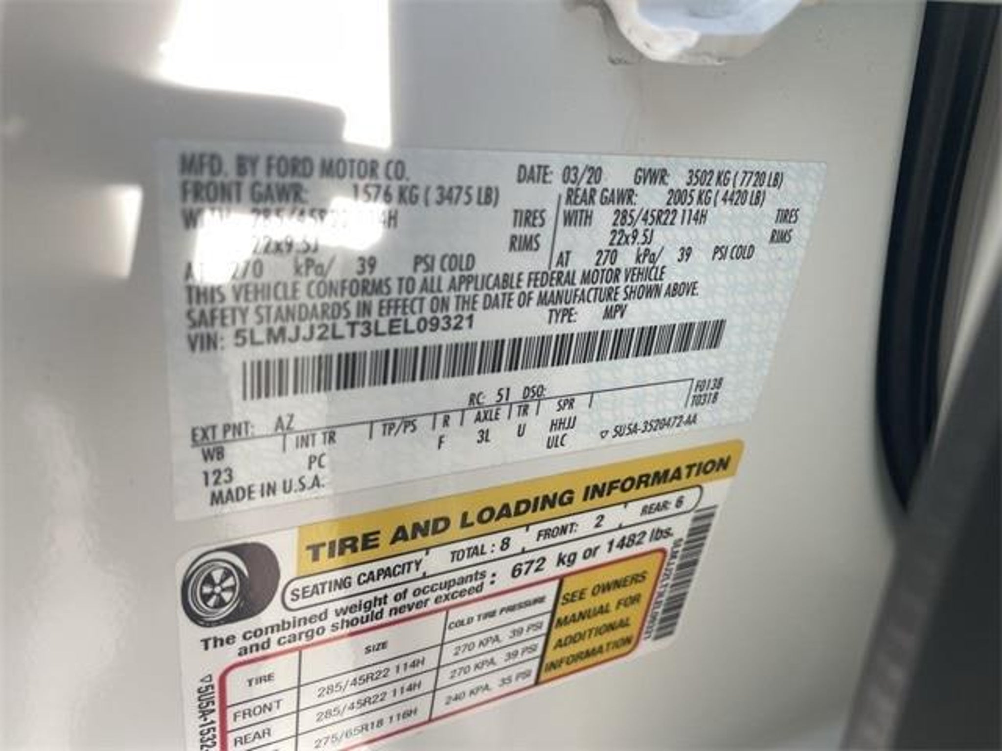 V6 Class IV w/4-Pin & 7-Pin Connectors Electronic Traction Assist (eLSD) Equipment Group 208A Reserve GVWR: 7625 lbs Payload Package Heavy-Duty Radiator Heavy-Duty Trailer Tow Package Luxury Package Navigation System Perfect Position Seats (30-Way) w/Active Motion Pro-Trailer Backup Assist Revel Ultima Audio System w/20-Speakers Smart Trailer Tow Trailer Brake Controller (TBC) Trailer Sway Control 14 Speakers 2nd Row Heated 40/20/40 Split Bench Seat 3.73 Axle Ratio 3rd row seats: split-bench 4-Wheel Disc Brakes ABS brakes Adaptive suspension Adjustable pedals Air Conditioning Alloy wheels AM/FM radio: SiriusXM Audio memory Auto High-beam Headlights Auto tilt-away steering wheel Auto-dimming door mirrors Auto-dimming Rear-View mirror Auto-leveling suspension Automatic temperature control Body-Color Exterior Mirror Finish Bodyside moldings Brake assist Bumpers: body-color Compass Delay-off headlights Driver door bin Driver vanity mirror Drivers Seat Mounted Armrest Dual front impact airbags Dual front side impact airbags Electronic Stability Control Emergency communication system: 911 Assist Exterior Parking Camera Rear Four wheel independent suspension Front anti-roll bar Front Bucket Seats Front dual zone A/C Front fog lights Front License Plate Bracket Front reading lights Fully automatic headlights Garage door transmitter Genuine wood dashboard insert Genuine wood door panel insert Head restraints memory Heads-Up Display Heated door mirrors Heated front seats Heated rear seats Heated steering wheel HVAC memory Illuminated entry Knee airbag Leather steering wheel Low tire pressure warning Memory seat Monochromatic Lincoln Badge Monochromatic Lincoln Grille Occupant sensing airbag Outside temperature display Overhead airbag Overhead console Panic alarm Passenger door bin Passenger seat mounted armrest Passenger vanity mirror Pedal memory Power adjustable rear head restraints Power door mirrors Power driver seat Power Liftgate Power moonroof: Panoramic Vista Roof Power passenger seat Power steering Power windows Premium Lthr Htd/Ventilated Low Back Comfort Seats Radio data system Radio: Revel AM/FM/HD/MP3 Audio System Rain sensing wipers Rear air conditioning Rear anti-roll bar Rear audio controls Rear reading lights Rear window defroster Rear window wiper Reclining 3rd row seat Remote keyless entry Security system SiriusXM Radio Slow Climb Drive Mode Speed control Speed-sensing steering Speed-Sensitive Wipers Split folding rear seat Spoiler Steering wheel memory Steering wheel mounted audio controls SYNC 3 Communications & Entertainment System Tachometer Telescoping steering wheel Tilt steering wheel Traction control Trip computer Turn signal indicator mirrors Variably intermittent wipers Ventilated front seats Voice-Activated Touchscreen Navigation System Wheels: 22 12-Spoke Ultra Bright Machined Alum Wheels: 22 Monochromatic Class IV w/4-Pin & 7-Pin Connectors Electronic Traction Assist (eLSD) Equipment Group 208A Reserve GVWR: 7625 lbs Payload Package Heavy-Duty Radiator Heavy-Duty Trailer Tow Package Luxury Package Navigation System Perfect Position Seats (30-Way) w/Active Motion Pro-Trailer Backup Assist Revel Ultima Audio System w/20-Speakers Smart Trailer Tow Trailer Brake Controller (TBC) Trailer Sway Control. Awards: * JD Power Automotive Performance Execution and Layout (APEAL) Study Excellent selection of Vehicles Financing options serving Hanford Lemoore Armona Visalia Tulare Fresno Goshen Kings County Tulare County Fresno County San Joaquin County Bakersfield Kern County. Price excludes government fees and taxes dealer documentation fee of $85 and any emission testing charge.