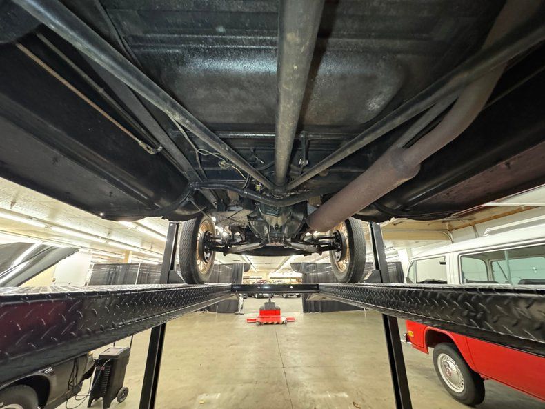 Conditions are not bad for this 94 year old with some typical oil present on the pan and rear differential. Mechanical drum brakes are employed on all four wheels and a single exhaust runs through a stock style muffler terminating before the rear axle. Transverse leaf springs are utilized front and rear.
