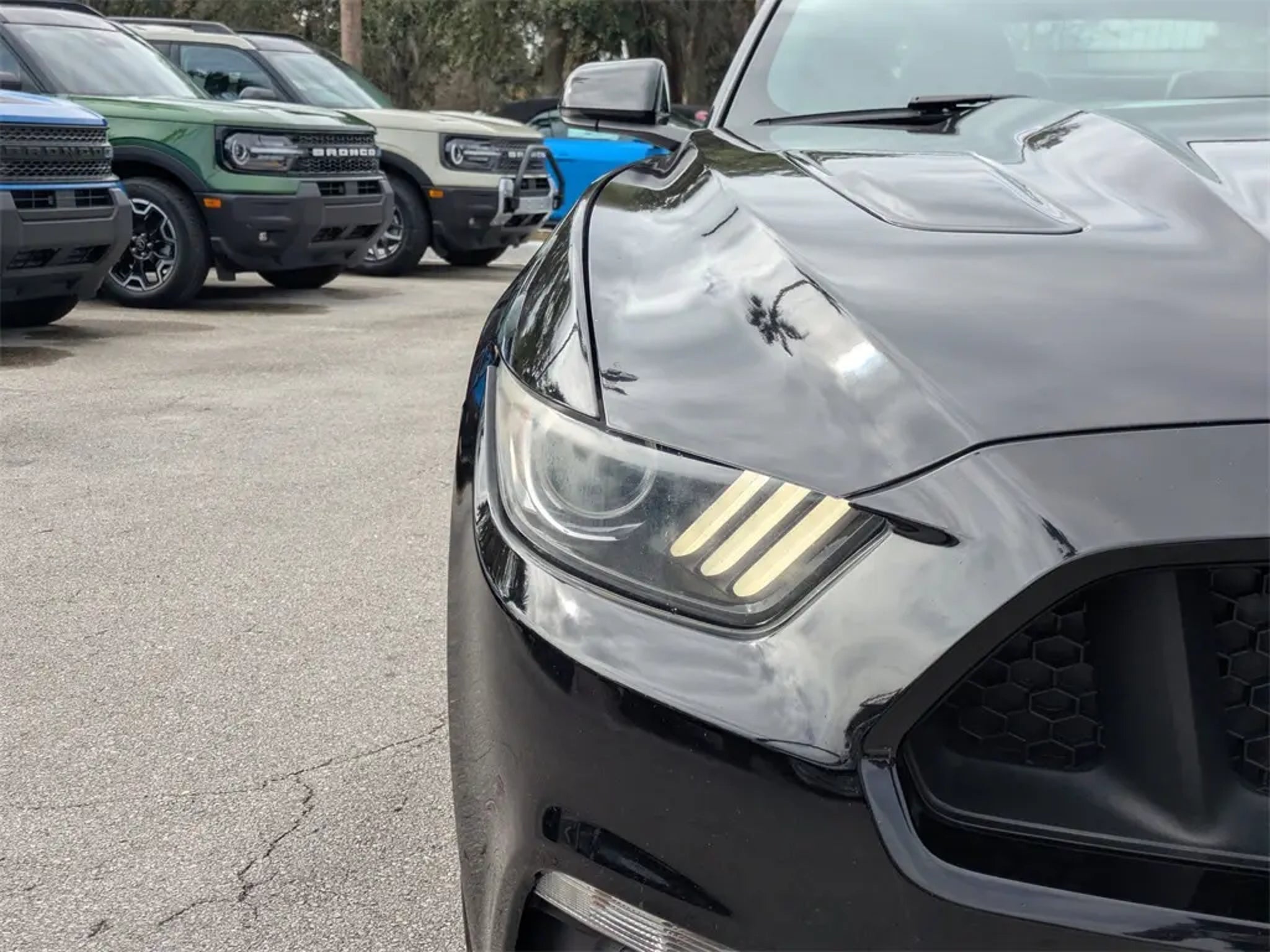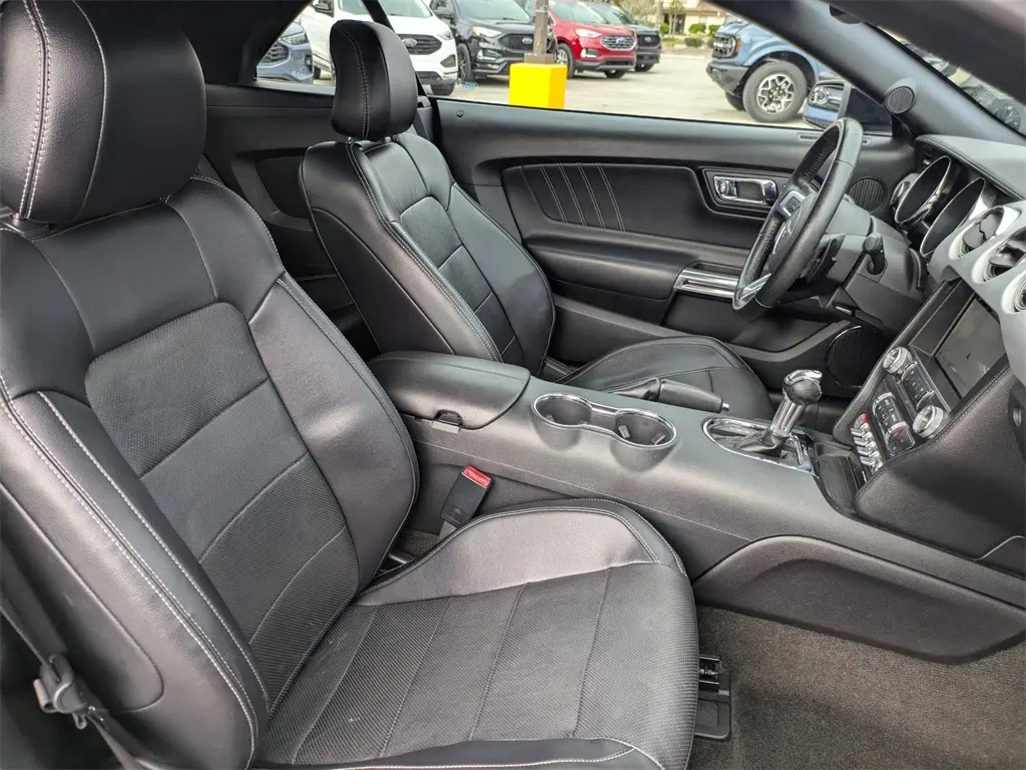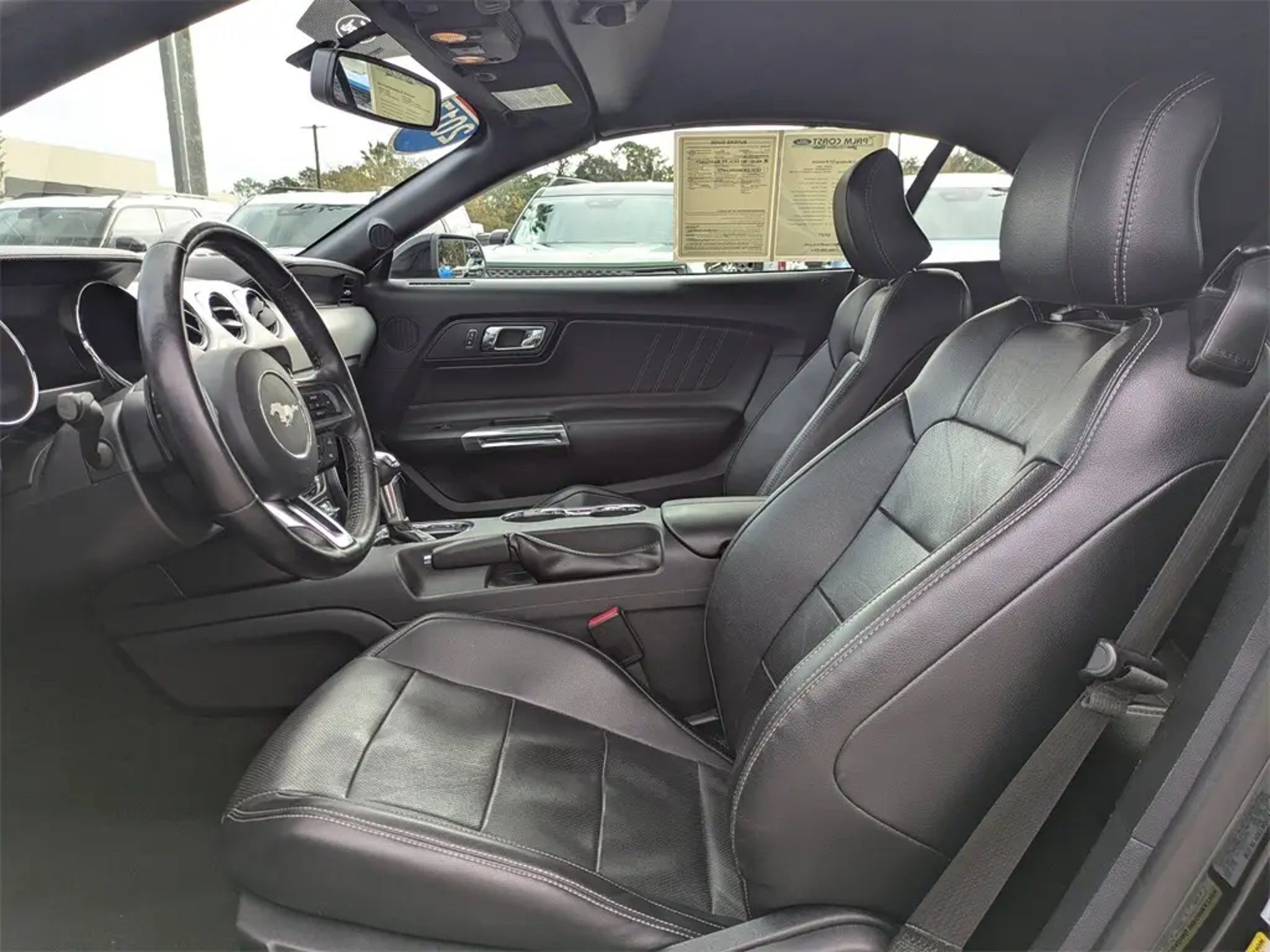 Recent Arrival! 2017 Ford Mustang GT Premium RWD 5.0L V8 Ti-VCT 6-Speed Automatic with Select-Shift Shadow Black Equipped with Equipment Group 400A, 4-Wheel Disc Brakes, 9 Speakers, ABS brakes, Air Conditioning, Alloy wheels, AM/FM radio: SiriusXM, AM/FM Stereo w/Single CD Player, Auto-dimming Rear-View mirror, Automatic temperature control, Block heater, Brake assist, Bumpers: body-color, CD player, Climate Controlled Heated/Cooled Front Seats, Compass, Convertible roof lining, Delay-off headlights, Driver door bin, Driver vanity mirror, Dual front impact airbags, Dual front side impact airbags, Electronic Stability Control, Emergency communication system: 911 Assist, Exterior Parking Camera Rear, Four wheel independent suspension, Front anti-roll bar, Front Bucket Seats, Front Center Armrest, Front dual zone A/C, Front fog lights, Front License Plate Bracket, Front reading lights, Fully automatic headlights, Garage door transmitter, Glass rear window, Heated door mirrors, Heated front seats, High-Intensity Discharge Headlights, Illuminated entry, Knee airbag, Leather Bucket Seats, Leather Shift Knob, Low tire pressure warning, Occupant sensing airbag, Outside temperature display, Overhead console, Panic alarm, Passenger door bin, Passenger vanity mirror, Power convertible roof, Power door mirrors, Power driver seat, Power passenger seat, Power steering, Power windows, Radio data system, Rear anti-roll bar, Rear window defroster, Remote keyless entry, Remote Start System, Security system, SiriusXM Radio, Speed control, Speed-sensing steering, Speed-Sensitive Wipers, Spoiler, Steering wheel mounted audio controls, SYNC 3 Communications & Entertainment System, Tachometer, Telescoping steering wheel, Tilt steering wheel, Traction control, Trip computer, Turn signal indicator mirrors, Variably intermittent wipers, Ventilated front seats, Voice-Activated Touch-Screen Navigation System, Voltmeter, and Wheels: 18 x 8 Magnetic Painted/Machined. Palm Coast Ford, We're Not That Far! Free deliveries within 200 miles. Call us today to experience the difference, (386) 447-3380.