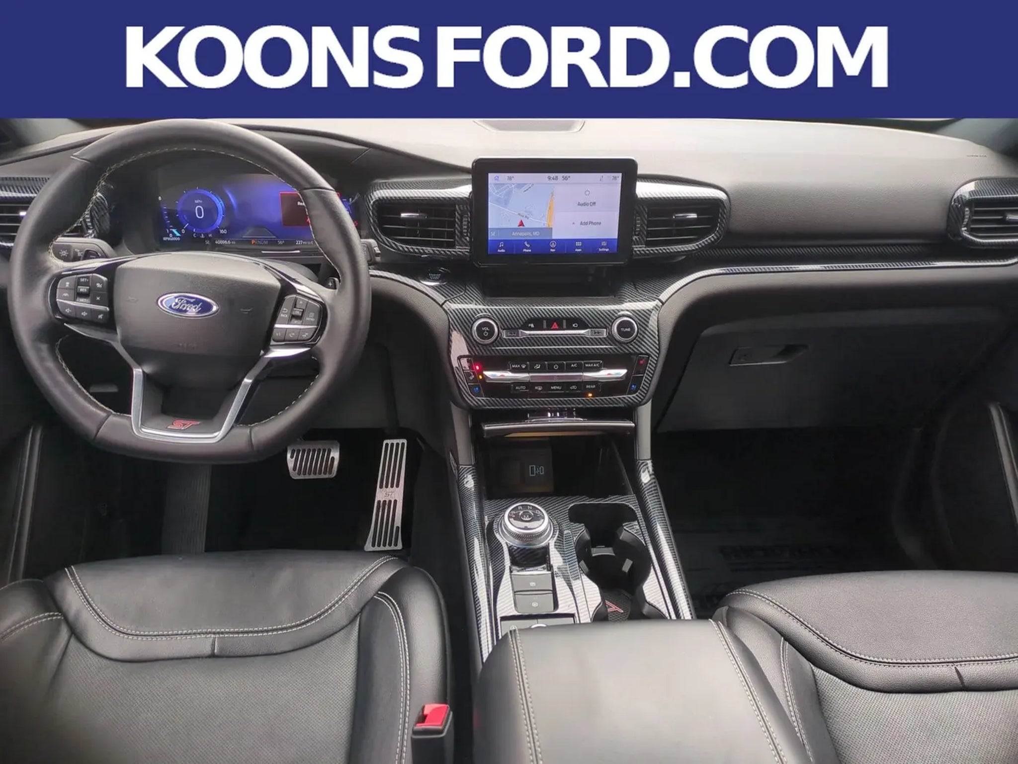 Elevate your driving experience with this exceptional 2023 Ford Explorer ST. This powerful SUV combines unparalleled performance, advanced technology, and refined style, making it the perfect choice for those who demand the best.â 120 Point Maryland State Inspectionâ Accident Freeâ Remainder of Factory Warrantyâ Gold Advantage Warranty incl. 7yr/100k from Original Sale Date & 12mos/12k from todayâ Equipment Group 401Aâ Ford Co-Pilot360 Assist â ST High Packageâ ST Street PackUnder the hood, this Explorer ST boasts a thrilling 3.0L EcoBoost V6 engine, delivering an exhilarating 400 horsepower and 415 lb-ft of torque. Paired with a responsive 10-speed automatic transmission and intelligent 4WD, this SUV offers exceptional performance and handling, whether you're navigating city streets or conquering the open road.The exterior of the Explorer ST exudes a bold and confident presence, thanks to its sleek black finish and striking 21-inch aluminum wheels. Step inside and you'll be greeted by a premium, technology-packed cabin that elevates your driving experience. Enjoy the convenience of the Voice-Activated Touchscreen Navigation System, the immersive sound of the B&O Sound System, and the added security of the 360-Degree Camera with Split View.Comfort and convenience are at the forefront, with features like heated and ventilated front seats, a heated steering wheel, and a Twin Panel Moonroof that floods the cabin with natural light. The Intelligent Adaptive Cruise Control and Evasive Steering Assist take the stress out of long drives, while the Wireless Charging Pad and 110V/150W AC Power Outlet keep your devices powered up and ready to go.Safety is also a top priority, with the Ford Co-Pilot360 Assist suite of advanced driver-assistance technologies, including Speed Sign Recognition, Reverse Brake Assist, and Intelligent Adaptive Cruise Control with Stop-and-Go and Lane Centering.Whether you're embarking on a family adventure, commuting in style, or seeking a thrilling driving experience, this 2023 Ford Explorer ST is the perfect companion. Schedule a test drive today and discover the power, technology, and refinement that will elevate your driving experience.