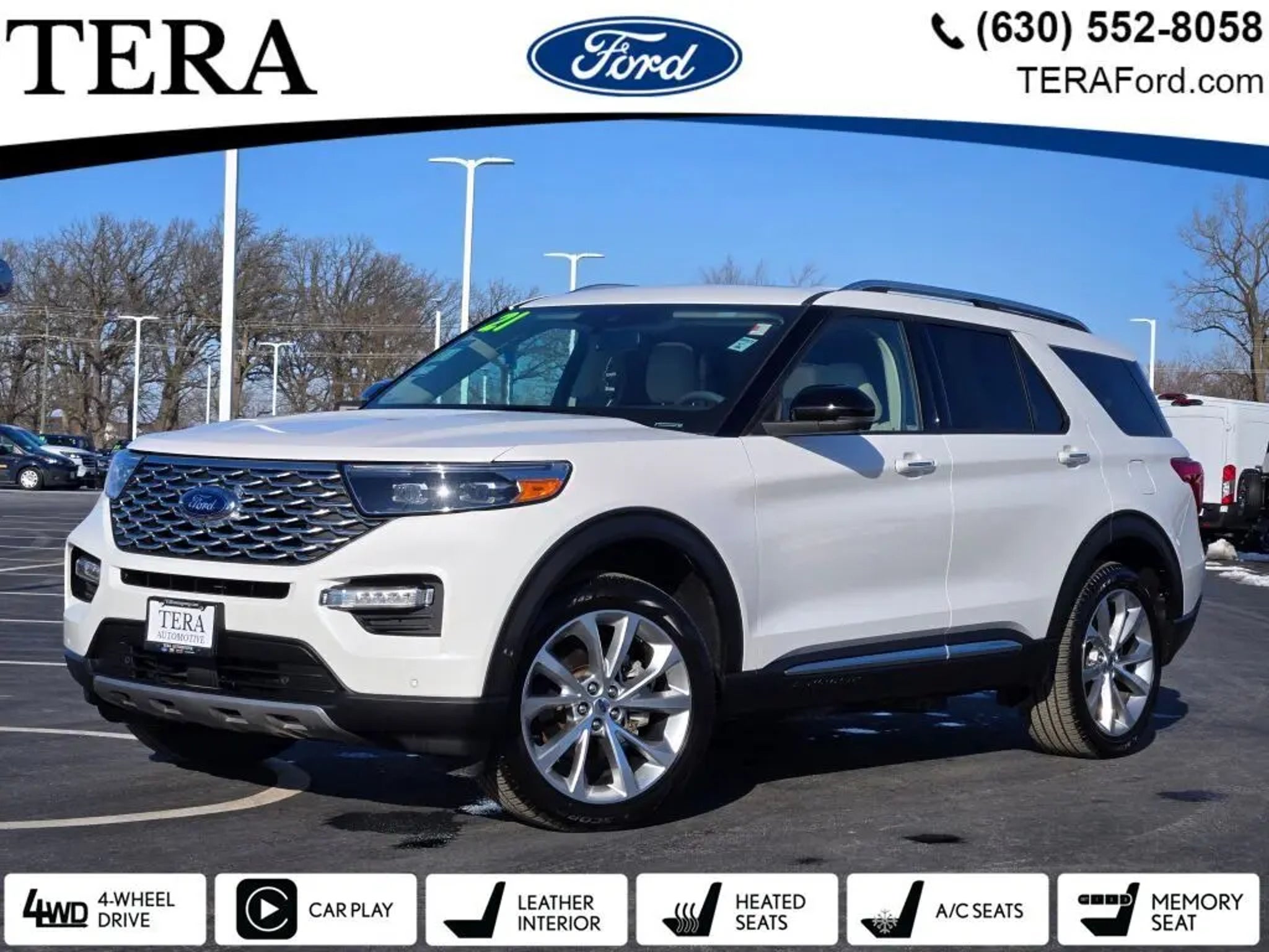 1 OWNER AUTOCHECK, CLEAN AUTOCHECK, Clean Carfax, Wireless Charging Pad, 360-Degree Camera, Active Park Assist, Class lll Trailer Tow Package, Remote Start System, 2nd Row Heated Seats, Hands-Free Power Liftgate, 14 Speakers, Massaging Front Seats, 4WD, 10.1 LCD Capacitive Portrait Touchscreen, 2 Additional Speakers, 3rd row seats: bench, Auto High-beam Headlights, Equipment Group 601A, FordPass Connect, Garage door transmitter: HomeLink, Heated front seats, Heated steering wheel, Leather Htd/Ventilated Sport Captain's Chairs, Memory seat, Navigation System, Power driver seat, Power Liftgate, Premium Technology Package, Radio: B&O Sound System by Bang & Olufsen, SYNC 3 Communications & Entertainment System, Twin Panel Moonroof, Ventilated front seats, Voice-Activated Touchscreen Navigation System. White 2021 Ford Explorer Platinum 4WD 10-Speed Automatic 3.0L EcoBoost V6 Odometer is 18174 miles below market average! LOWEST TAX RATE IN THE STATE @ 6.25%. Selling and Servicing vehicles in Sandwich, Plano, Yorkville, Oswego, Naperville, Plainfield, Joliet, DeKalb, Elburn, St. Charles, Geneva, Batavia, Somonauk, Leland, Earlville, Mendota, Shorewood, Channahon, Aurora, North Aurora, Lisle, Ottawa, Dixon, Sterling, LaSalle, Peru, Rockford and Sugar Grove for over 4 Decades.