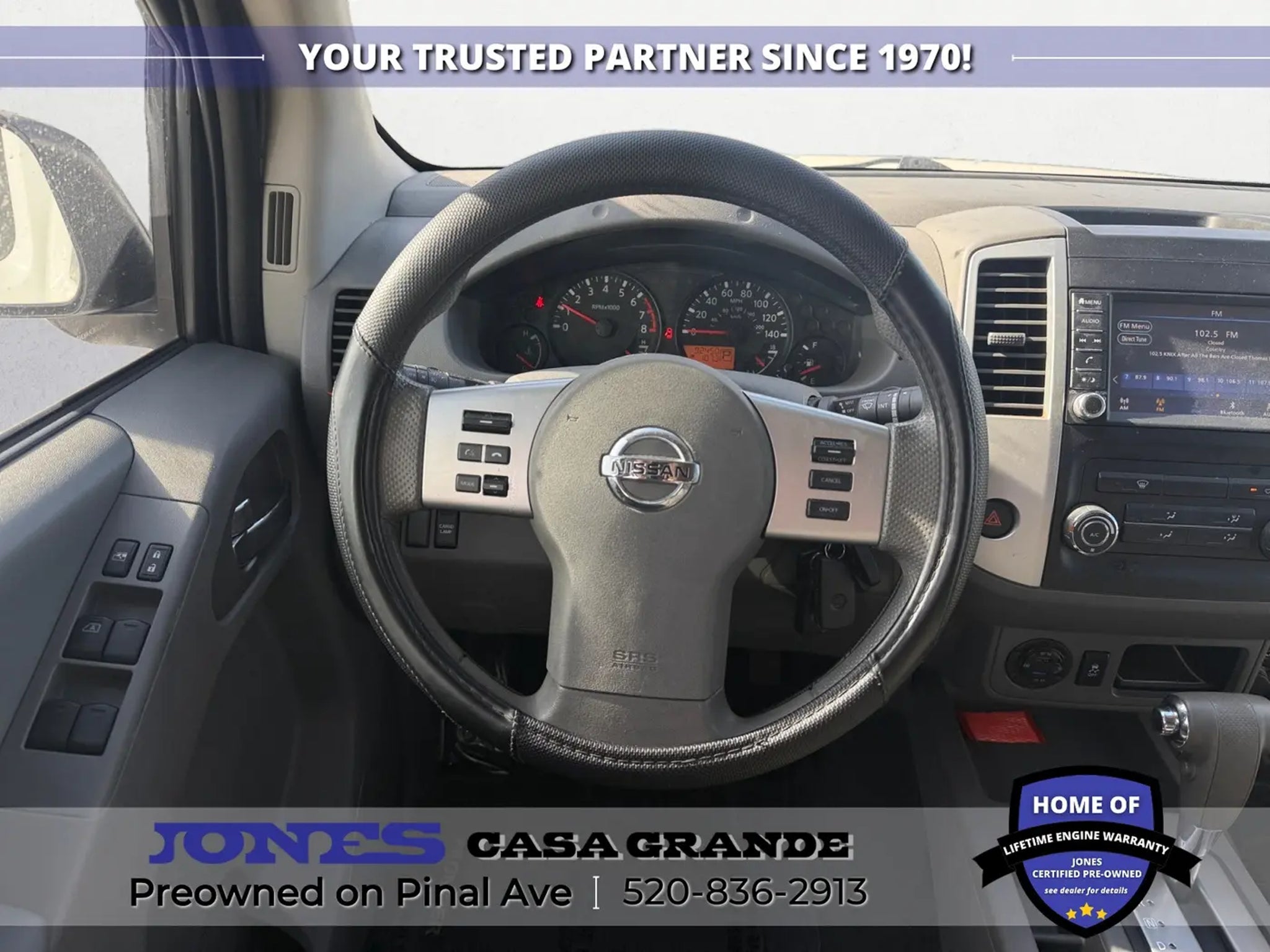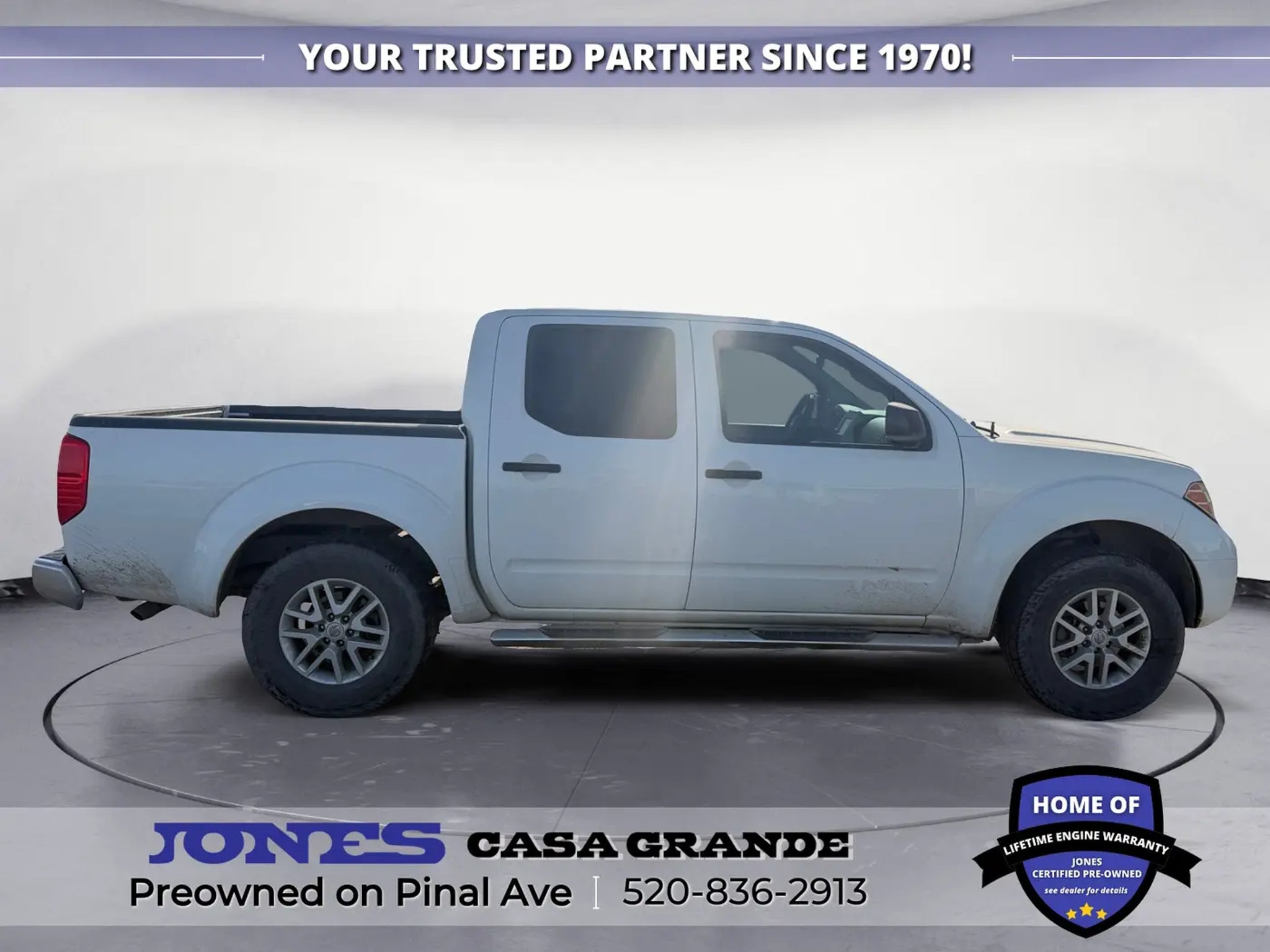 520-836-2913 LOCATED AT 1932 N PINAL AVE CASA GRANDE AZ 85122 Frontier SV, 4.0L V6 DOHC, RWD, Glacier White. Odometer is 1798 miles below market average! Jones Ford Buick GMC is Family Owned & Operated and has been doing Business the old fashion way one deal at a time since 1970! ALL our vehicles leave with a FULL TANK of fuel, car wash, PLUS most of our Pre-owned vehicles come with our LIFETIME ENGINE PROTECTION at NO ADDITIONAL COST! ! Save Thousands on any of our New Ford, Buick, or GMC's and give us a try today! Jones Ford Buick GMC 520-836-2913 LOCATED AT 1932 N PINAL AVE CASA GRANDE AZ 85122