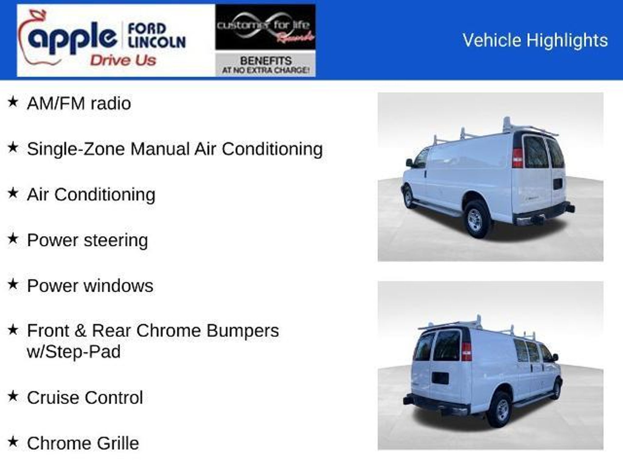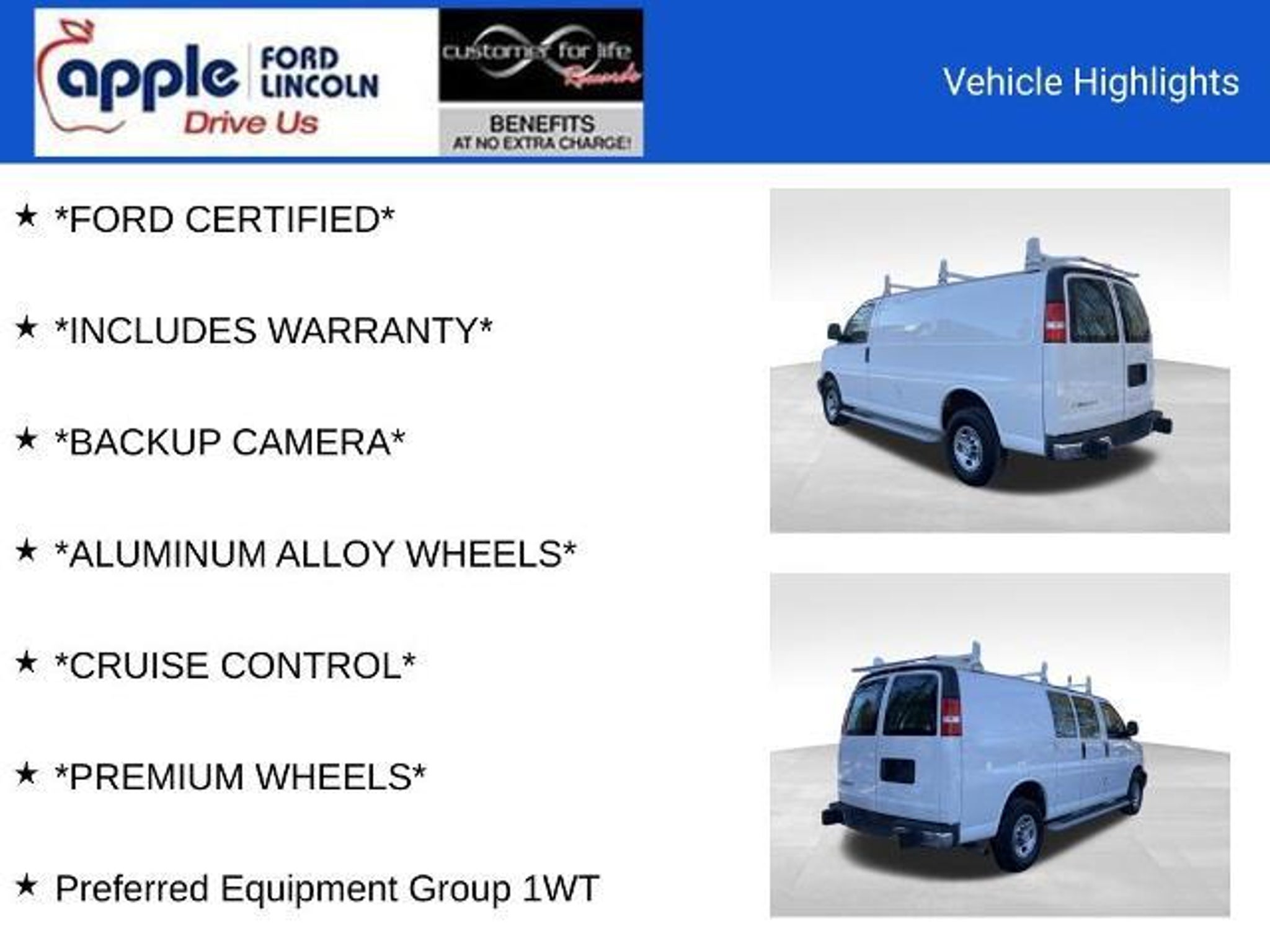 Recent Arrival! *FORD CERTIFIED*, *INCLUDES WARRANTY*, *BACKUP CAMERA*, *ALUMINUM ALLOY WHEELS*, *CRUISE CONTROL*, *PREMIUM WHEELS*, 2 Speakers, Air Conditioning, AM/FM radio, AM/FM Stereo w/MP3 Player, Chrome Appearance Package, Chrome Grille, Cruise Control, Driver Convenience Package, Fixed Rear Door Window Glass, Front & Rear Chrome Bumpers w/Step-Pad, Power steering, Power windows, Preferred Equipment Group 1WT, Rear & Side Cargo Door Glass, Rear Side Door Glass Window Security Bar, Single-Zone Manual Air Conditioning, Tilt Steering Wheel. Certification Program Details: Ford Blue Advantage: Blue Certified * 139 Point Inspection * Transferable Warranty * Vehicle History * Warranty Deductible: $100 * Roadside Assistance * Limited Warranty: 3 Month/4,000 Mile (whichever comes first) after new car warranty expires or from certified purchase date * and 11,000 FordPass Rewards Points to use toward first maintenance visit When you purchase a vehicle, we will provide you the following benefits, simply for choosing us... Engine Warranty For Life. Car Washes For Life. Oil Changes For Life. Safety Inspections For Life. Tire Rotations For Life. Customer for Life Program has stipulations, excludes certain vehicles, uses and equipment. See dealer for details. Advertised Price does not include tax, tags, $800 processing fee (Not required by law). Vehicle subject to prior sale. See dealer for complete price details.Certain vehicles may fall under a manufacturer safety recall that based on conditions outside of the dealer's control may not be repaired prior to sale. Please check open recalls using http://www.safercar.gov/